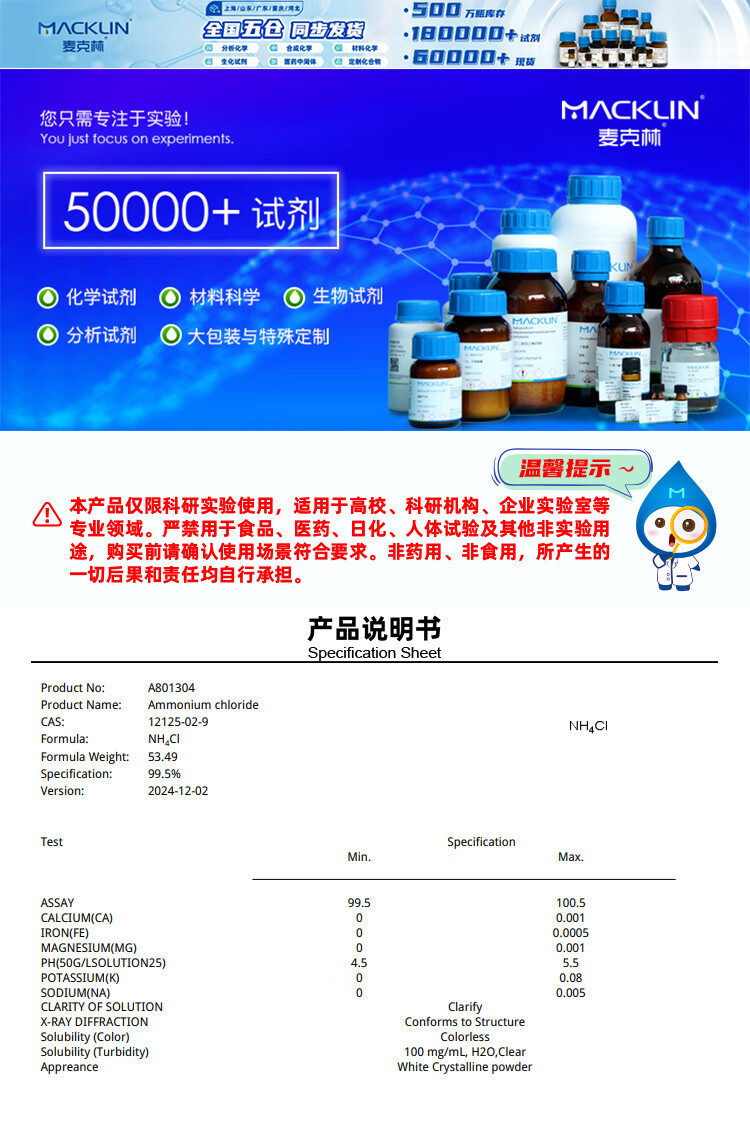 Macklin ammonium chloride CAS 12125-02-9 A801304-500g