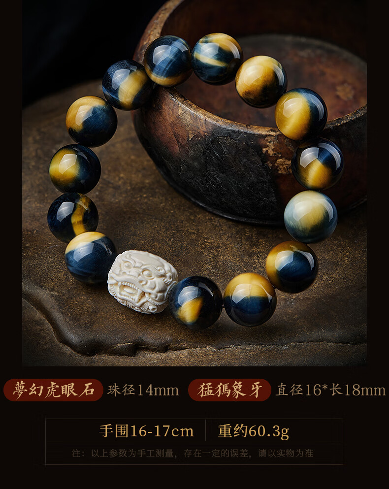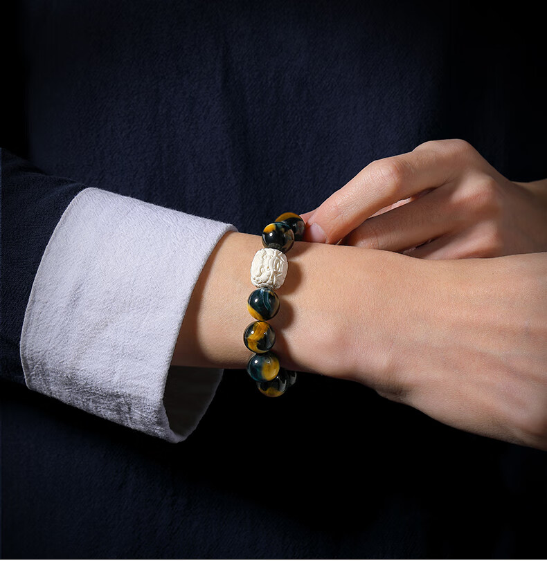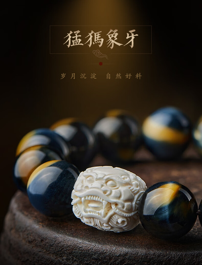 Layun Feiyin Tiger Eye Stone Bracelet Men's Mammoth Ivory Pixiu Bracelet Plate Playing Buddha Beads Wenwan Blue Tiger Eye Stone Handpiece Transfer Beads Fantasy Blue Tiger Eye Stone Bracelet