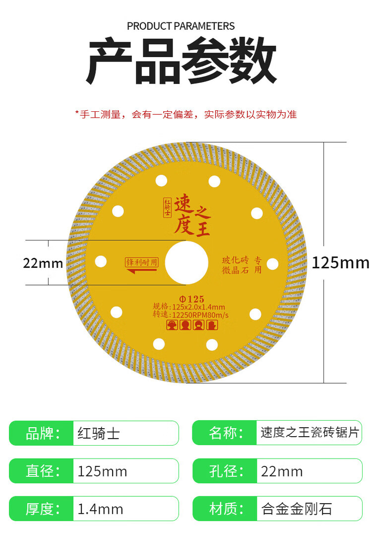 Red Knight tile cutting blade 125 ultra-thin diamond saw blade microcrystalline stone vitrified tile marble cutting machine for dry cutting Speed King 125mm 1 piece