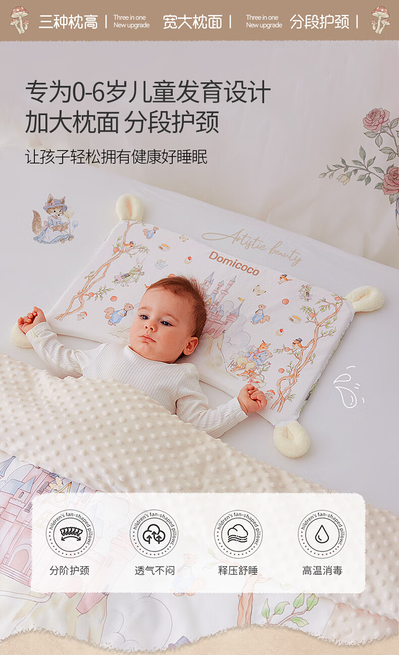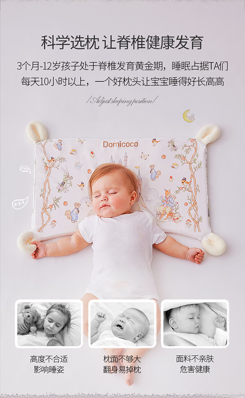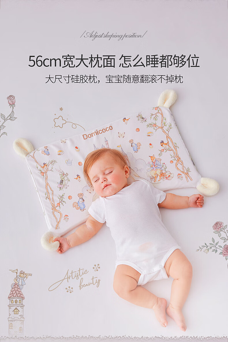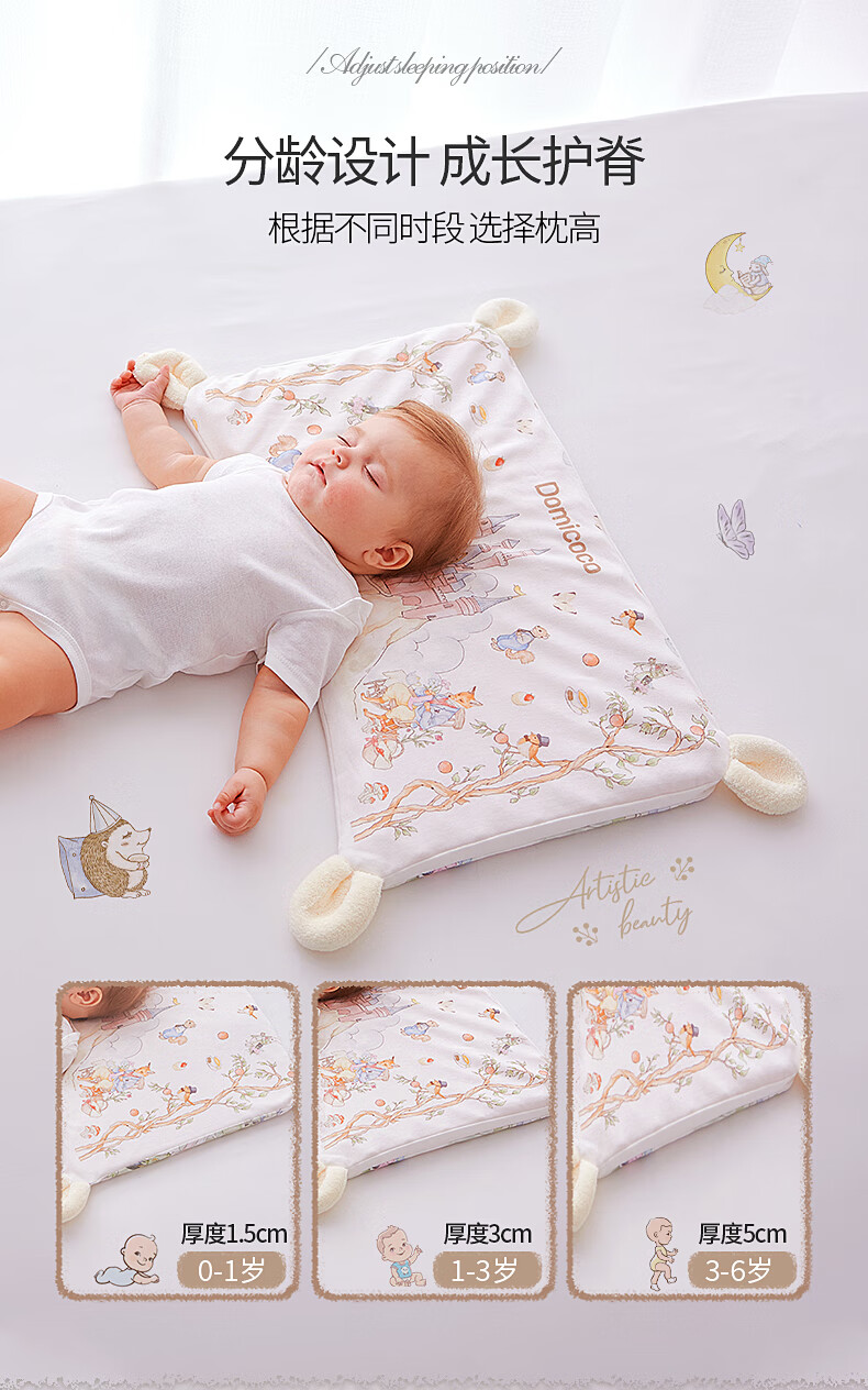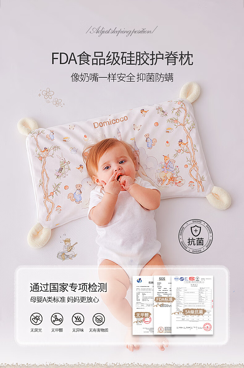 DOMICOCO Children's Pillow 1-3 Years Old Silicone Pillow Baby Pillow 6 Months and Over Baby Pillow Primary School Student Neck Pillow Washable Afternoon Leisure Time-1.5cm Suitable for 0-1 Years Old