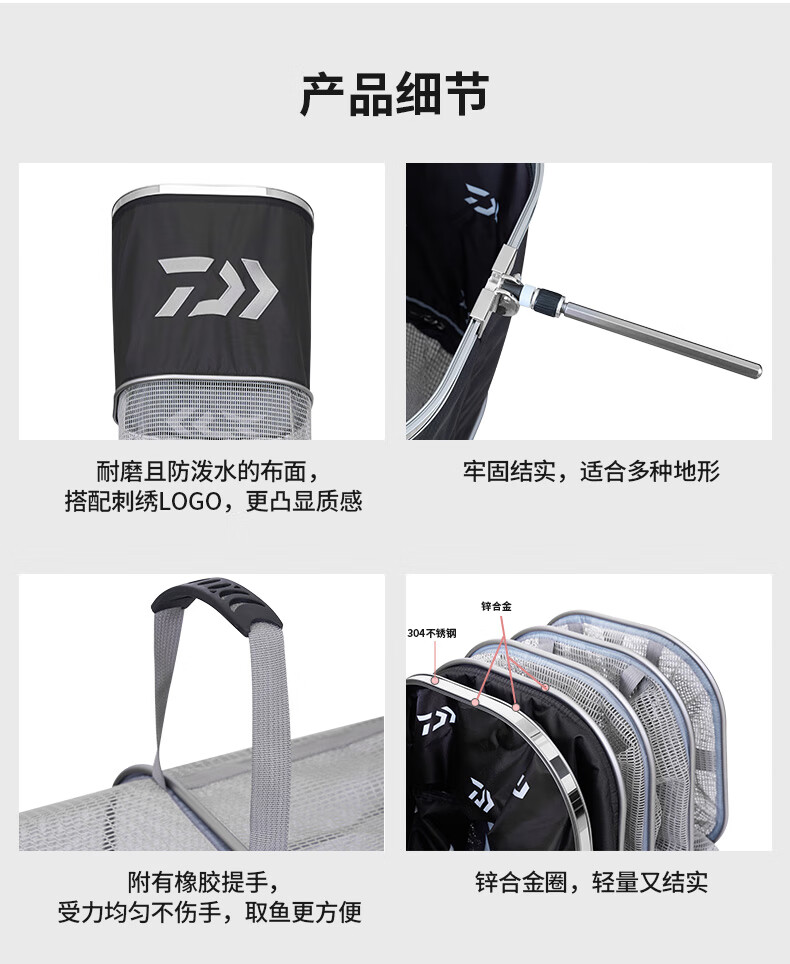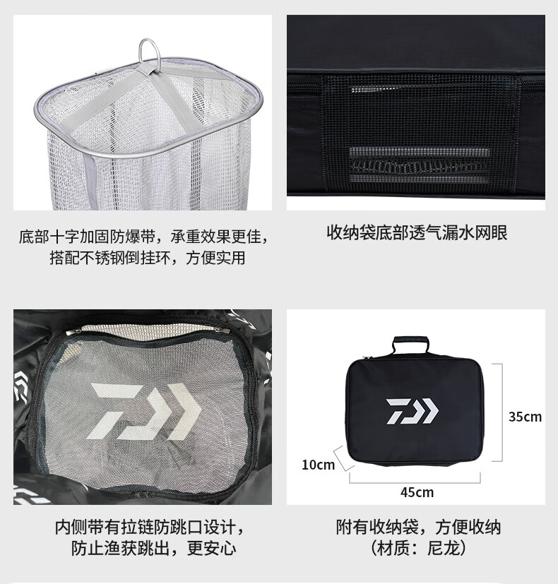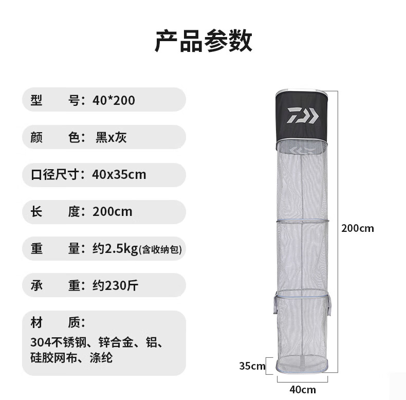DAIWA 25 New Square Silicone Fish Protector Black Pit Wild Fishing Net Pocket Portable Fishing Protector Fishing 40cm 2m Square (diameter 40x35cm, length 2m)