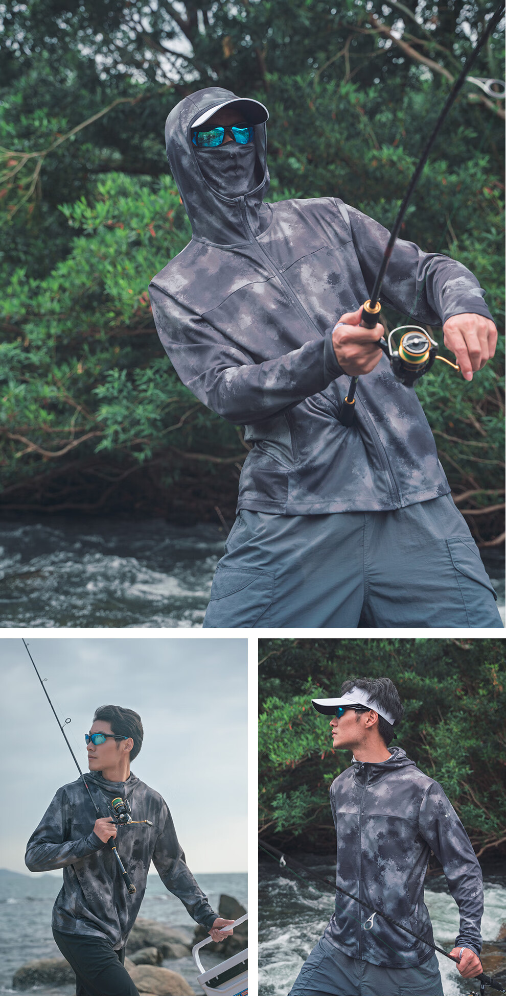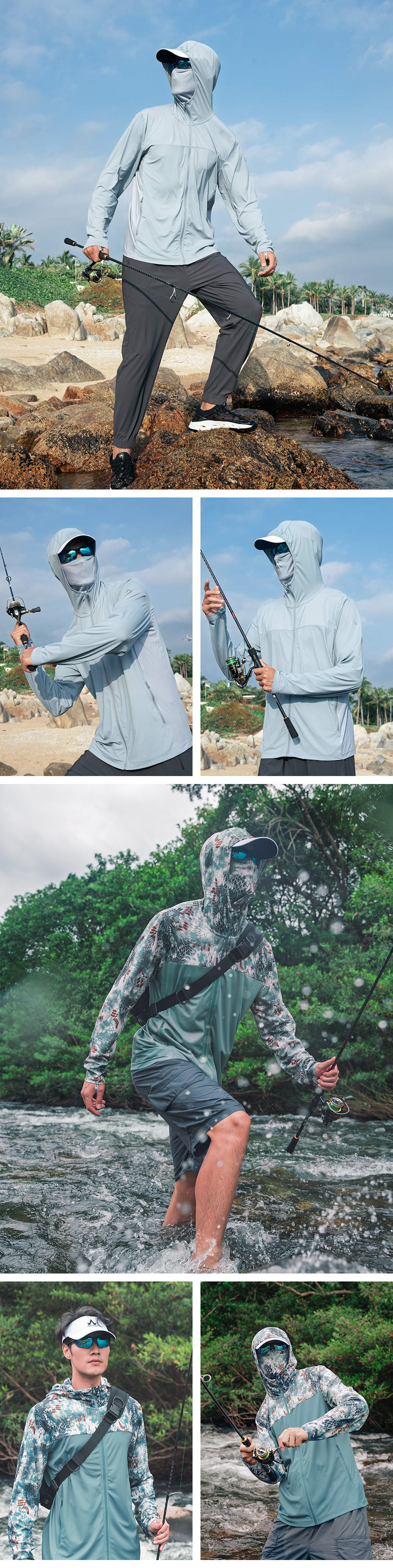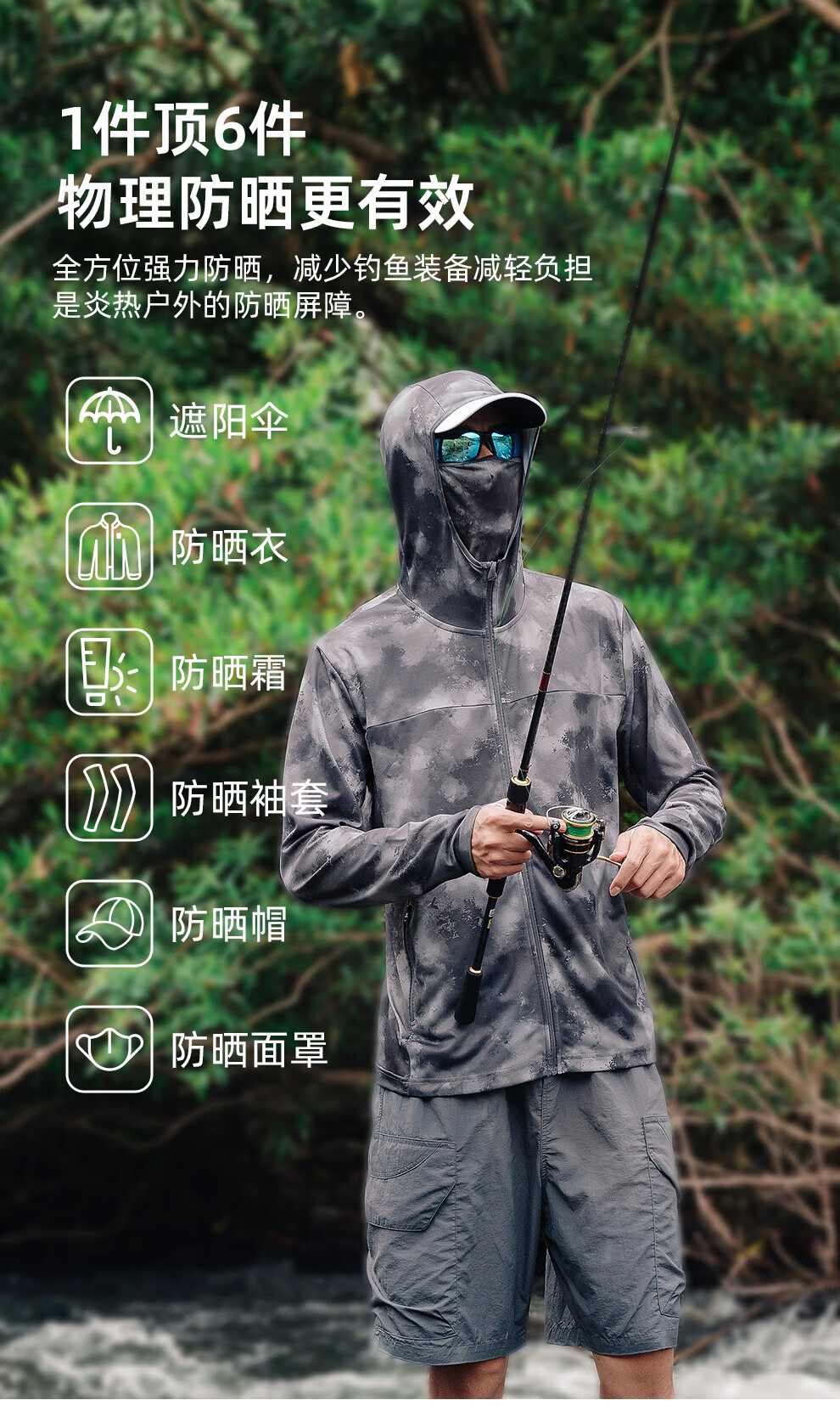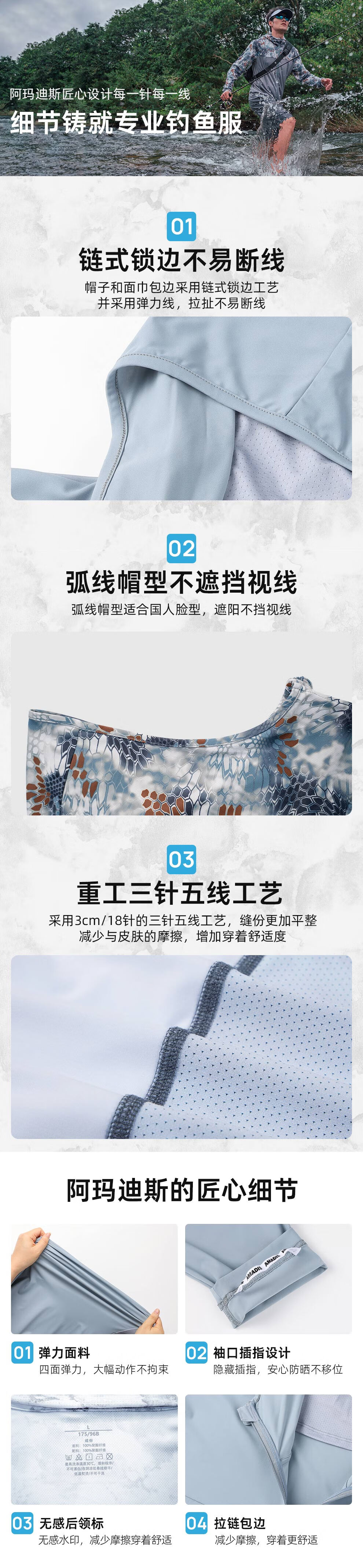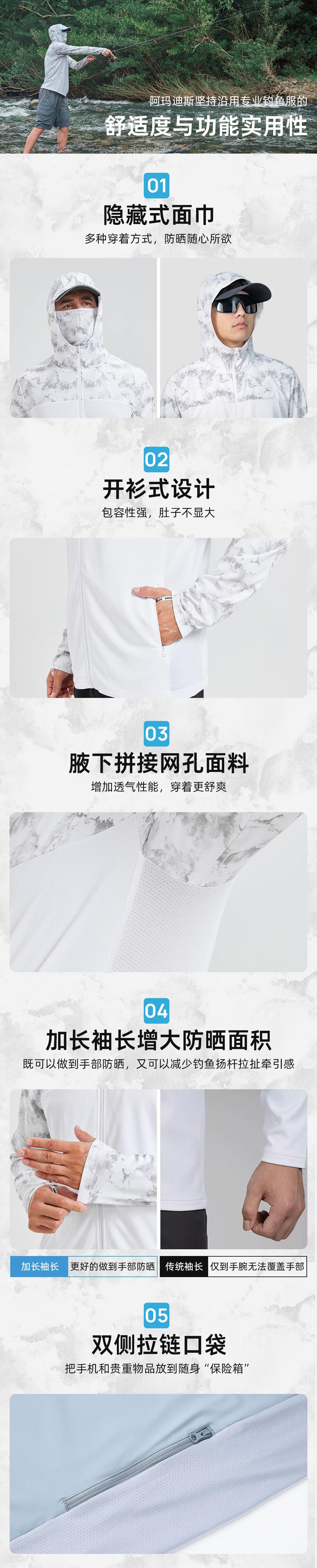 Amadeus Degora fishing suit men's ice silk quick-drying hidden face towel sun protection suit 2025 summer new fishing suit moonlight silver 3XL