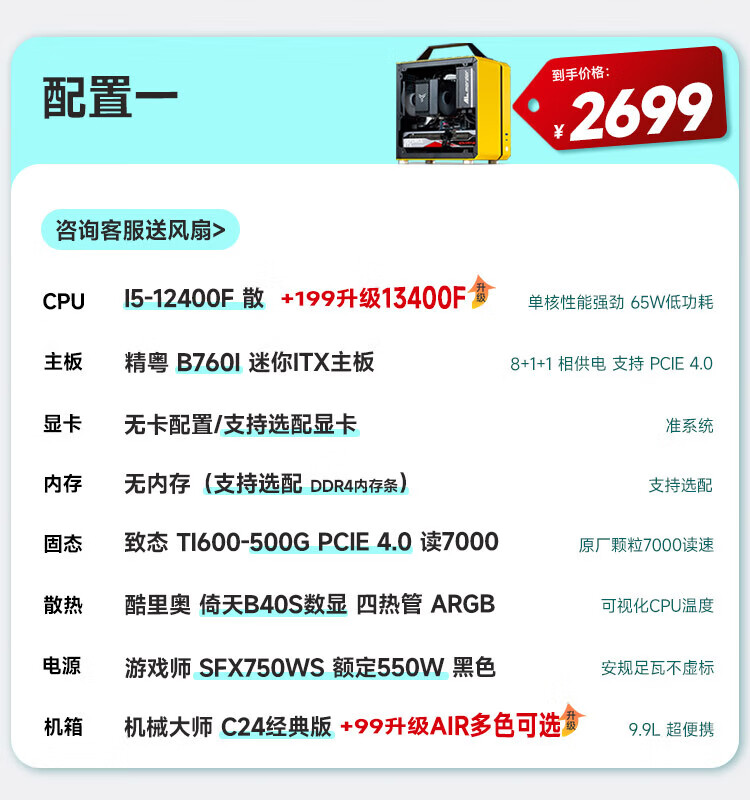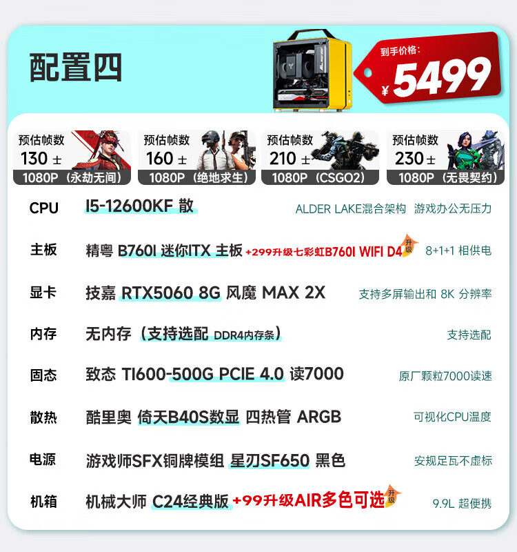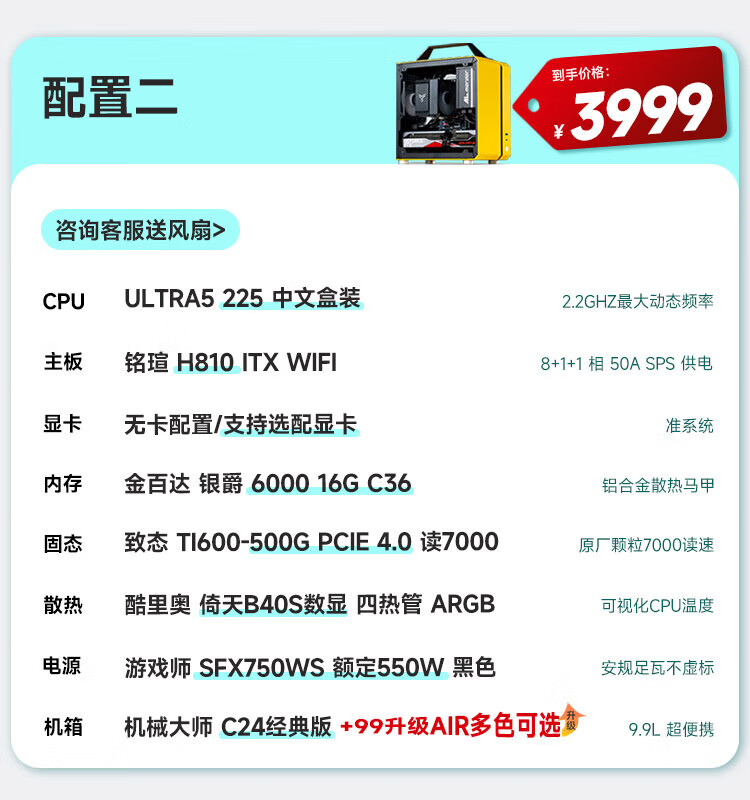 Sugar Cube Mechanical Master C24 chassis i5 12600KF small host RTX5060/5060ti portable ITX desktop computer mini host office home design delta game assembly computer configuration two丨U5 225 boxed丨barebone system丨super powerful office host
