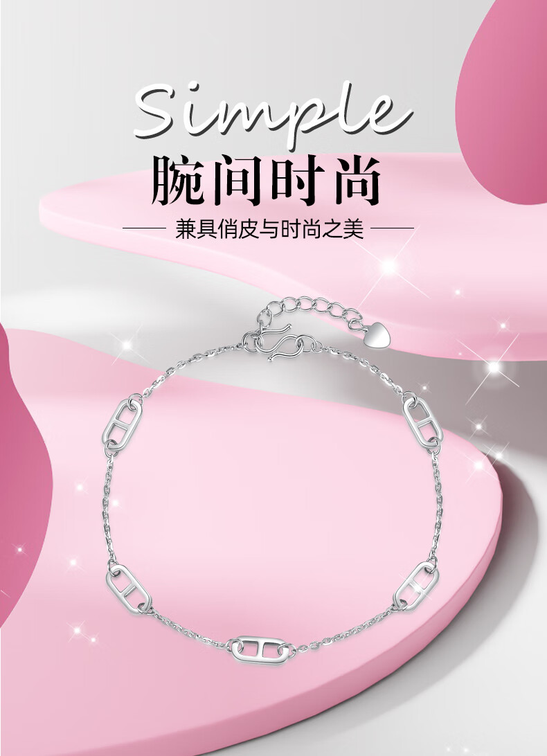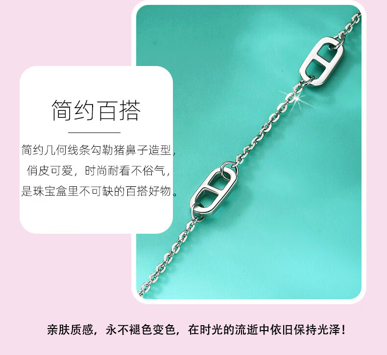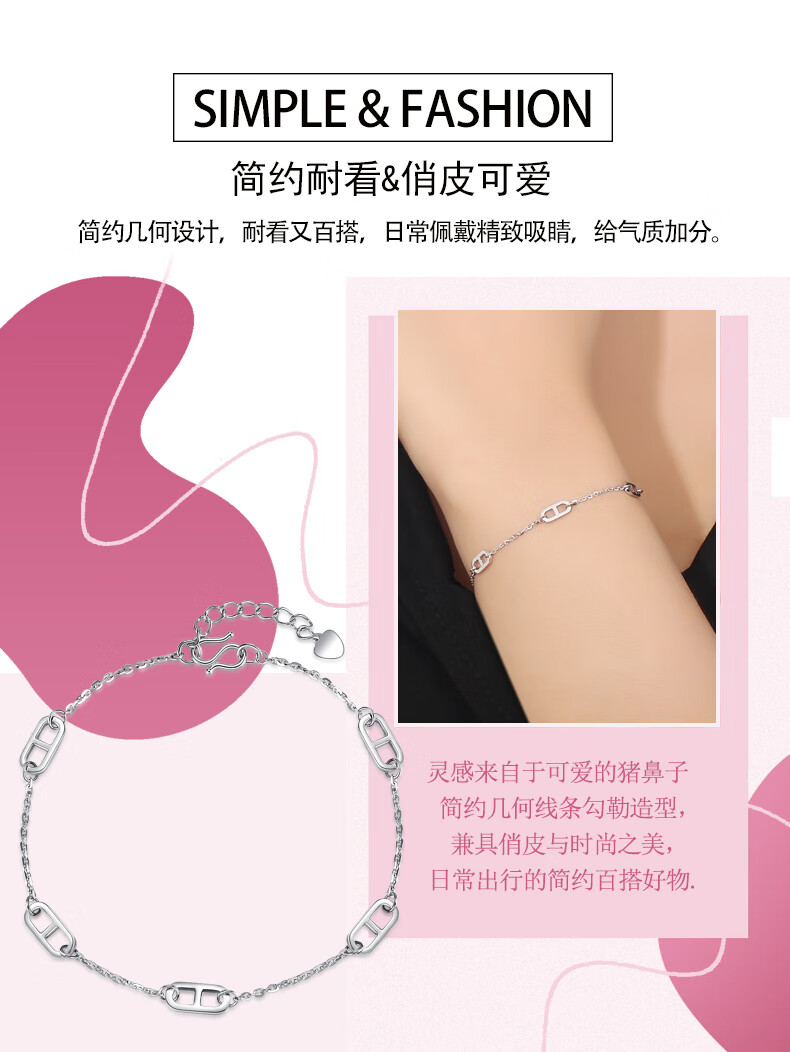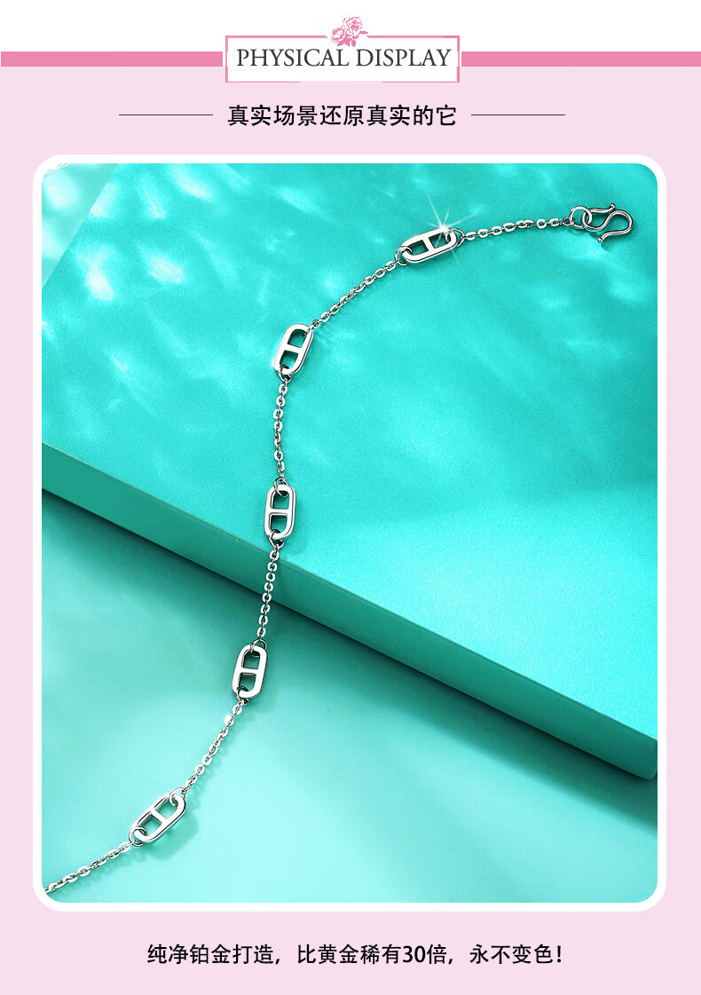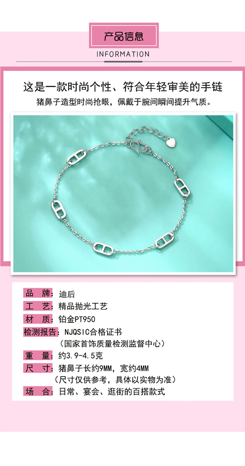 Dirholl PT950 Pig Nose Platinum Bracelet Women's Fashion Platinum Jewelry for Girlfriend and Wife 38th Women's Day Gift Pig Nose Platinum Bracelet