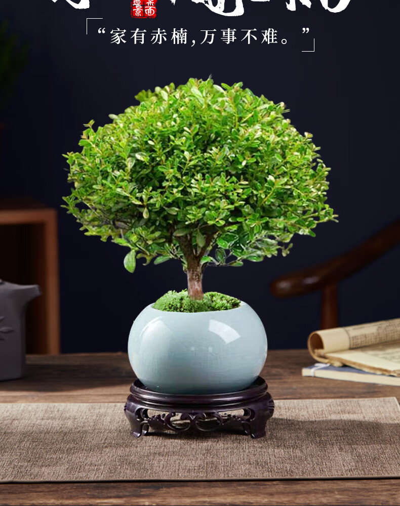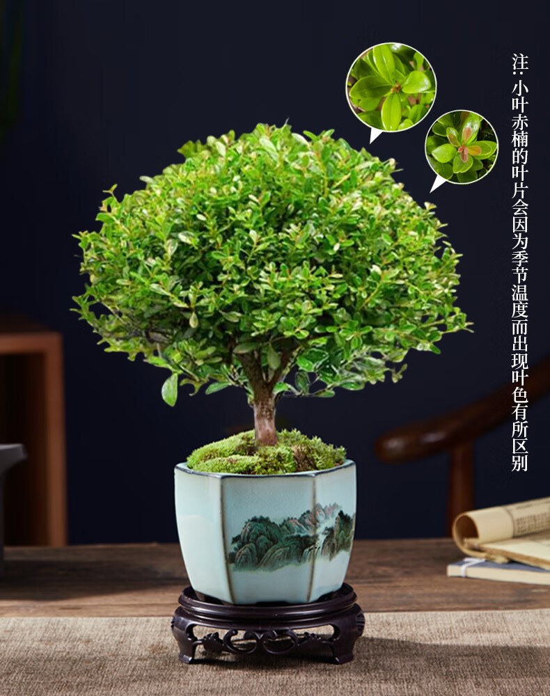 Jingyouyu golden nanmu small-leaf red phoebe bonsai old pile potted seedlings flower office desktop small green plants good for all seasons small-leaf red phoebe + shede ceramic round pot + square base + moss + fertilizer, tray not included