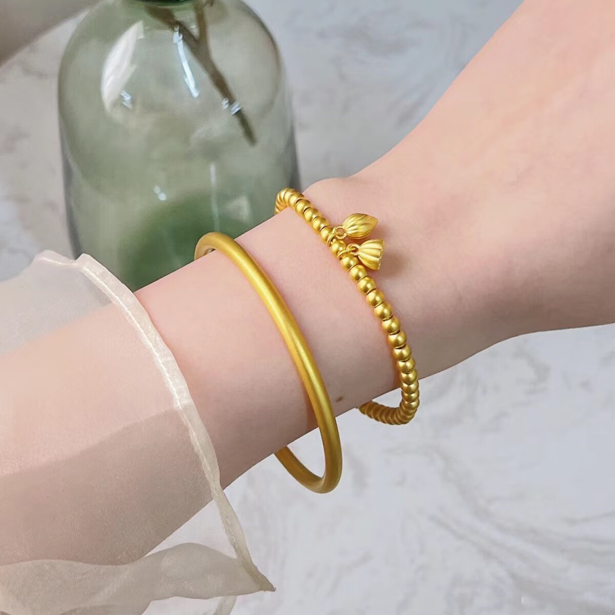 ANST Old Phoenix Gold Store Antique Gold Bracelet Stacked Bracelet Women's 2025 New Biography Two Worlds Bracelet Elastic Cord