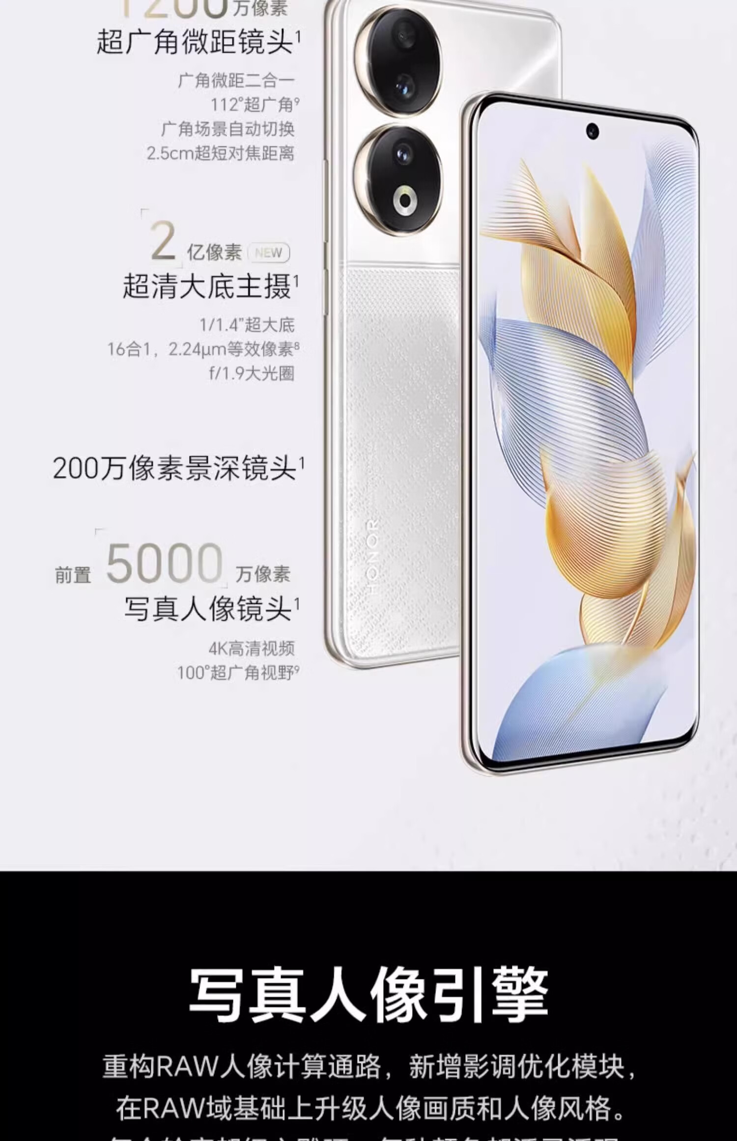 Honor 90Pro 200 million pixels ultra-clear camera dimmable eye protection screen 5000mAh thin and light full Netcom 5G mobile phone black 16+512Gb