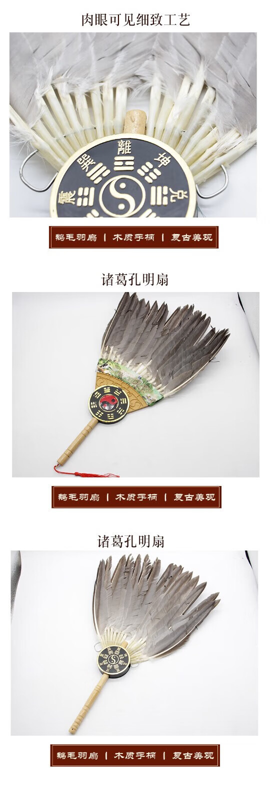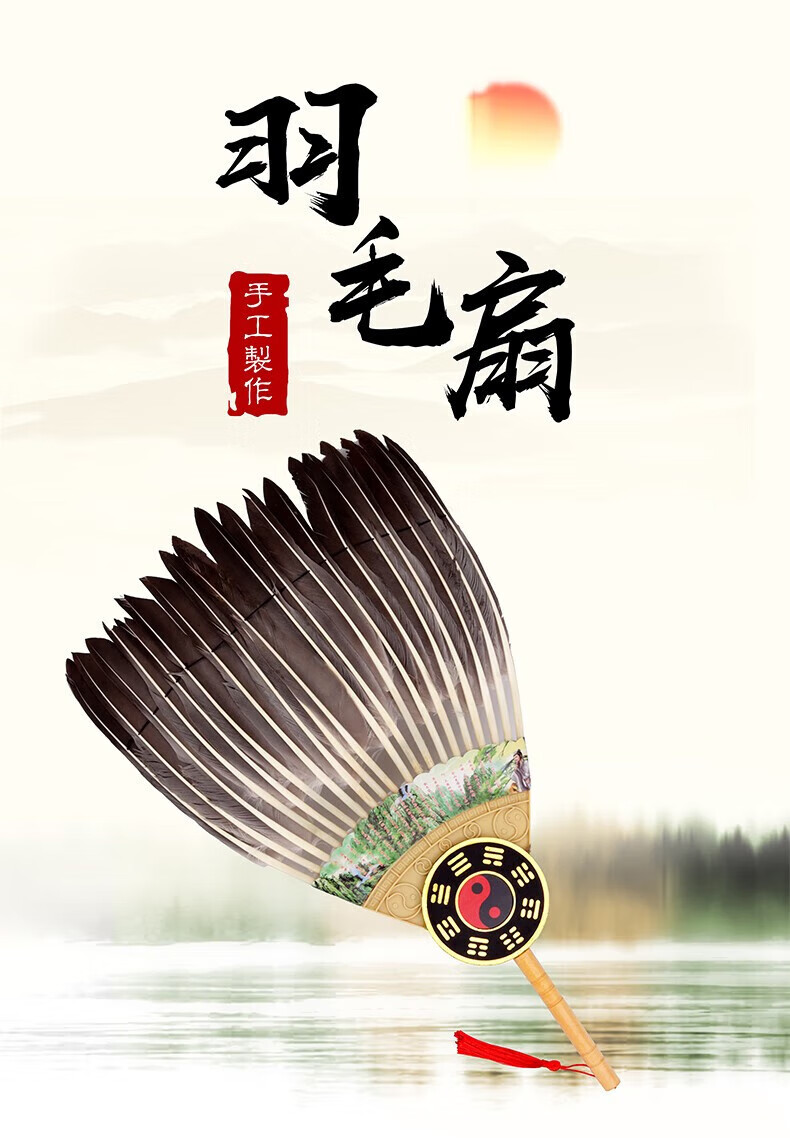 Zhizhou Zhuge Kongming fan large feather fan Bagua Zhuge Liang goose feather fan craft fan handmade dance