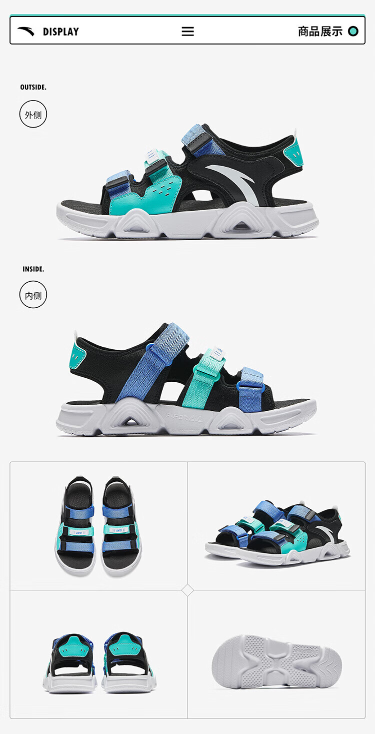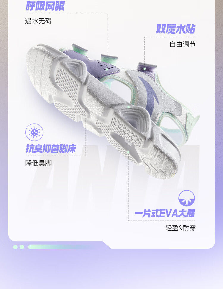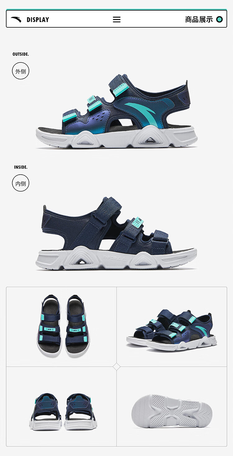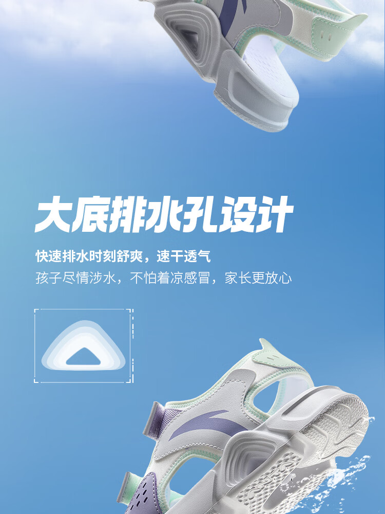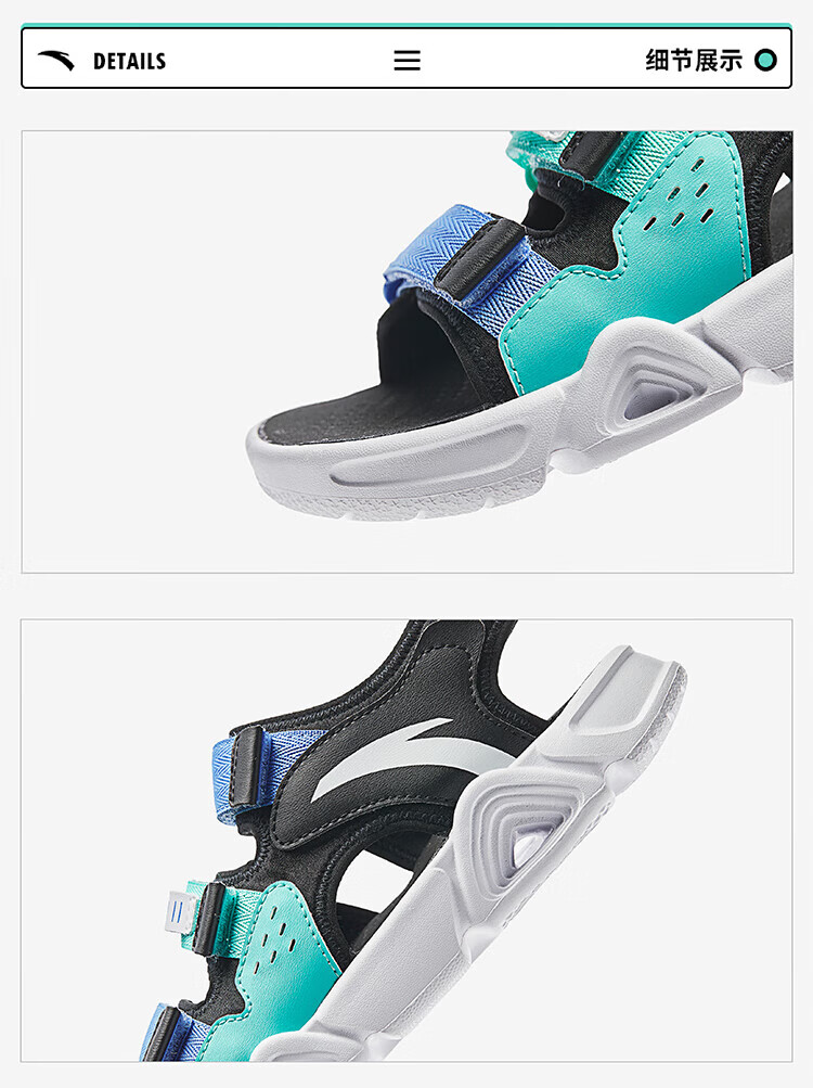 ANTA children's sandals, girls' shoes, 2025 summer new children's sports shoes, open-toe arch beach shoes, boys, new ink blue/fluorescent aqua-9 34
