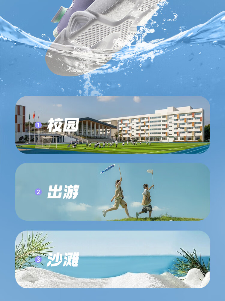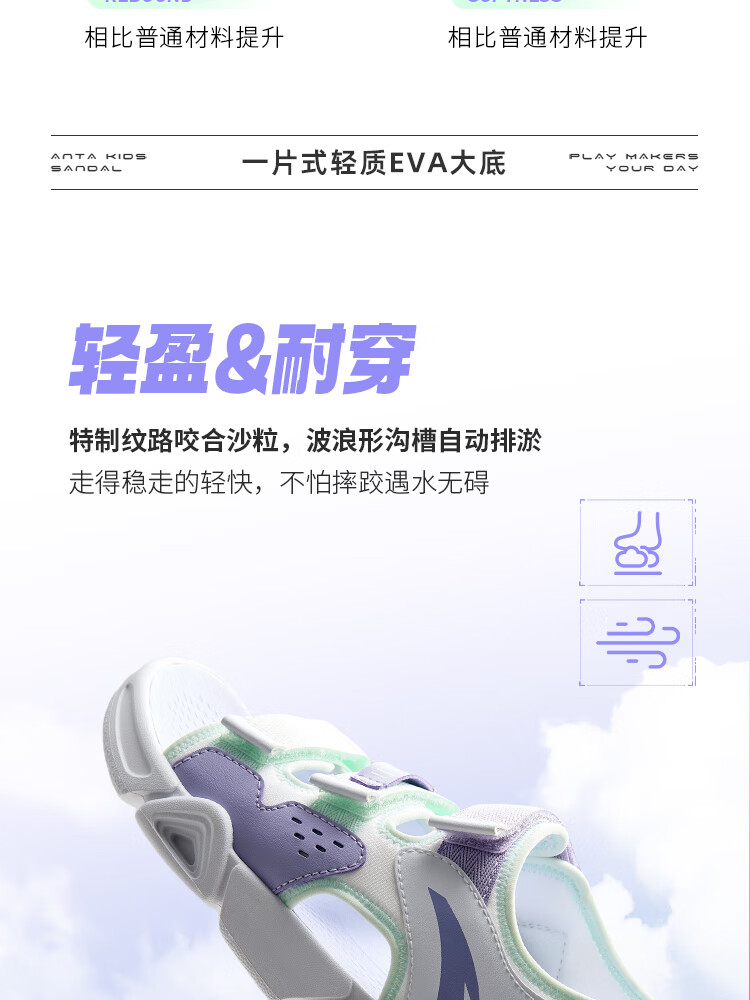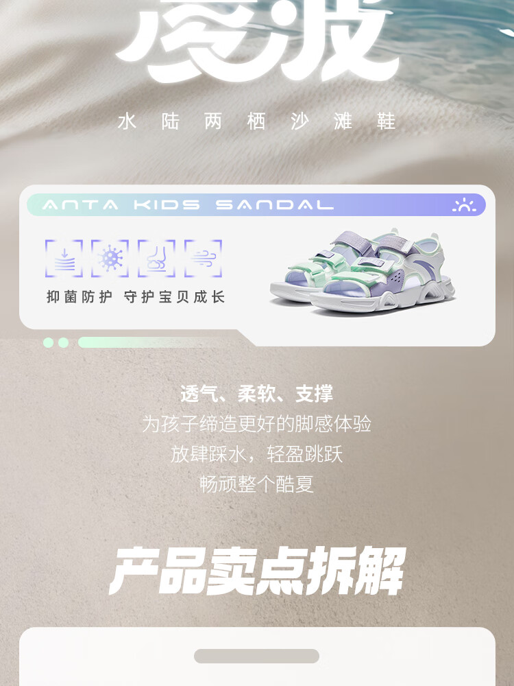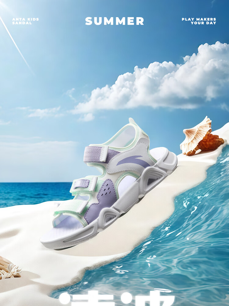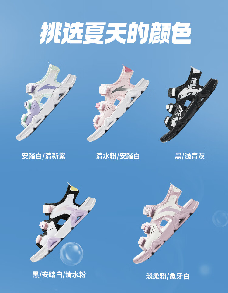 ANTA children's sandals, girls' shoes, 2025 summer new children's sports shoes, open-toe arch beach shoes, boys, new ink blue/fluorescent aqua-9 34