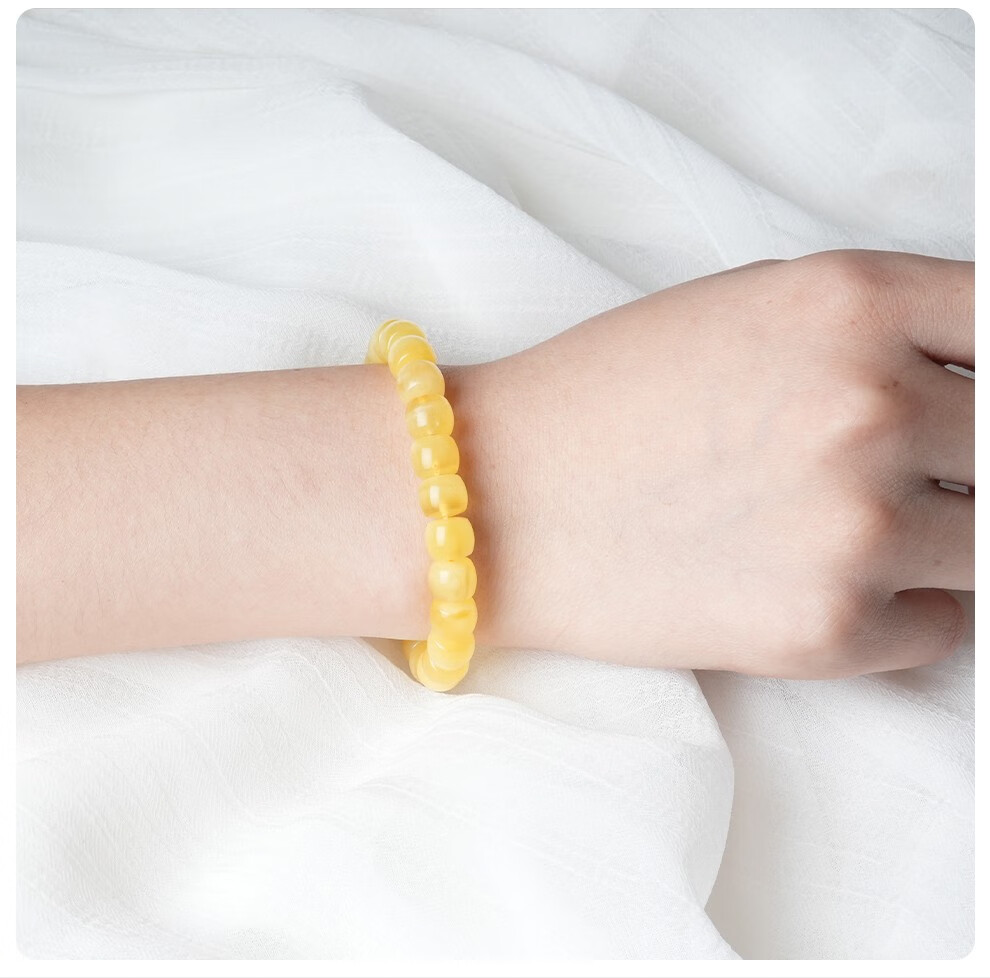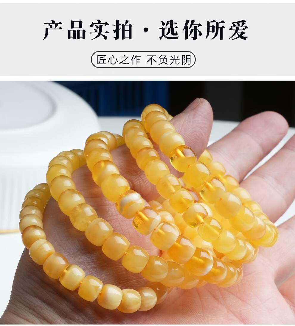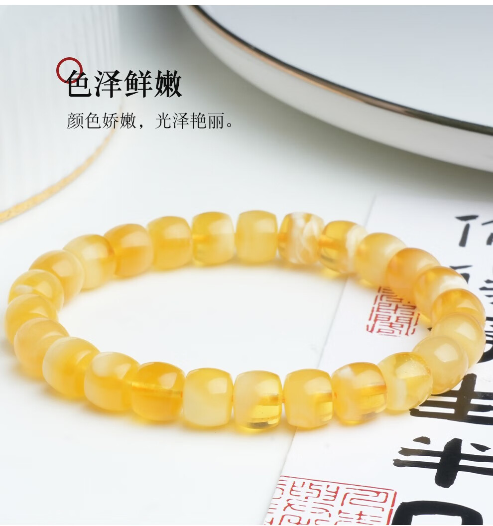 Lv Nong Jewelry Gold Twist White Beeswax Bracelet Straight Cut Bracelet Men's and Women's Zodiac Year Birthday Gift Bead Diameter Approximately 8mm Single Circle Gold Twist White Straight Cut