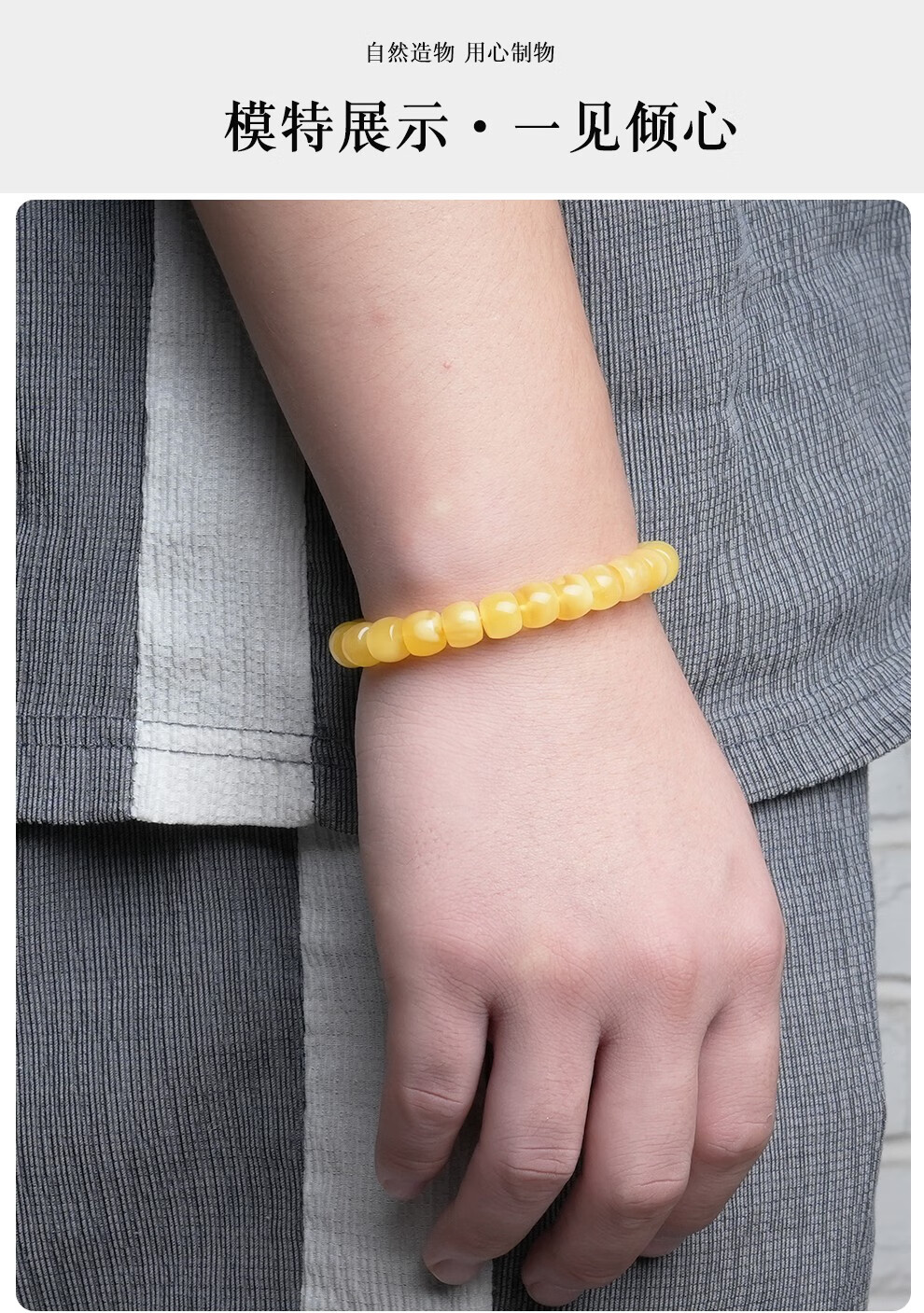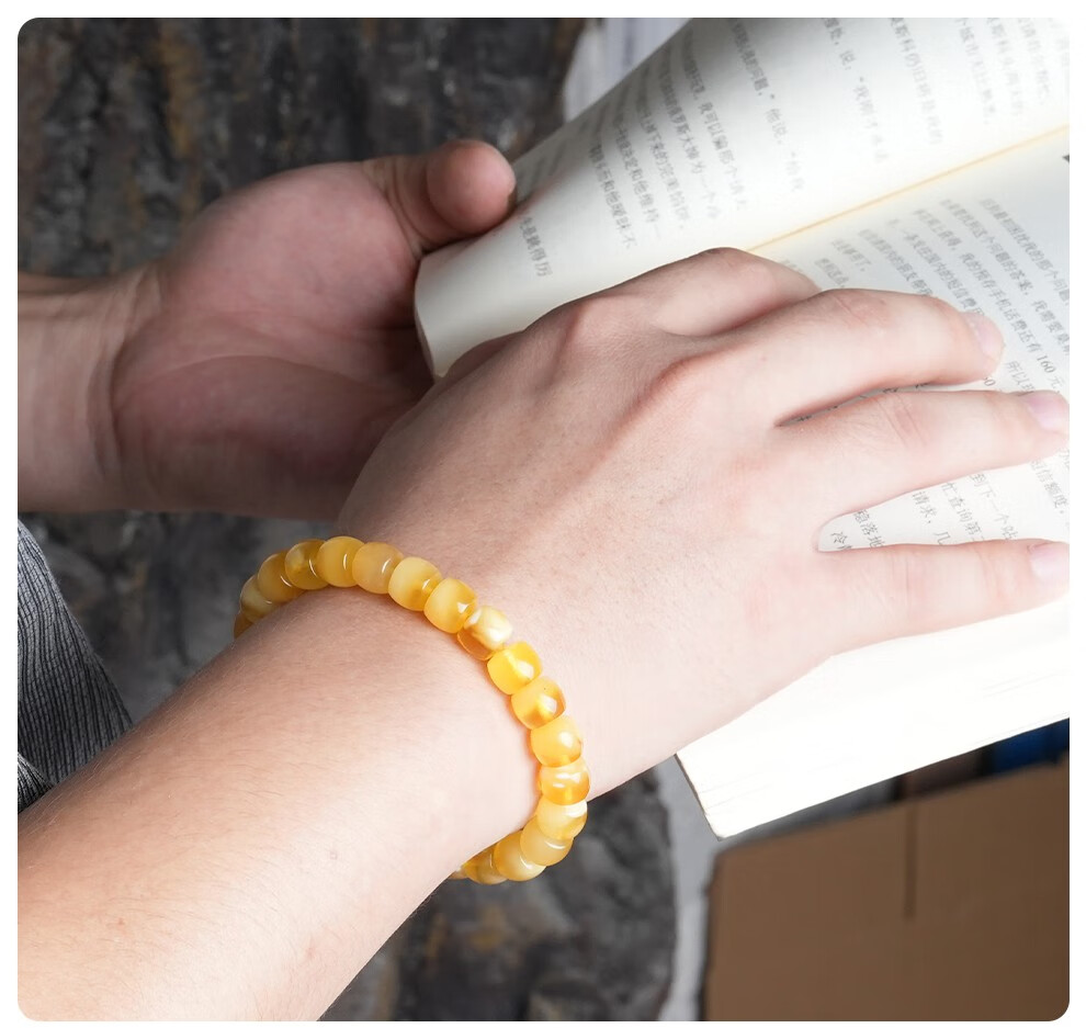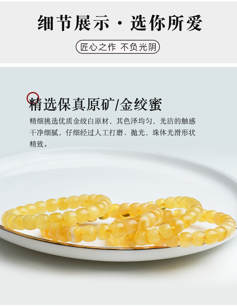Lv Nong Jewelry Gold Twist White Beeswax Bracelet Straight Cut Bracelet Men's and Women's Zodiac Year Birthday Gift Bead Diameter Approximately 8mm Single Circle Gold Twist White Straight Cut