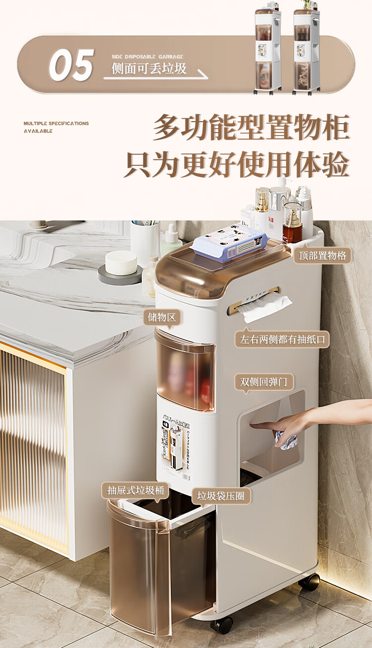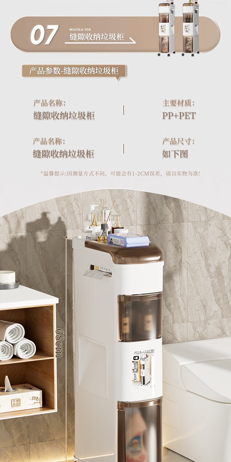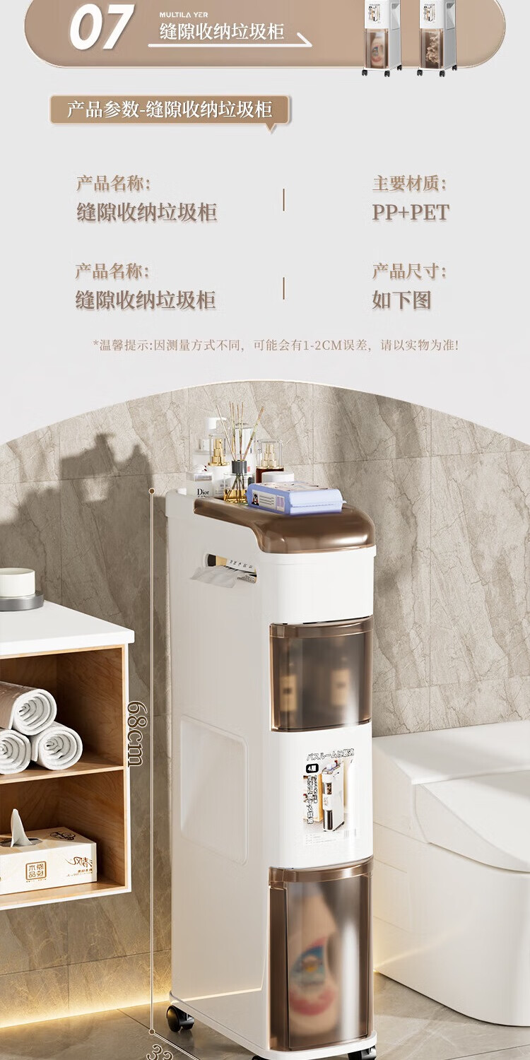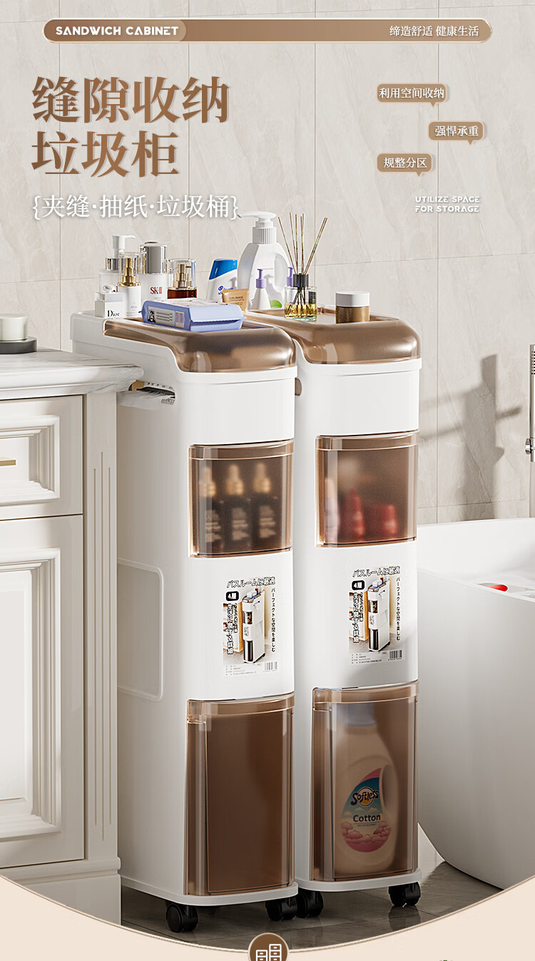 Rising 15cm Japanese style bathroom gap cabinet with built-in trash can bathroom gap storage cabinet toilet side storage narrow cabinet 15cm white tea side cabinet ordinary style 15cm bathroom trash can cabinet 3 layers