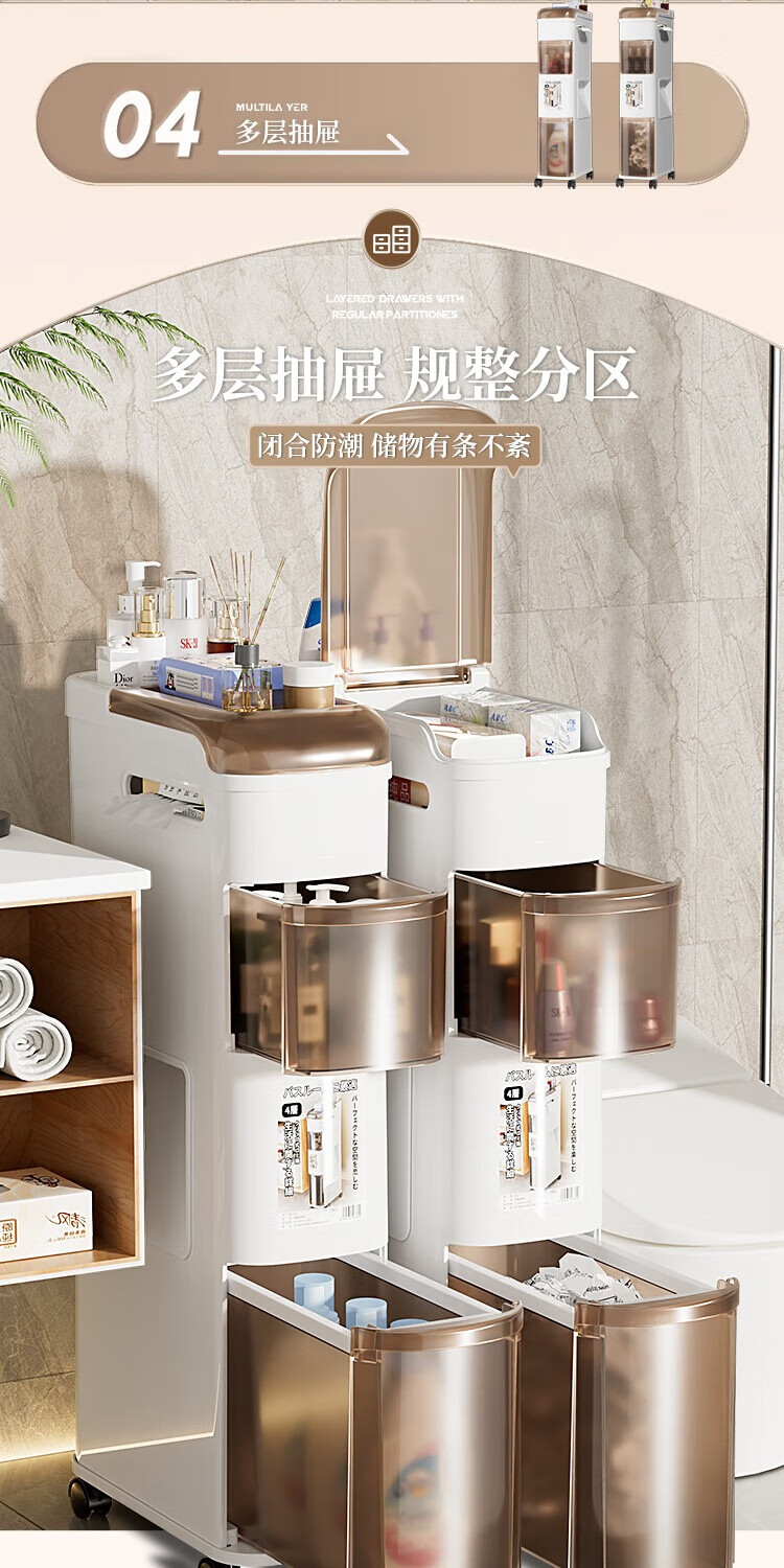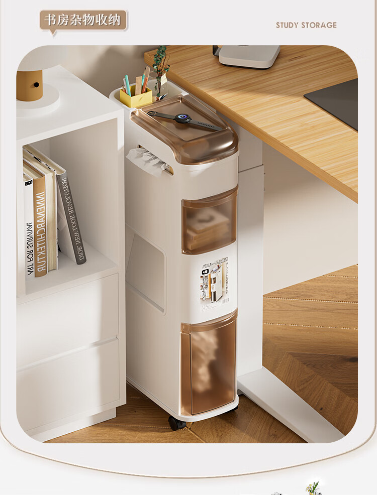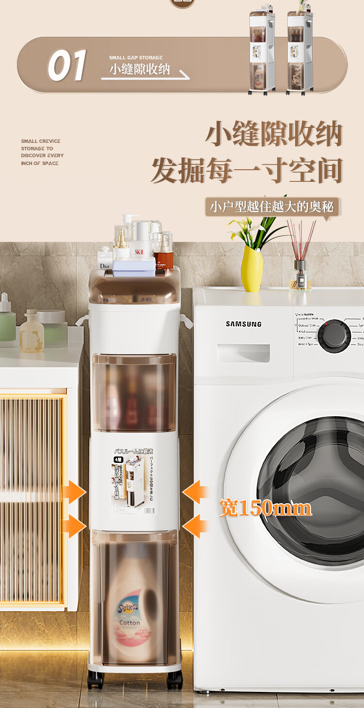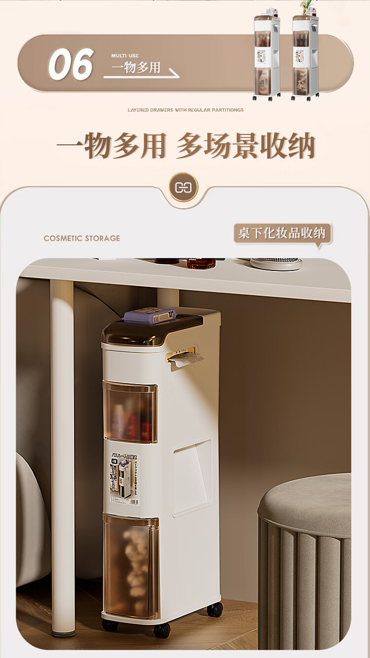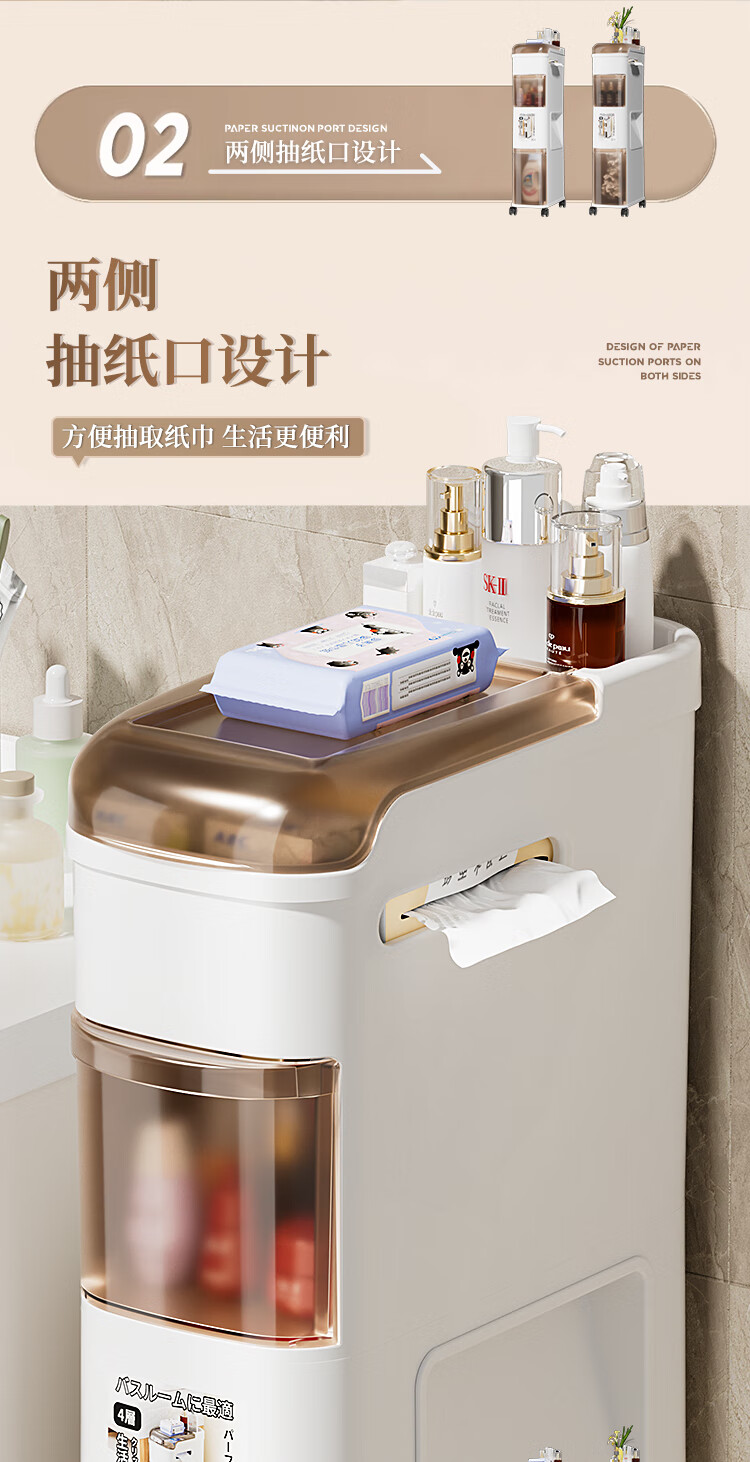Rising 15cm Japanese style bathroom gap cabinet with built-in trash can bathroom gap storage cabinet toilet side storage narrow cabinet 15cm white tea side cabinet ordinary style 15cm bathroom trash can cabinet 3 layers