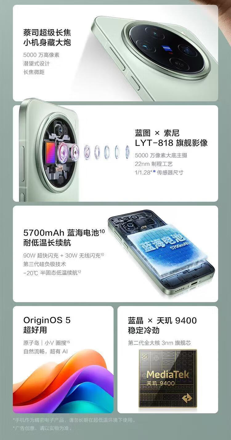 VivoX200Promini Slim Small Straight Screen 5G Exhibition Machine Blue Ocean Battery Blue Crystal Dimensity 9400 Camera AI Phone Micro Powder 16GB+512GB Standalone + Third Party Charger + One Year Store Warranty