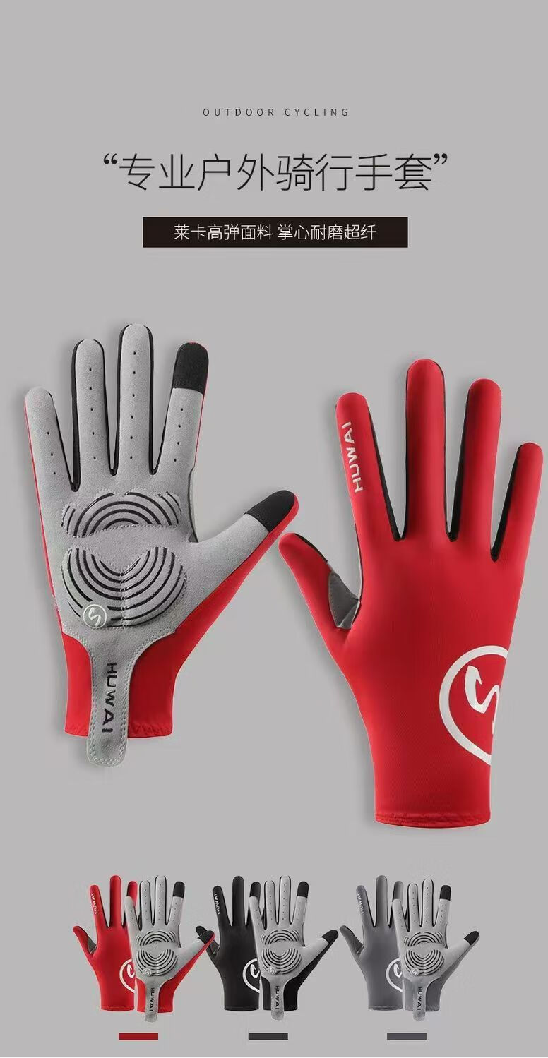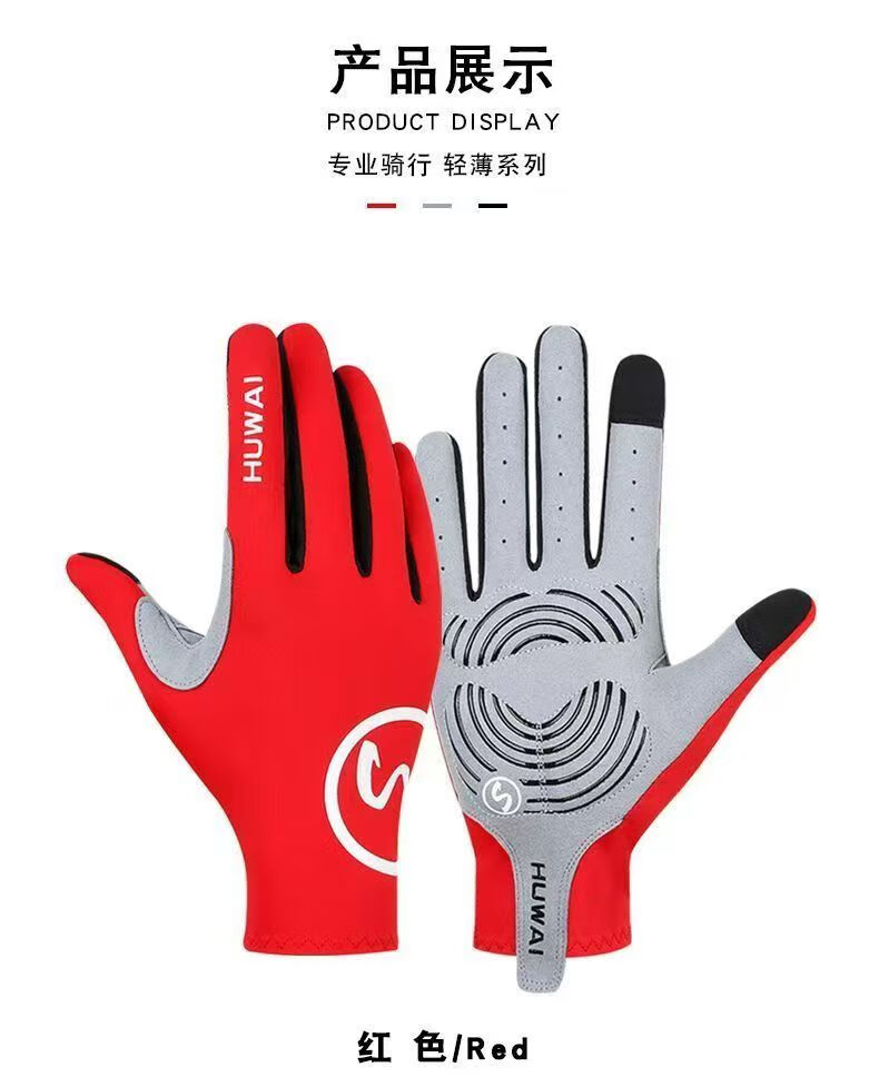Cycling gloves men's spring and summer thin full-finger breathable mountain bike half-finger shock-absorbing non-slip fitness sports women's Chinese red