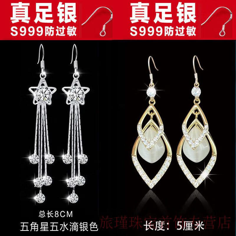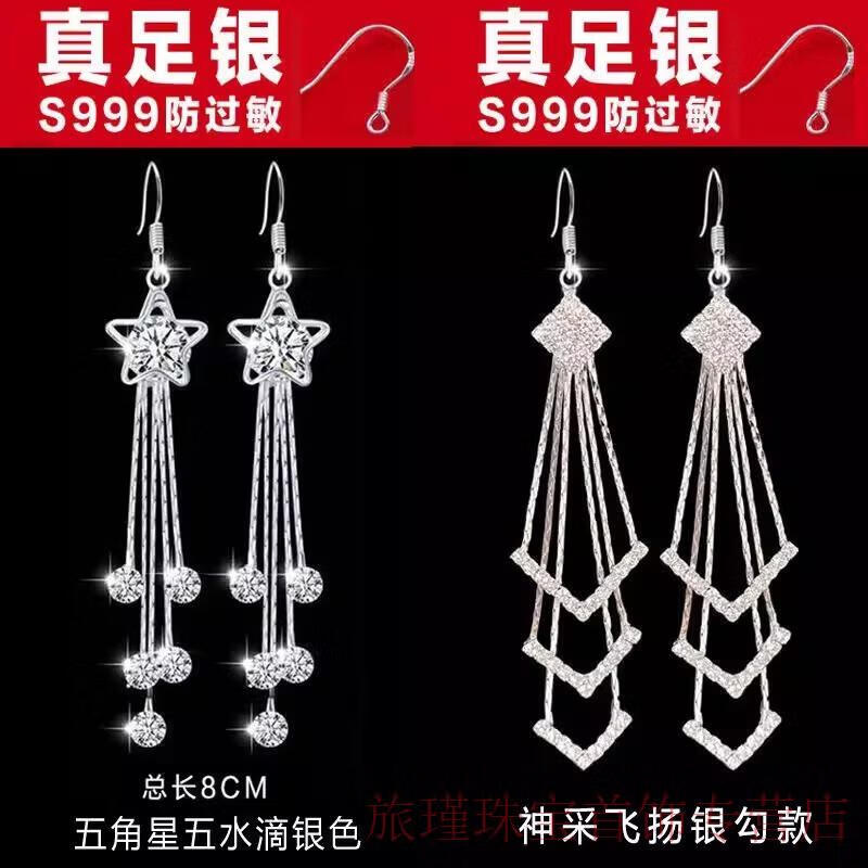 CAMPUSKINGLY Old Phoenix 999 sterling silver earrings long flower tassel earrings temperament women's sweet new earrings fashion slimming five-pointed star water drop same style 999 silver hook hypoallergenic