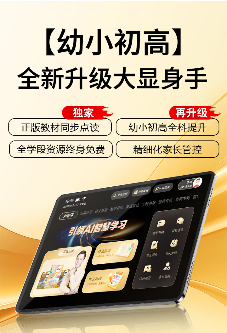 Dr. Zhuangyuanlang 12-inch learning machine tablet from primary school to high school curriculum synchronization 2K eye protection screen 512G large memory 2025 new student tablet English AR finger reading online class 4K eye protection screen丨12+512G丨Ultimate version