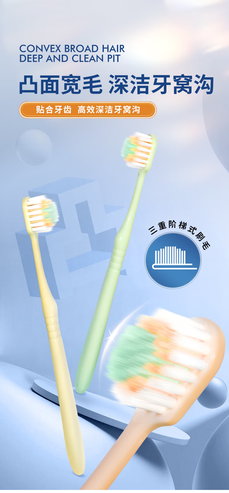 Lion King Supermarket's same model, mountain-shaped convex brush head, soft-bristle toothbrush for cleaning and protecting gums, family unisex, soft bristles, 3 pieces, cleaning