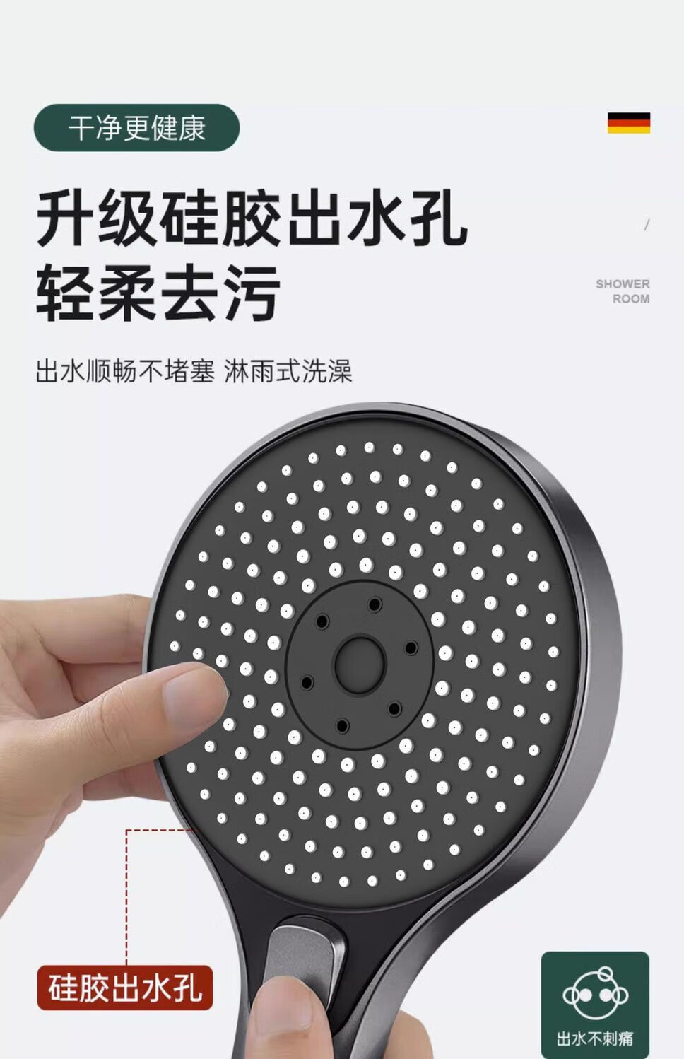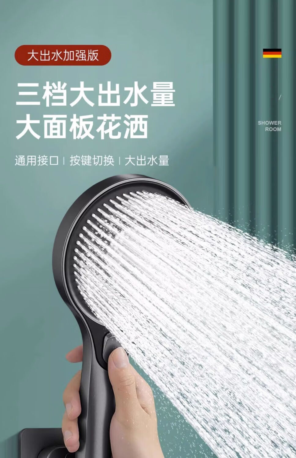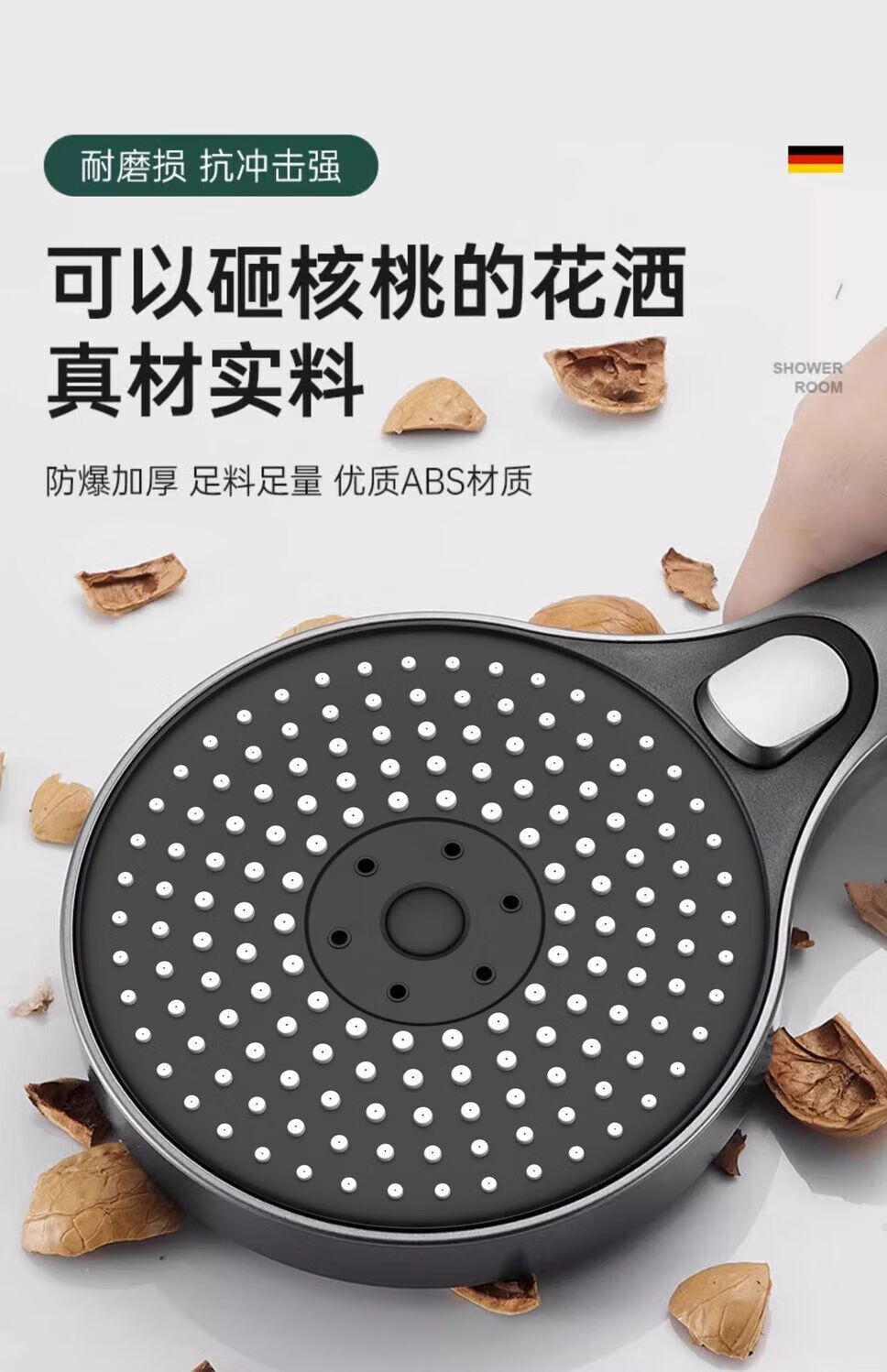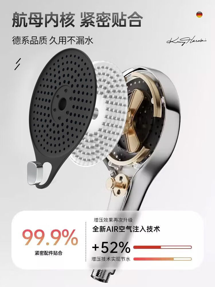 JMOOWO German shower booster shower head bathroom bathroom heater universal high-pressure shower lotus shower head set Mystery Mist Mystery Mist-Grey nozzle + nail-free seat German quality/large panel flower