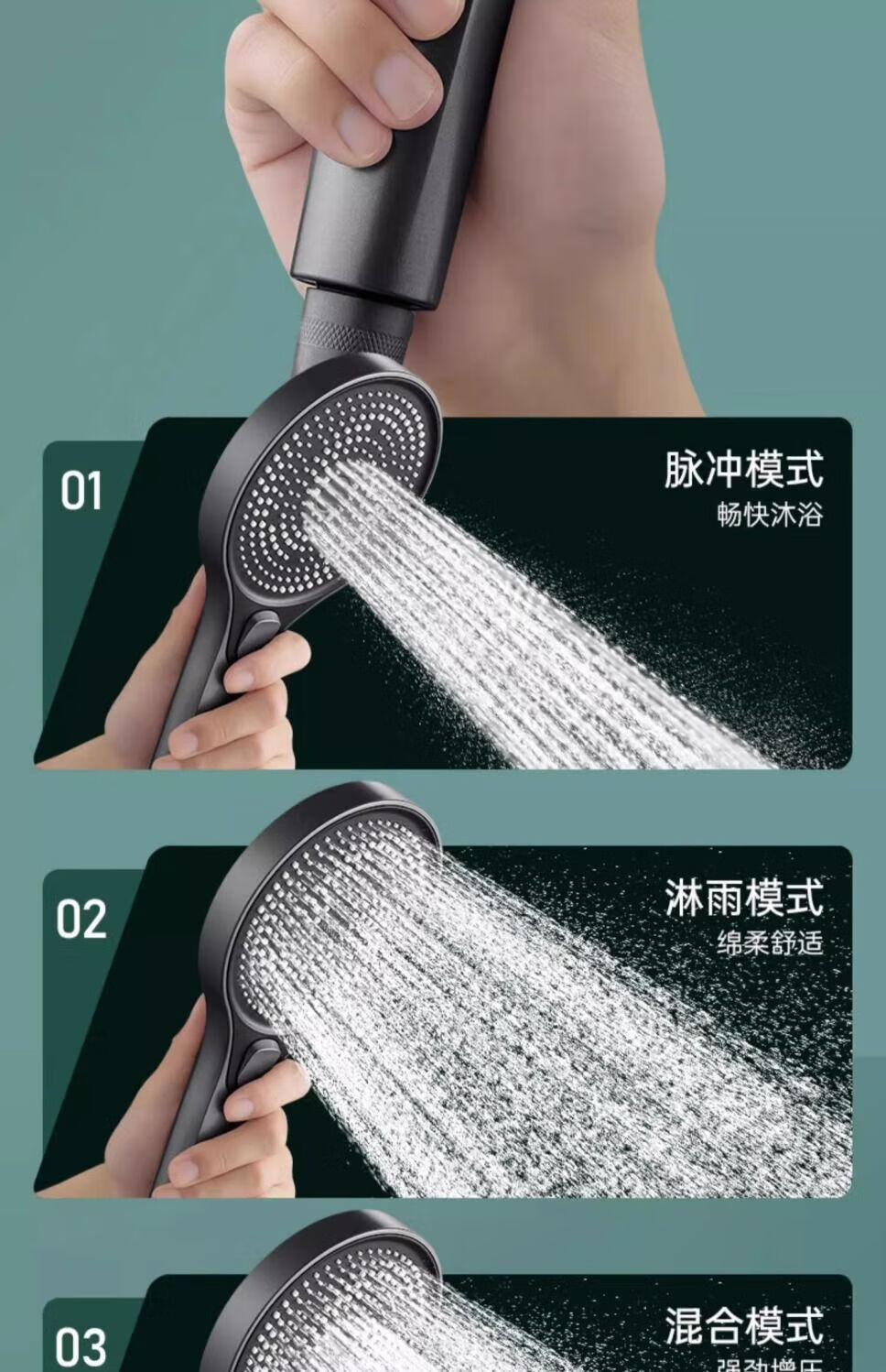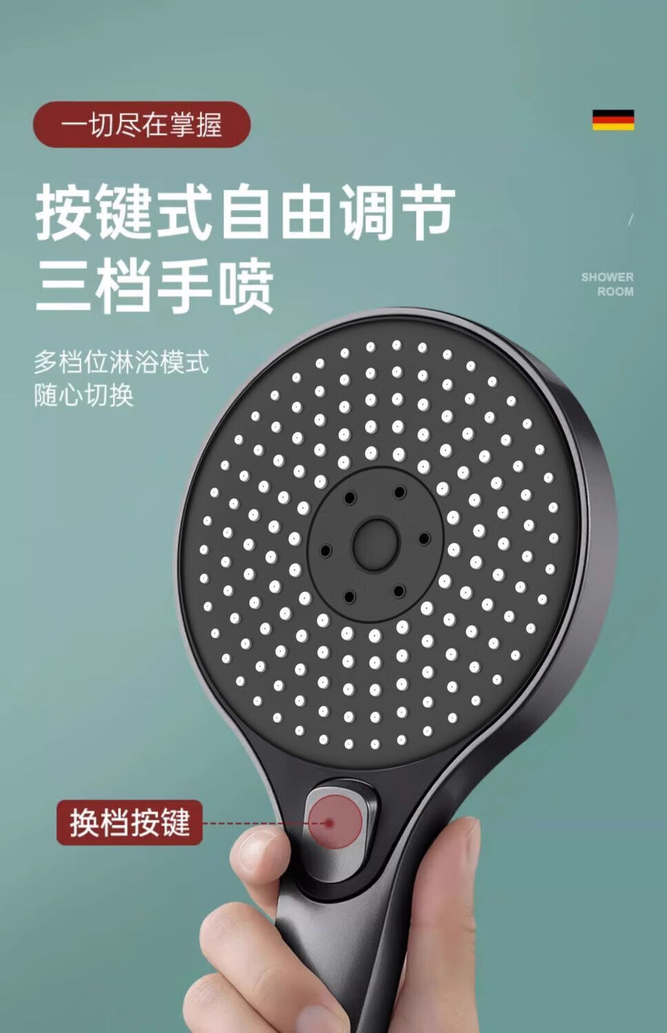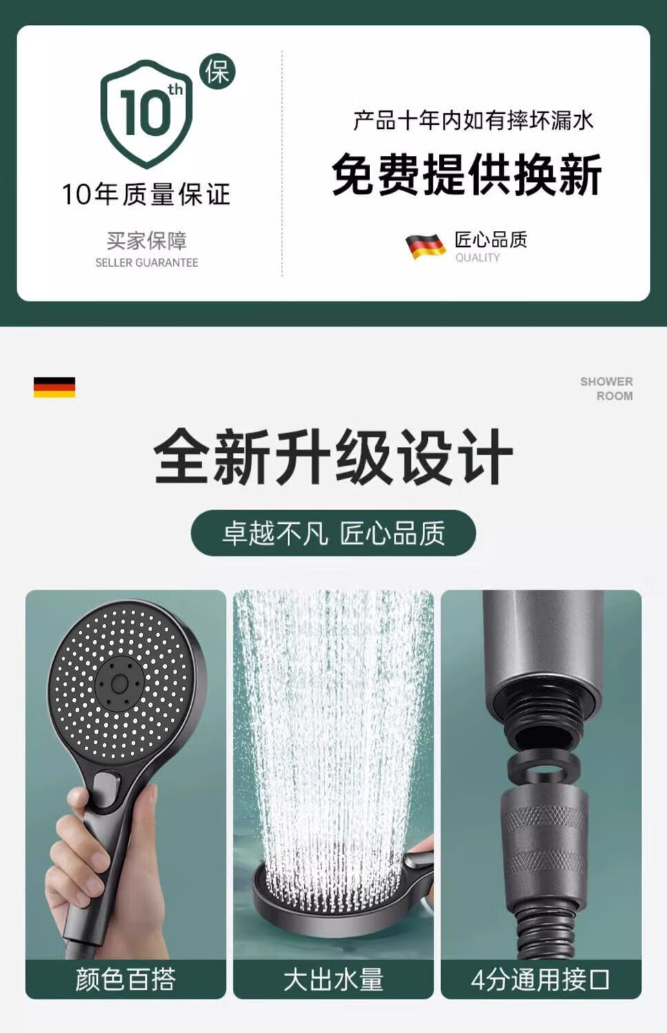 JMOOWO German shower booster shower head bathroom bathroom heater universal high-pressure shower lotus shower head set Mystery Mist Mystery Mist-Grey nozzle + nail-free seat German quality/large panel flower