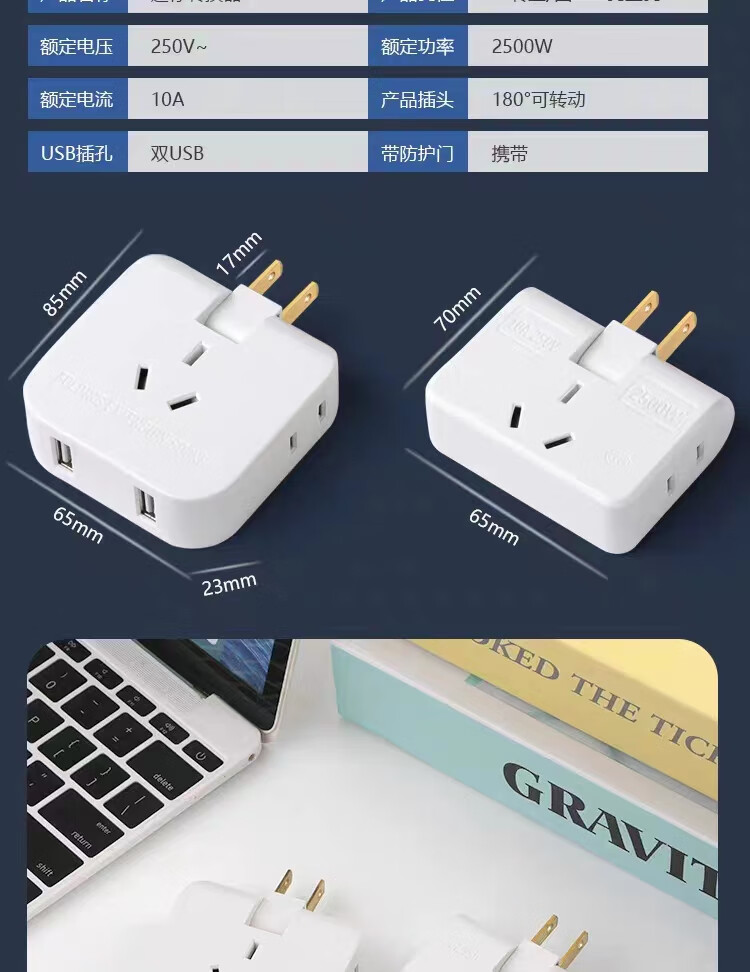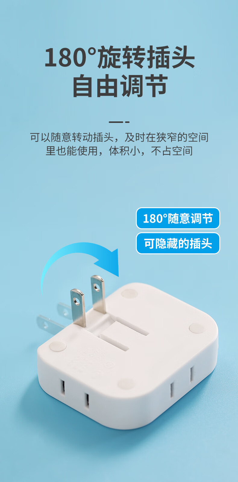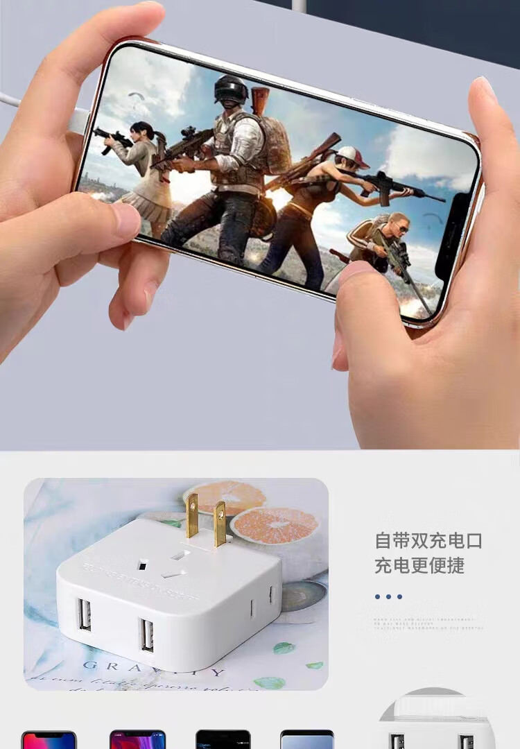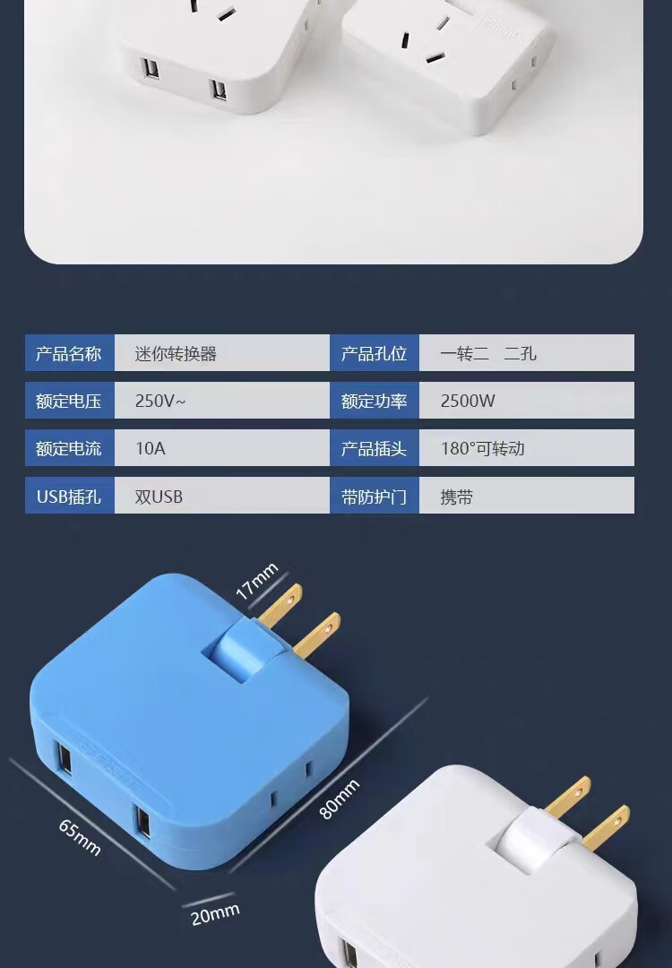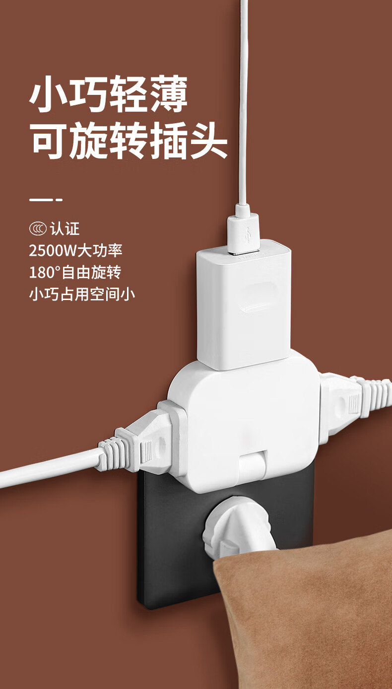 Bull (BULL) same style ultra-thin two-pin socket USB plug wall-mounted sofa rear converter 180 degree rotation white three sockets + 2 USB 7 holes 1 piece