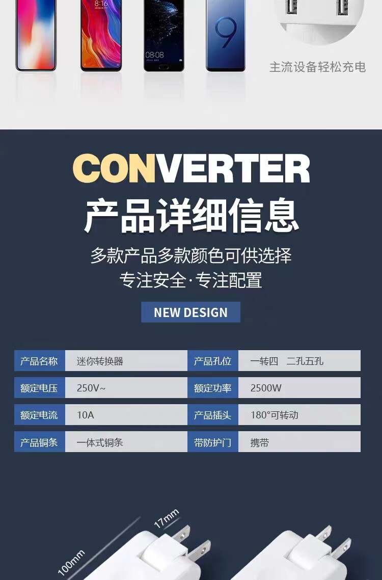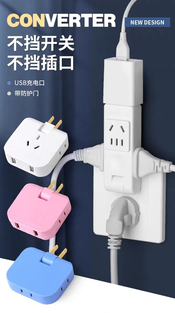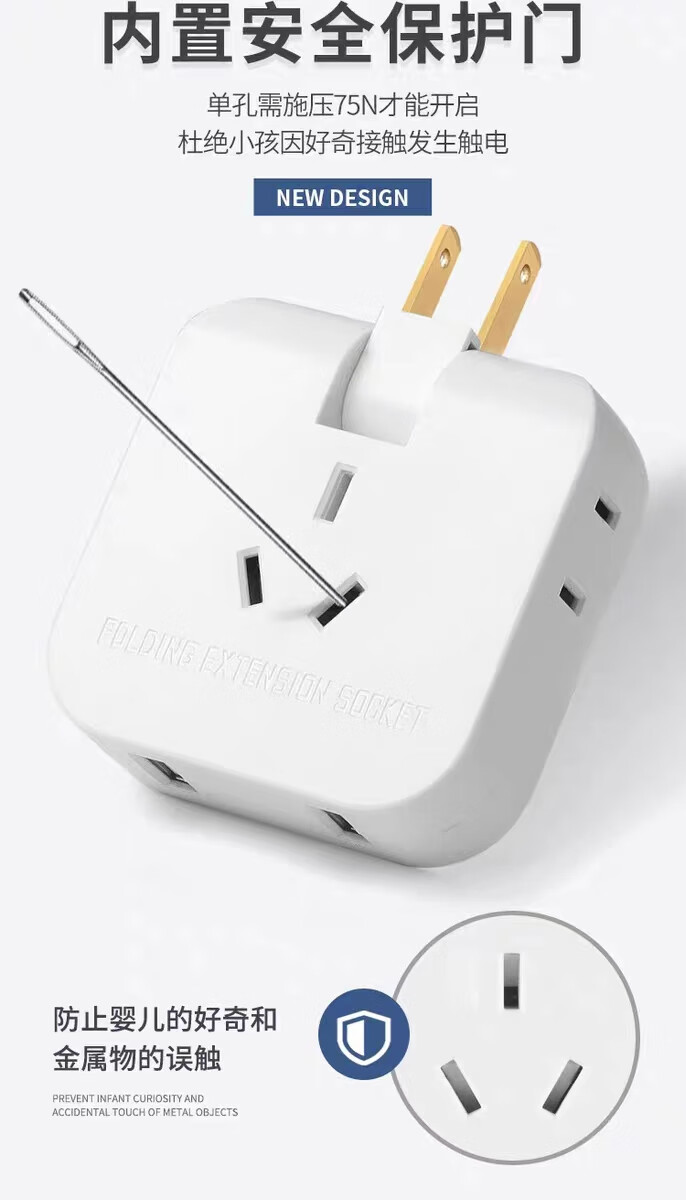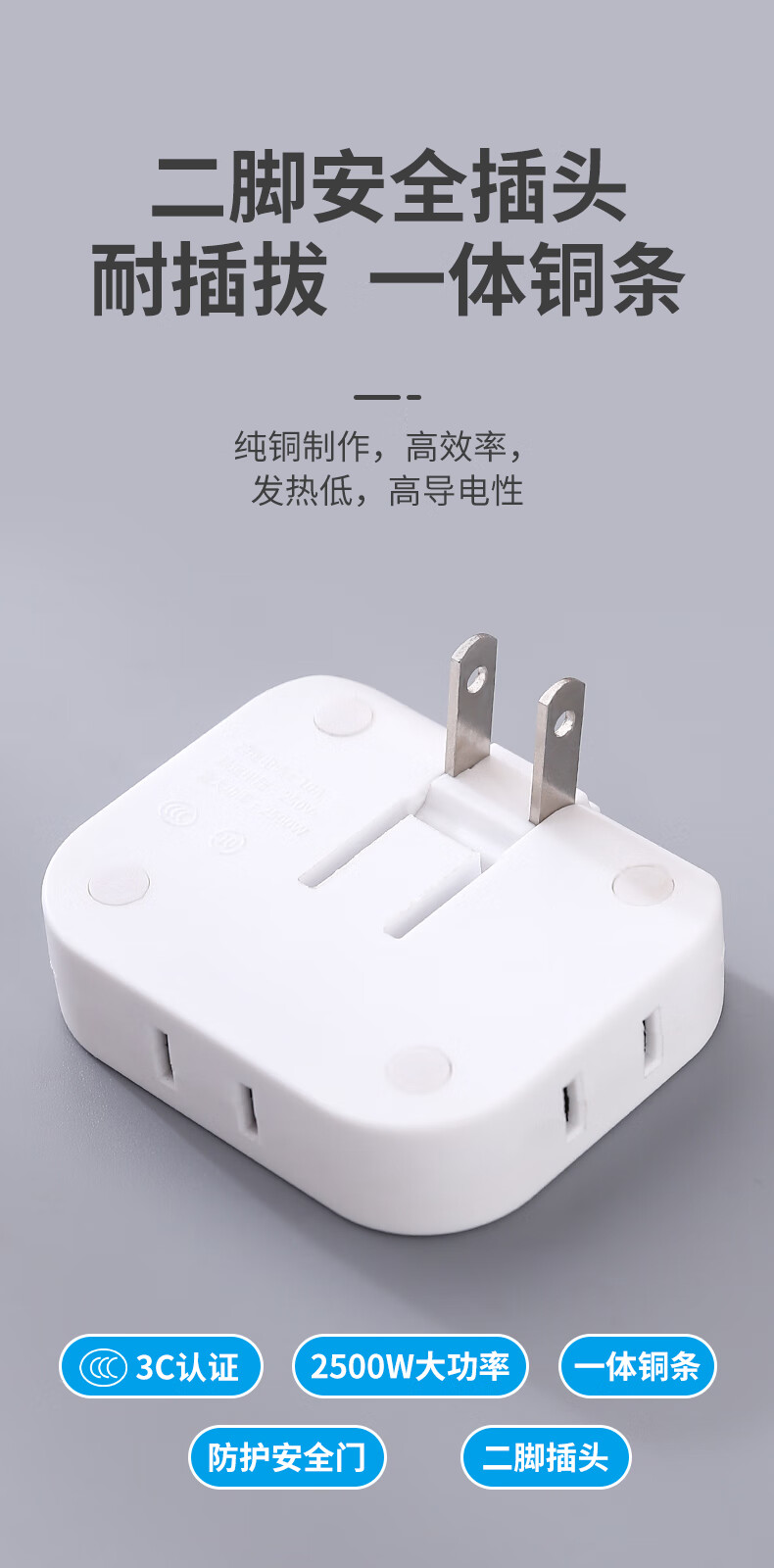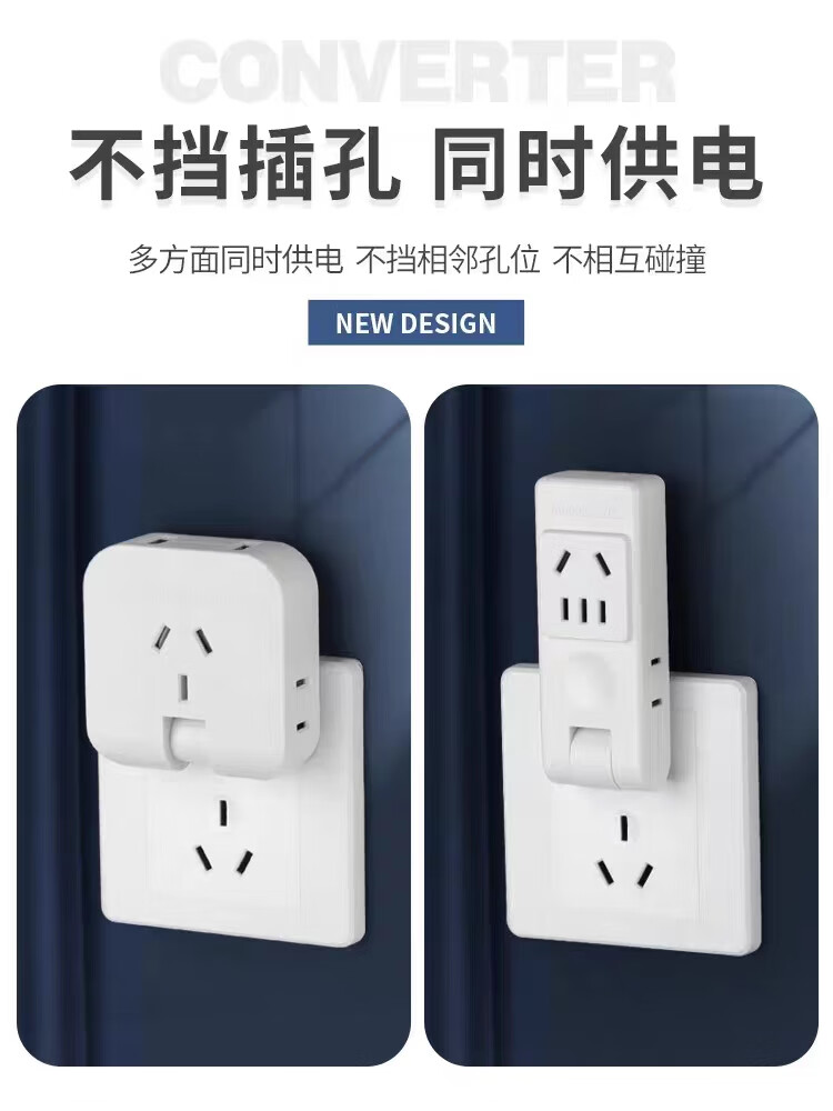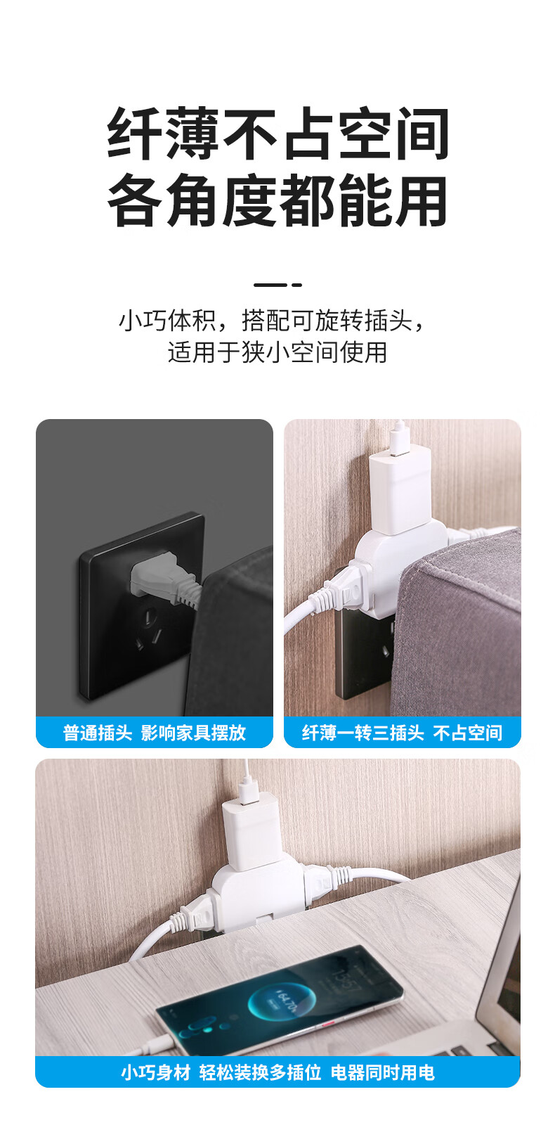 Bull (BULL) same style ultra-thin two-pin socket USB plug wall-mounted sofa rear converter 180 degree rotation white three sockets + 2 USB 7 holes 1 piece