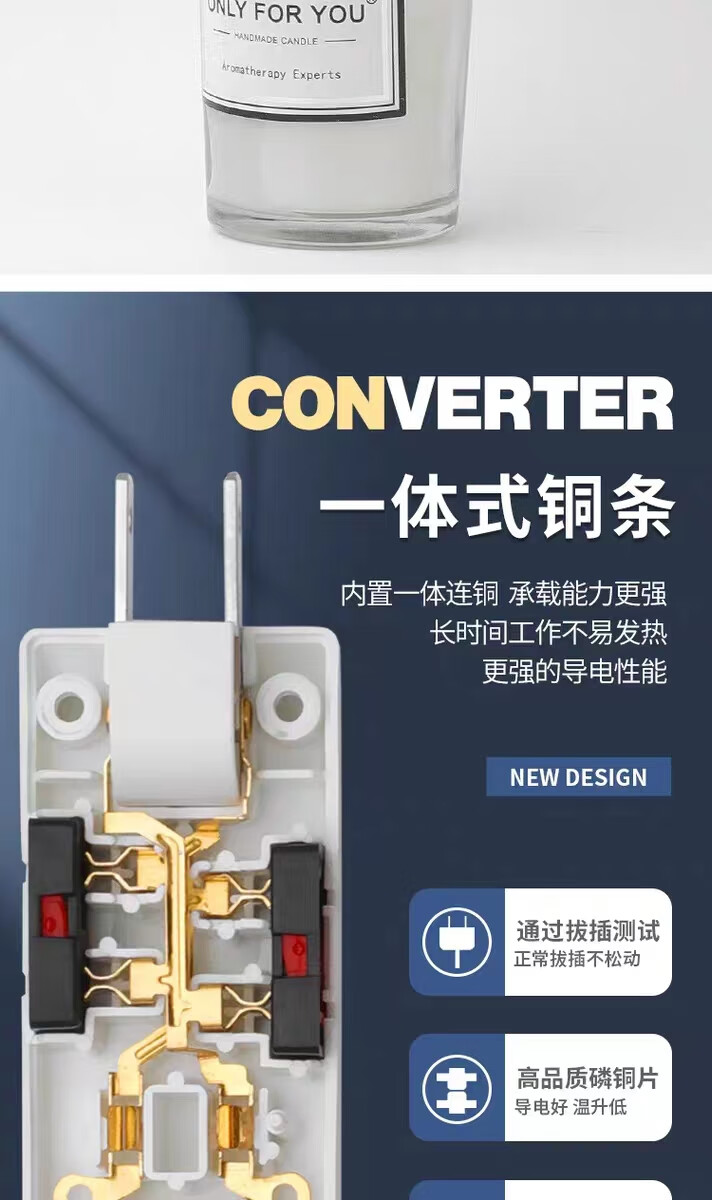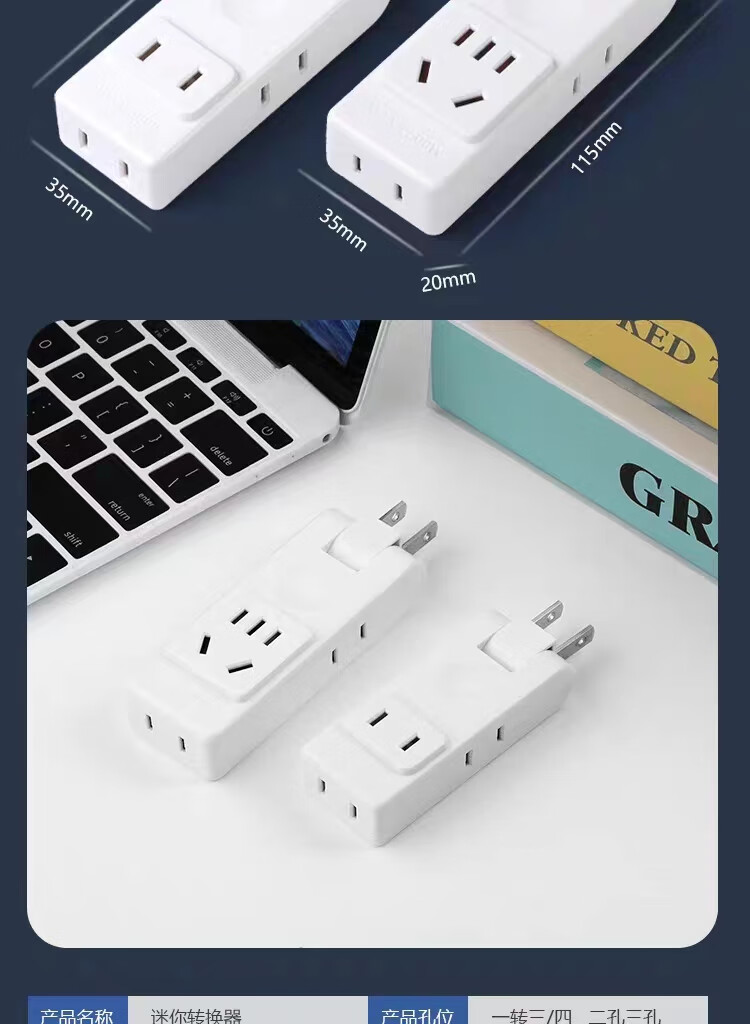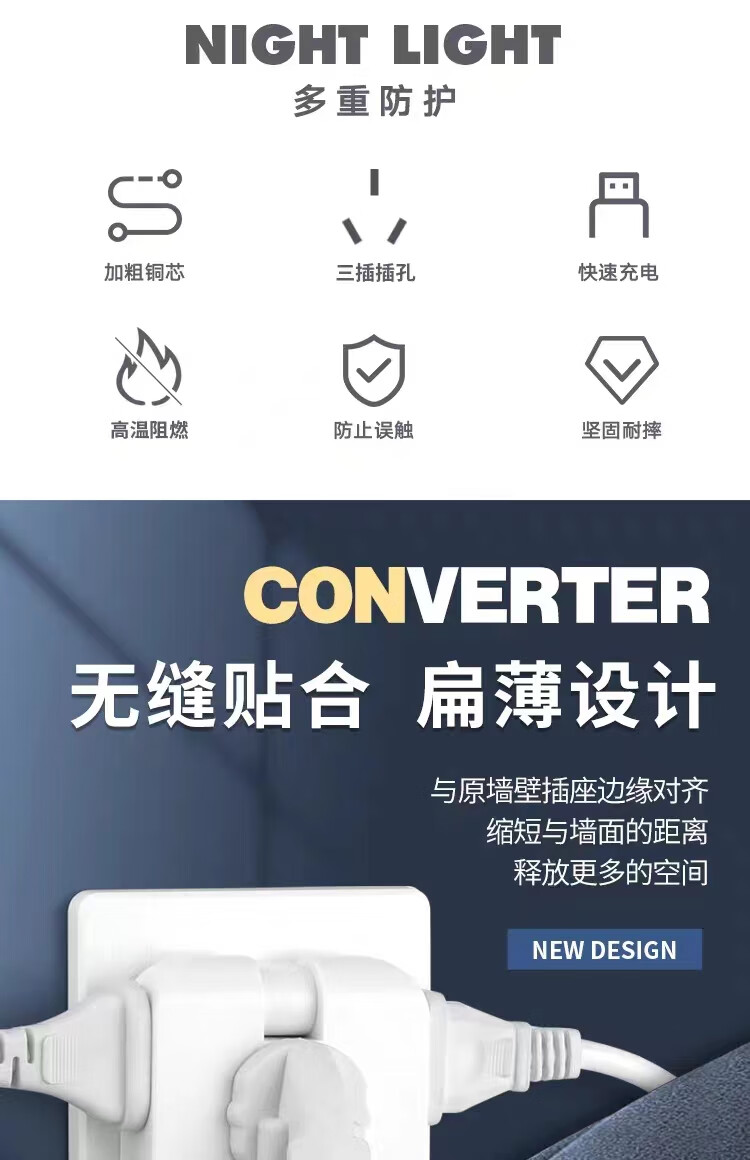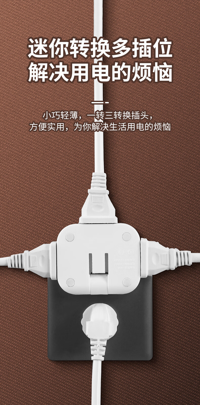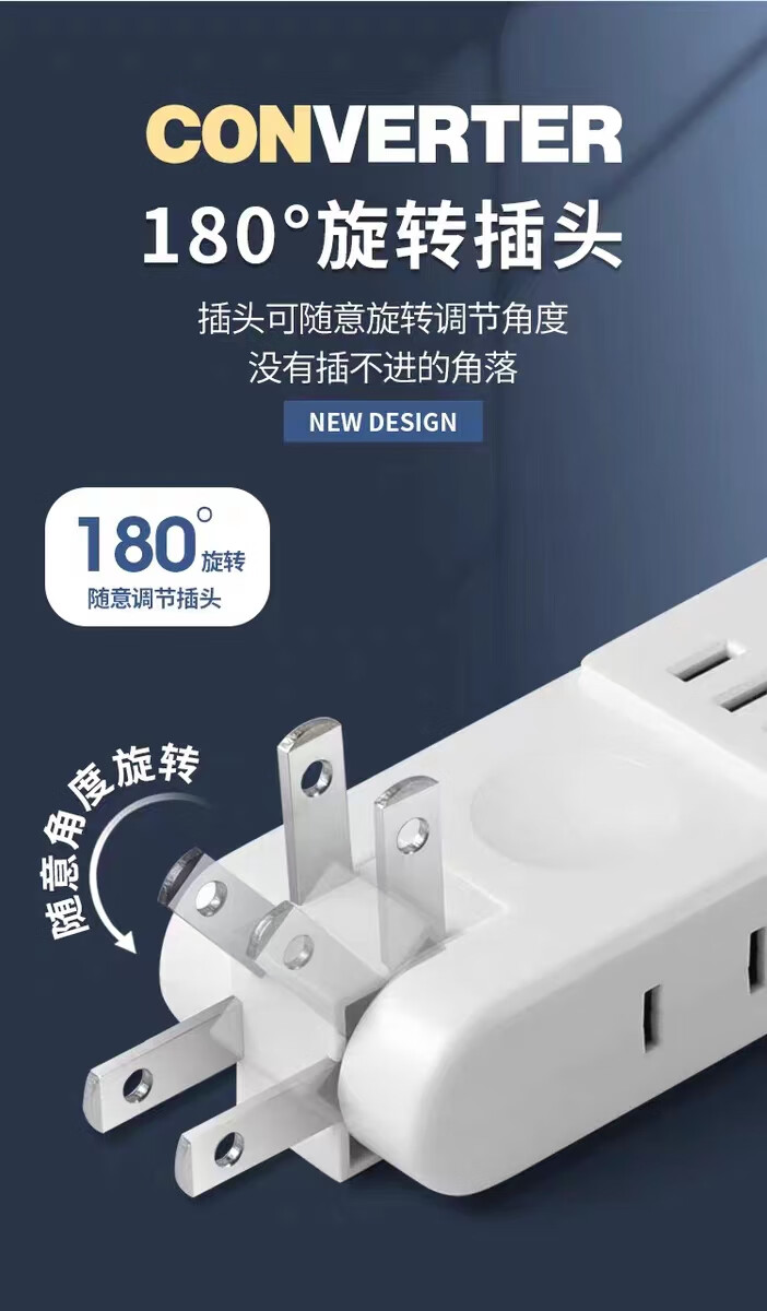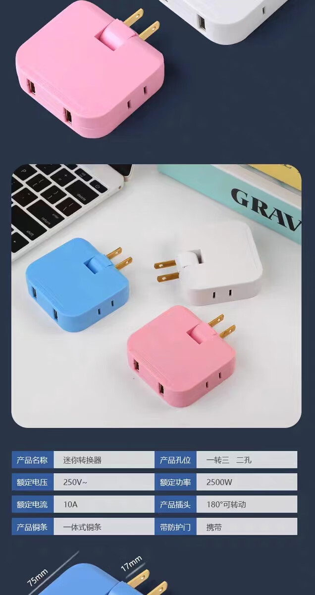 Bull (BULL) same style ultra-thin two-pin socket USB plug wall-mounted sofa rear converter 180 degree rotation white three sockets + 2 USB 7 holes 1 piece