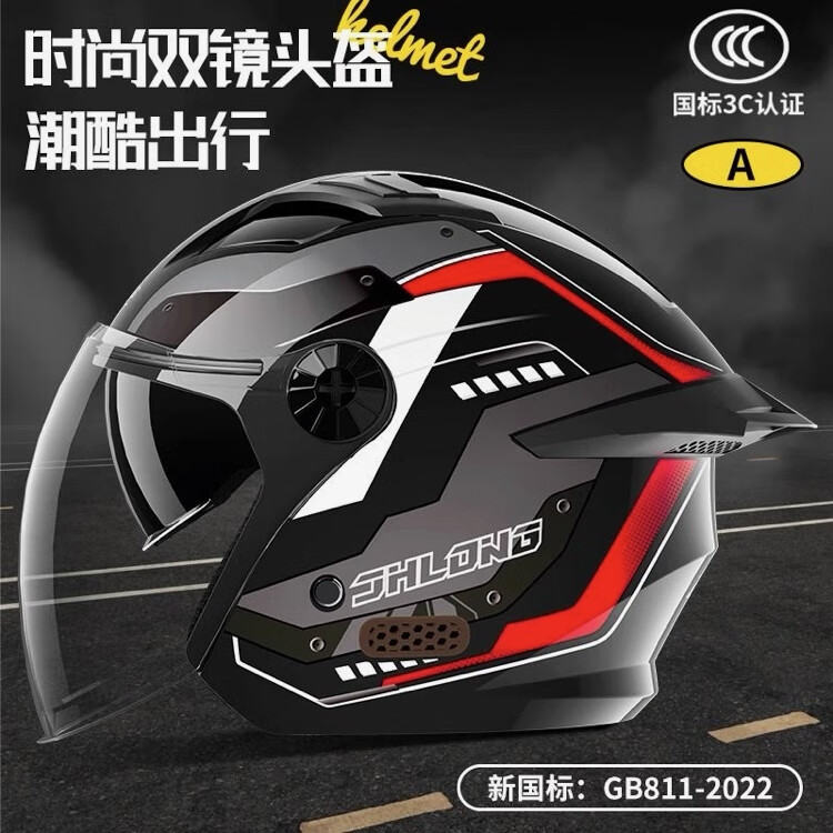 Junhaolong dual-mirror popular full-face motorcycle safety helmet motorcycle electric vehicle helmet unisex full-face helmet half-helmet flagship standard version gray space-high-definition dual-mirror adult size 54-62 head circumference
