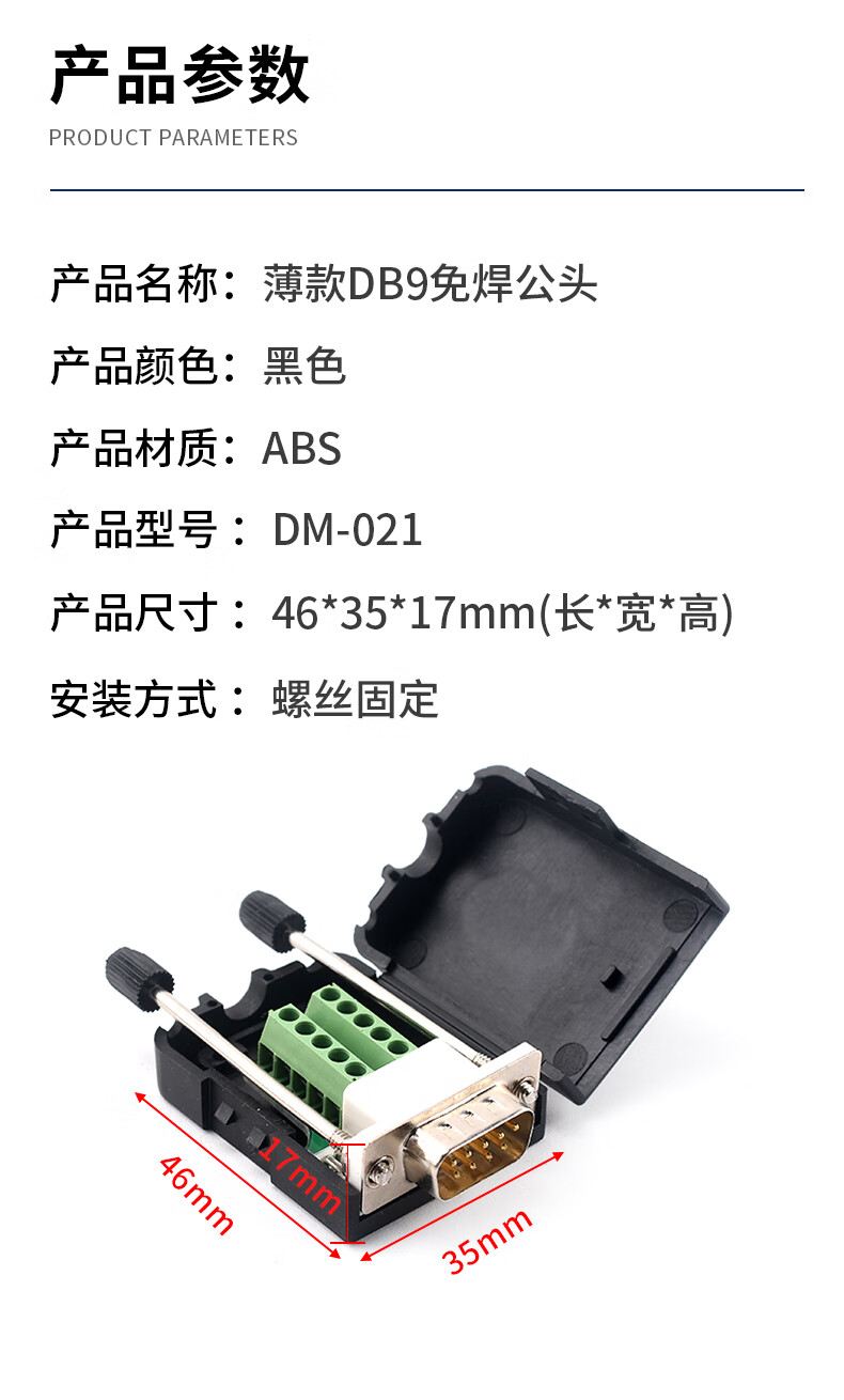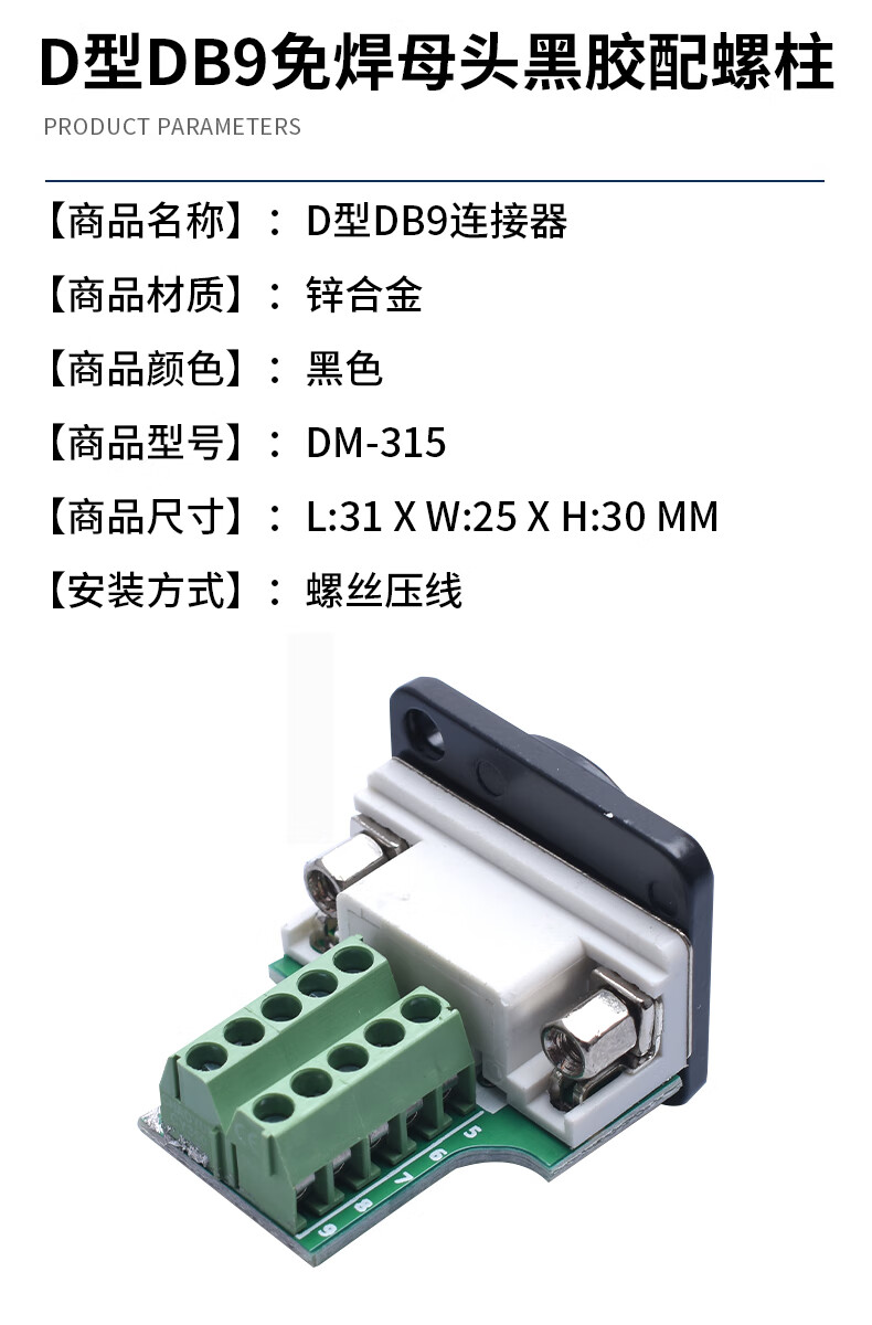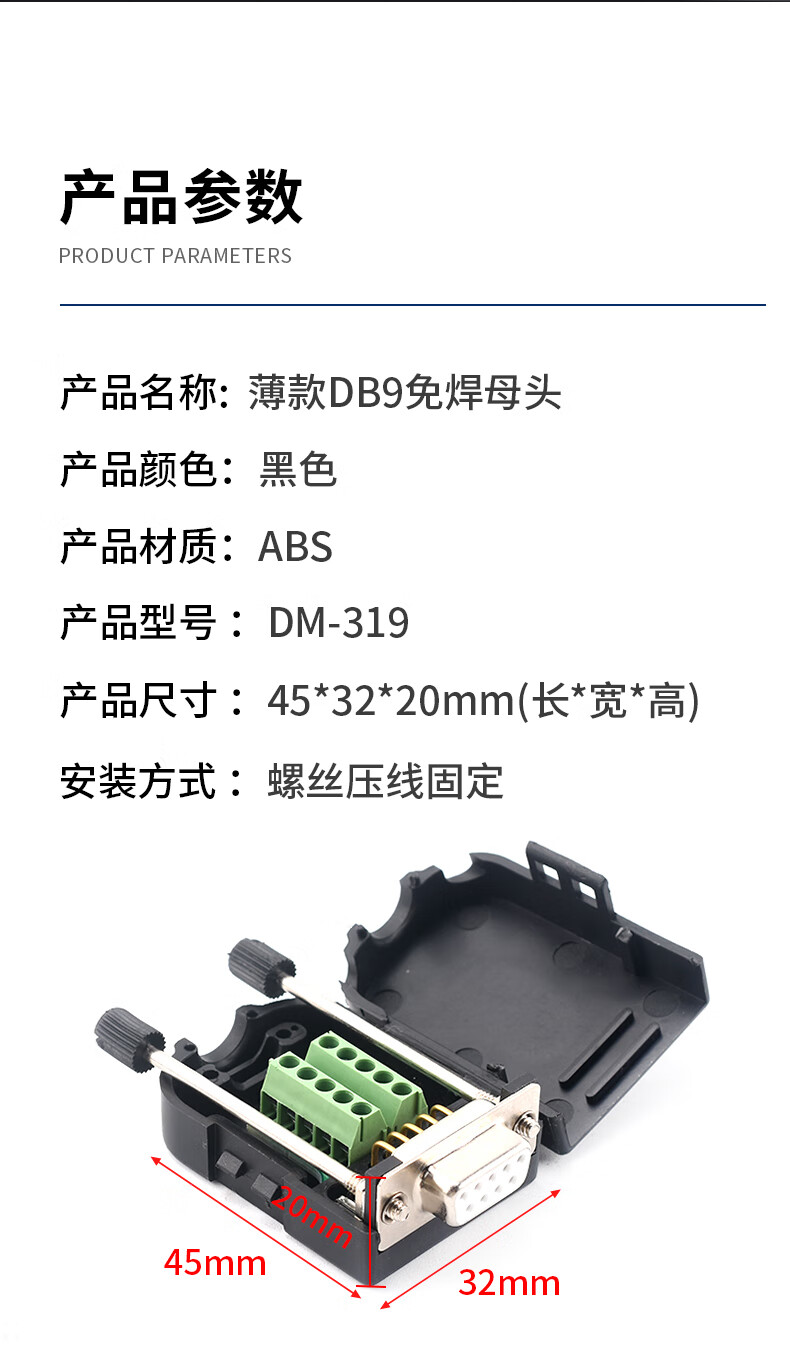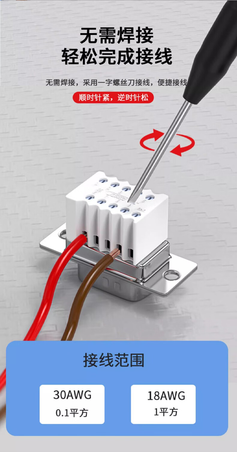 Serial head DB9 solder-free connector plug 9-pin adapter terminal RS232/COM port solder-free male head female new type solder-free solid needle gold-plated female head + ABS shell