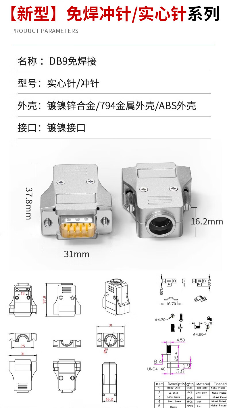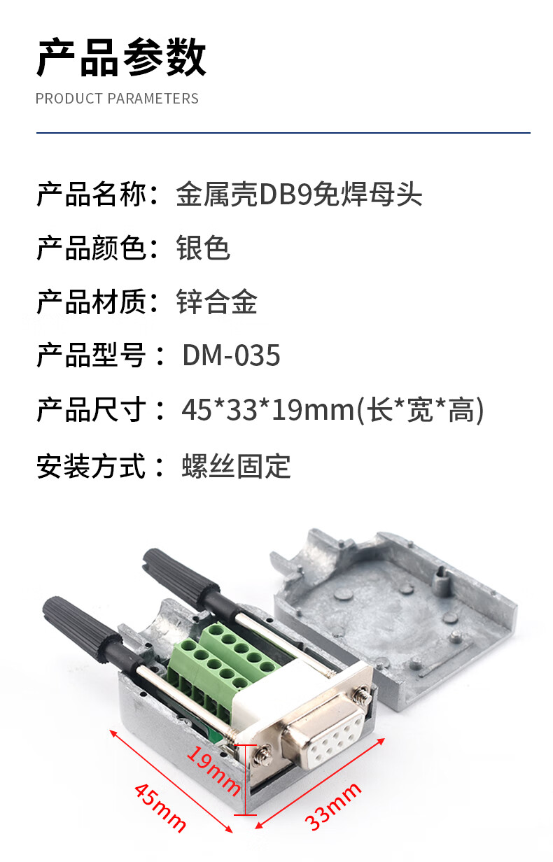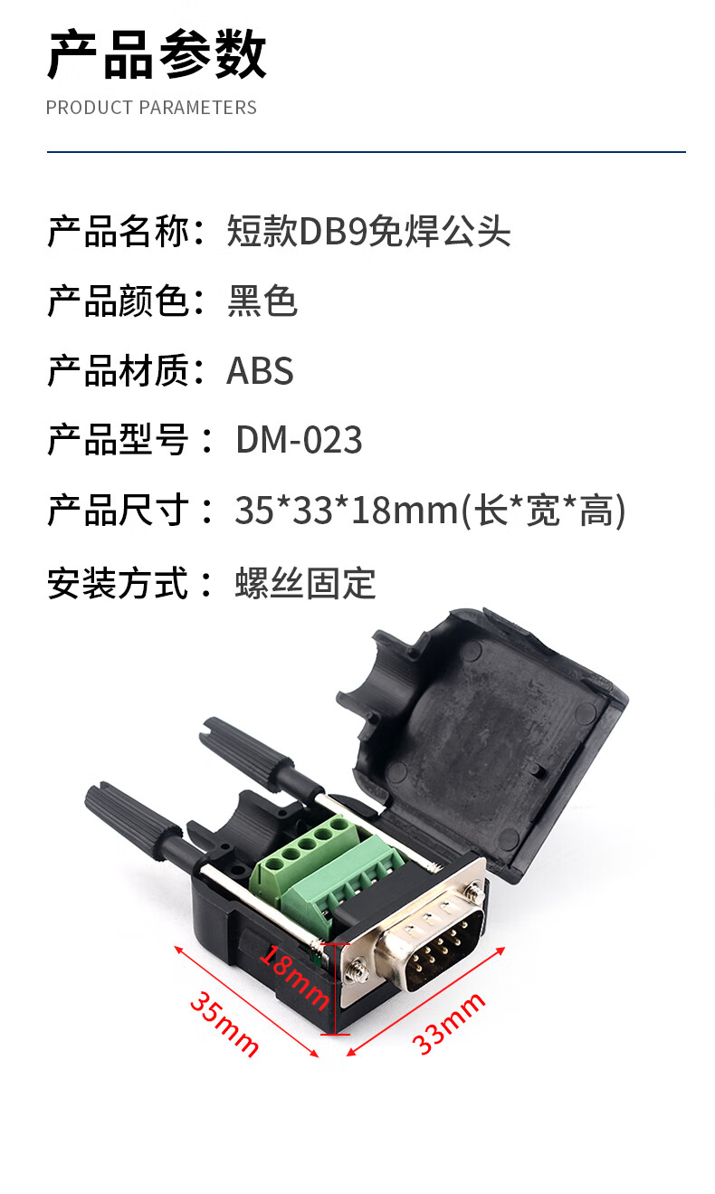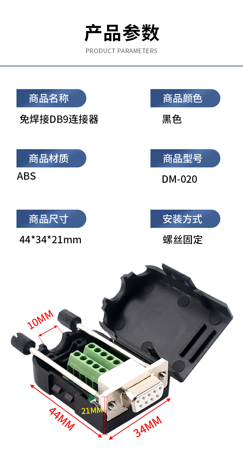 Serial head DB9 solder-free connector plug 9-pin adapter terminal RS232/COM port solder-free male head female new type solder-free solid needle gold-plated female head + ABS shell