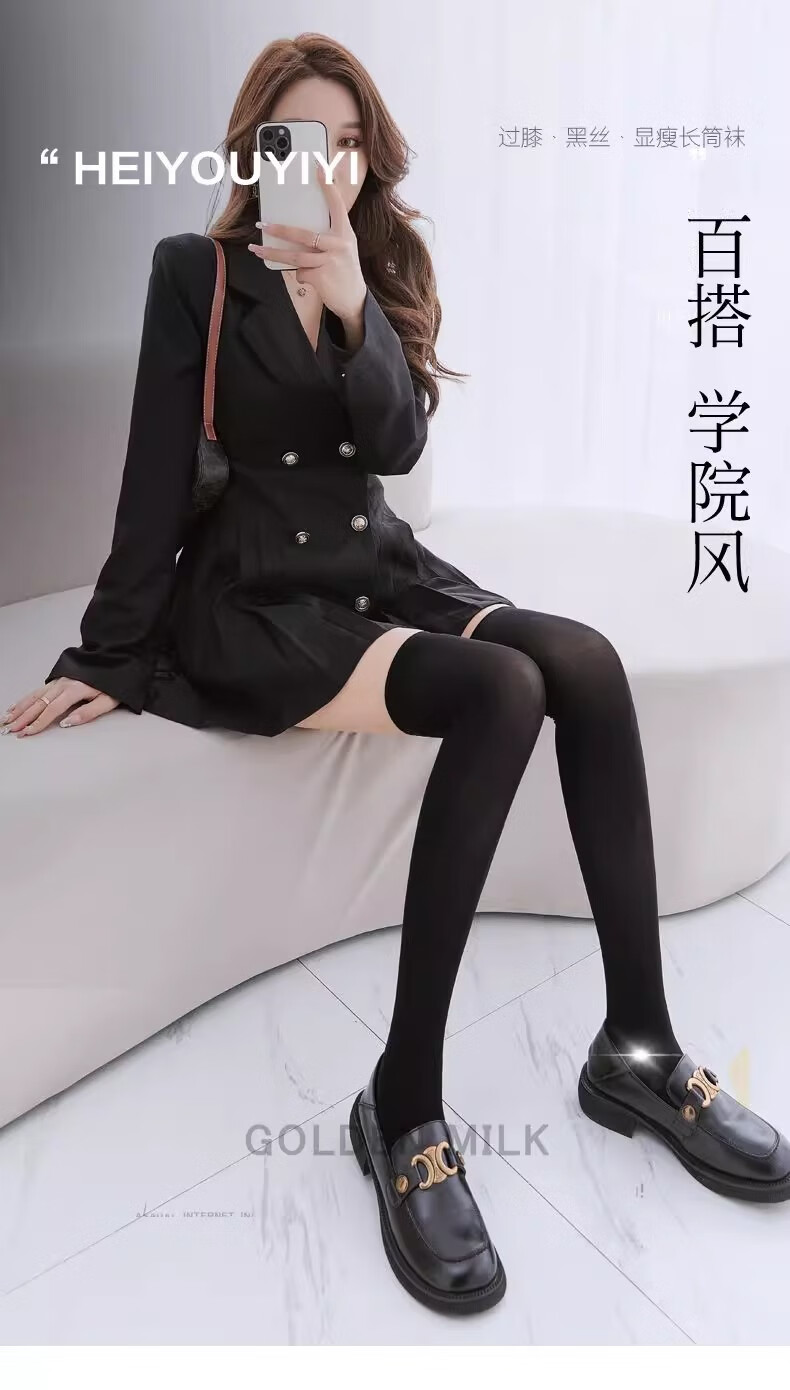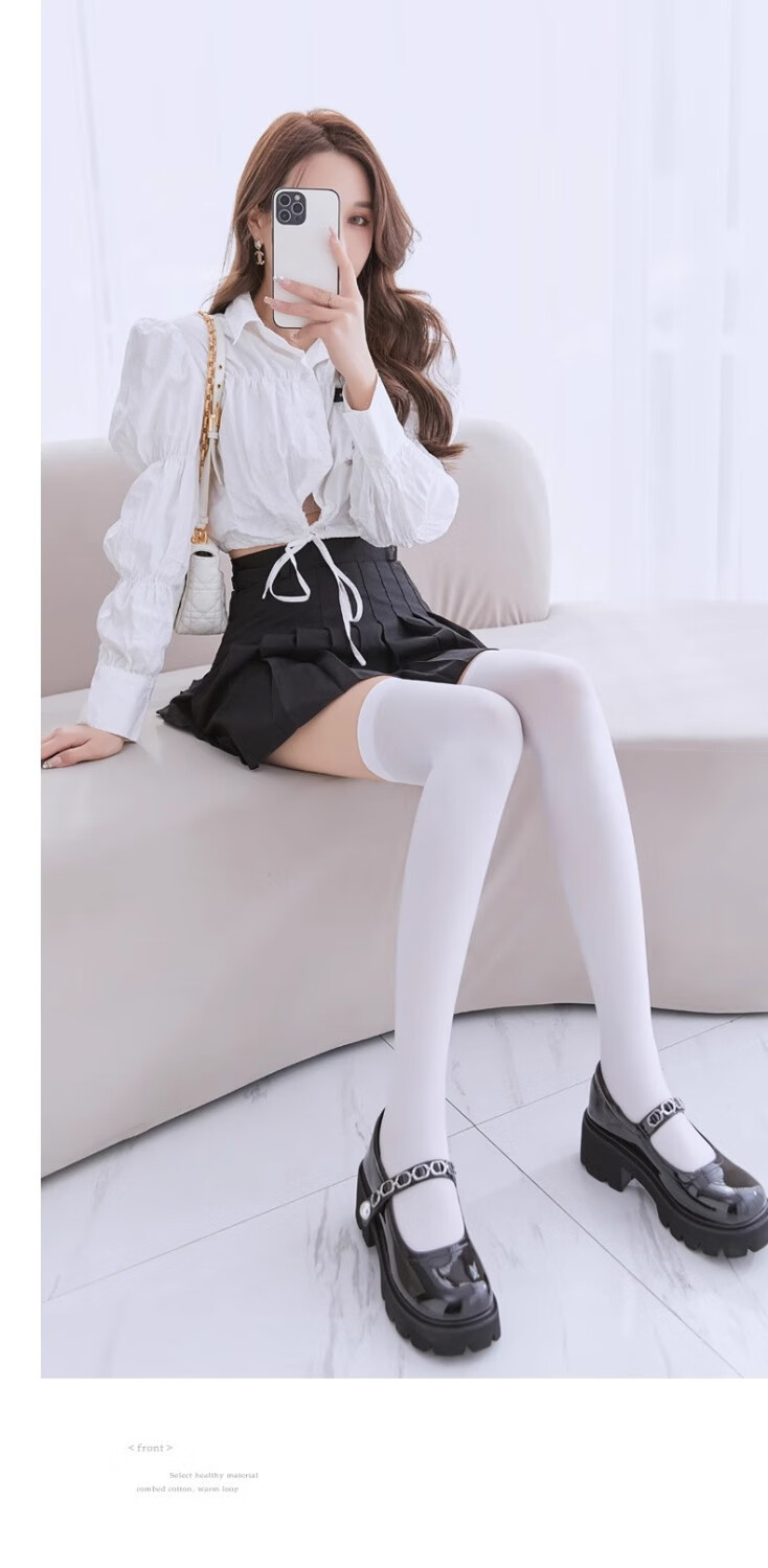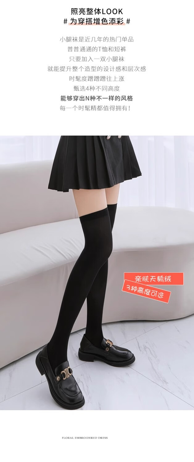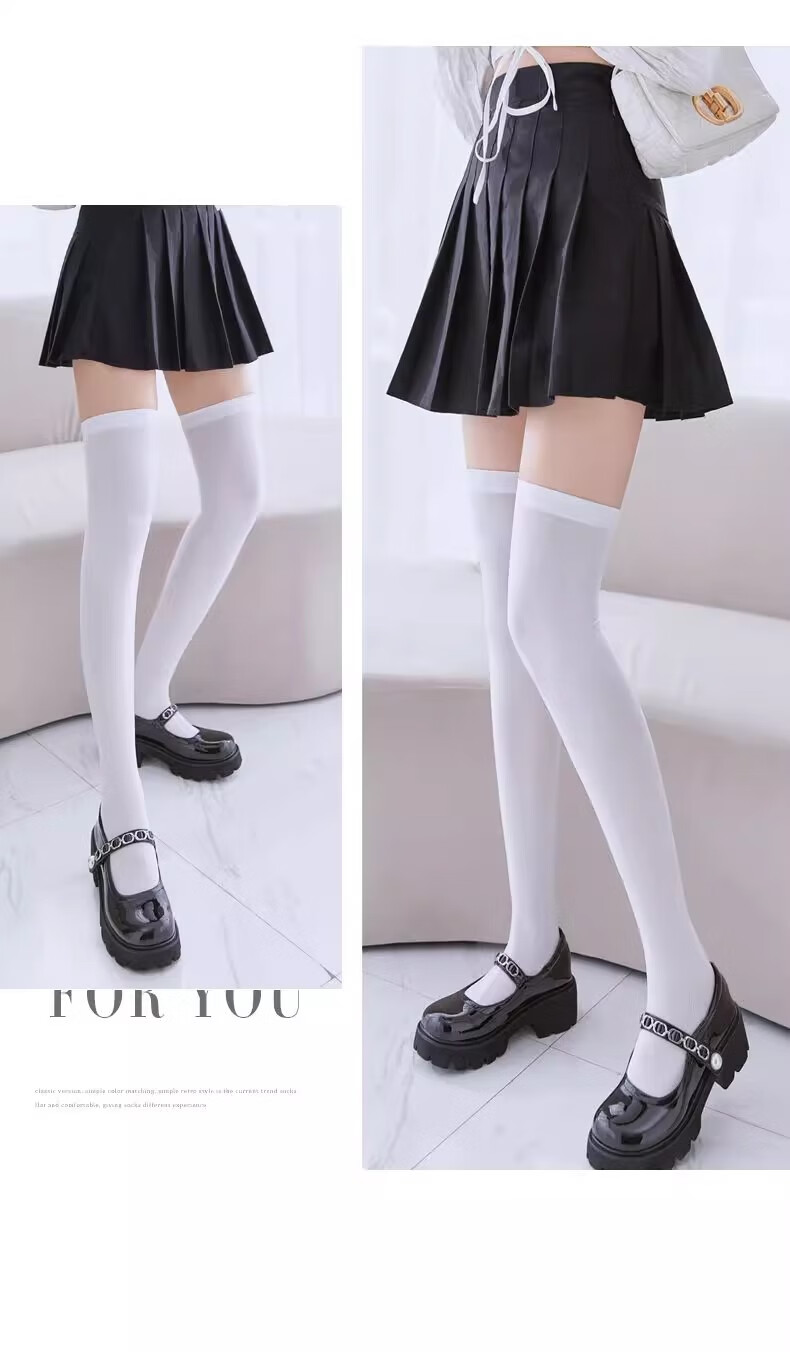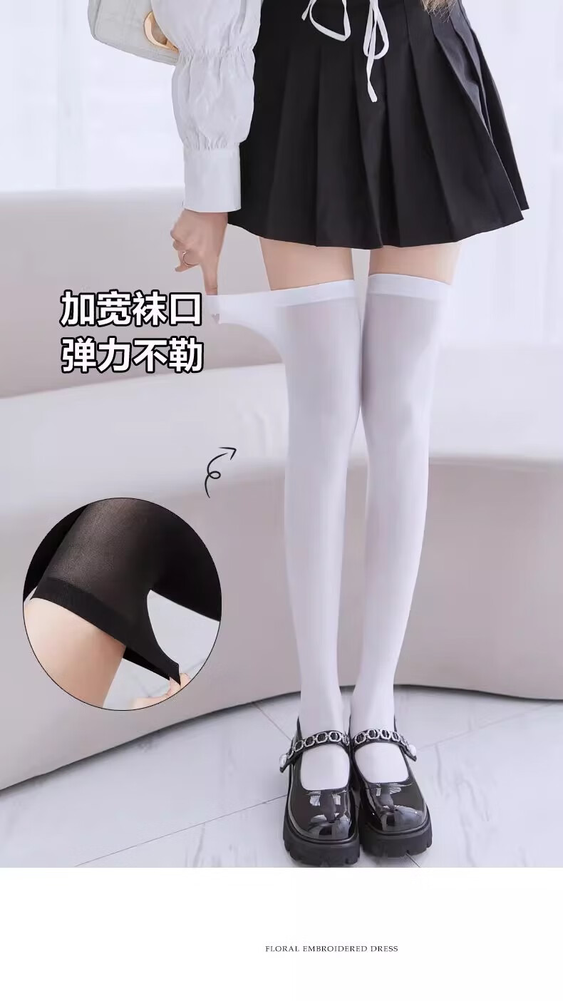 JAENS Japanese black and white silk calf socks for women, thin jk mid-length socks, velvet micro-pressure stovepipe half-length over-the-knee socks, over-the-knee style, white 2 pairs