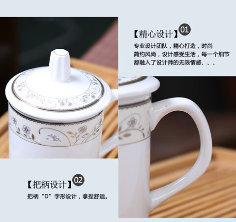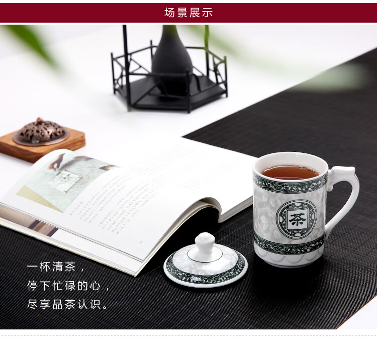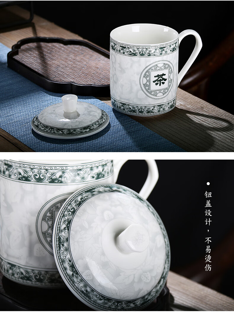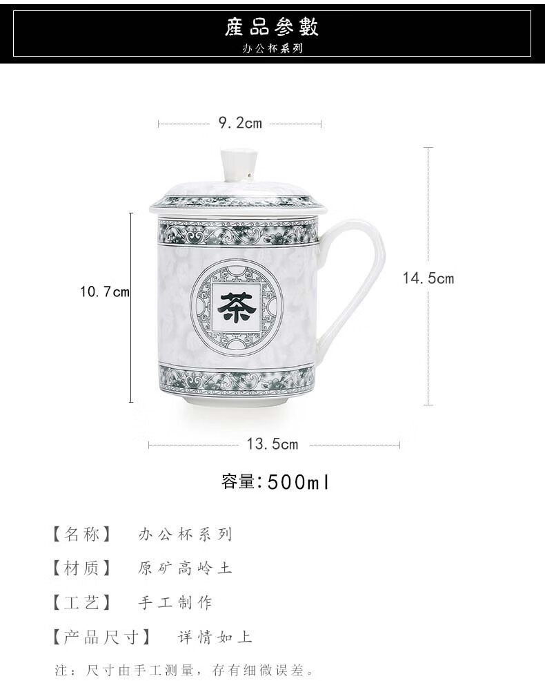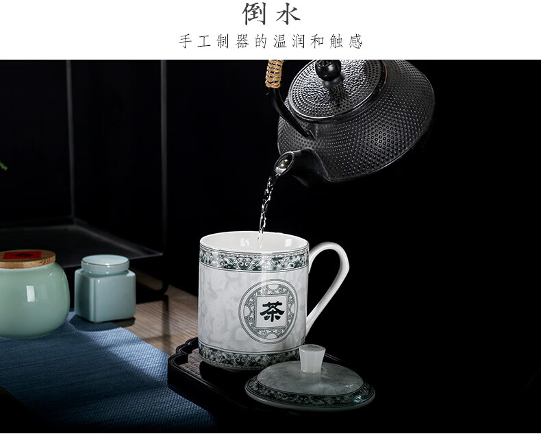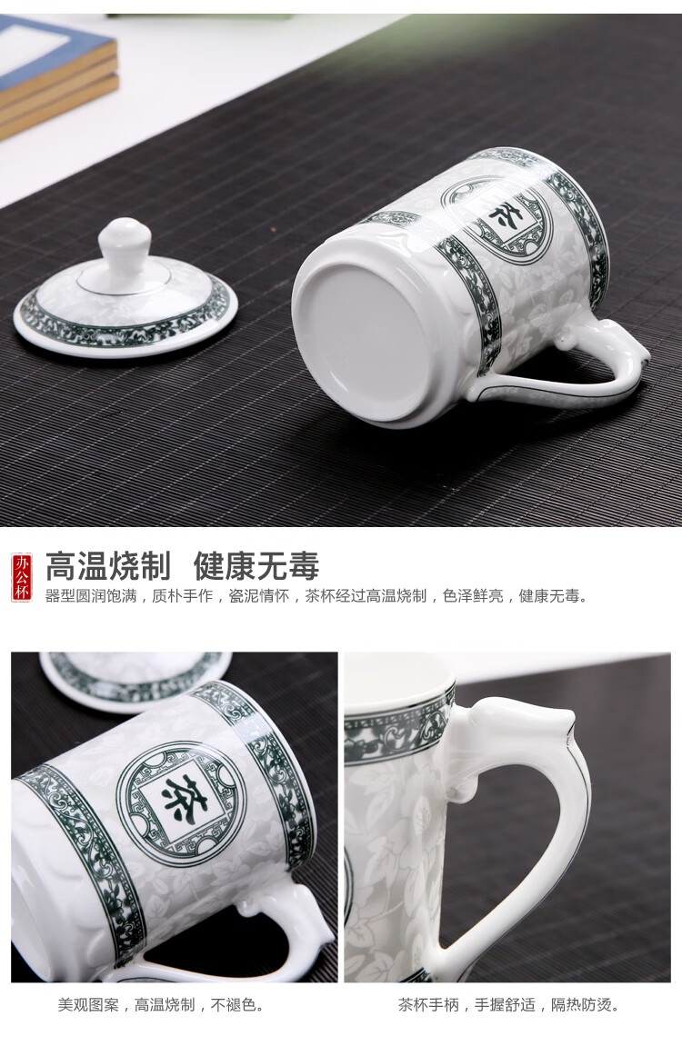 Ceramic tea cup, office meeting cup, chess and card room water cup, tea house cup, home tea cup, commercial custom water cup 1# welcome cup, cup with lid 400ml 400mL (not included)-600mL (inclusive)
