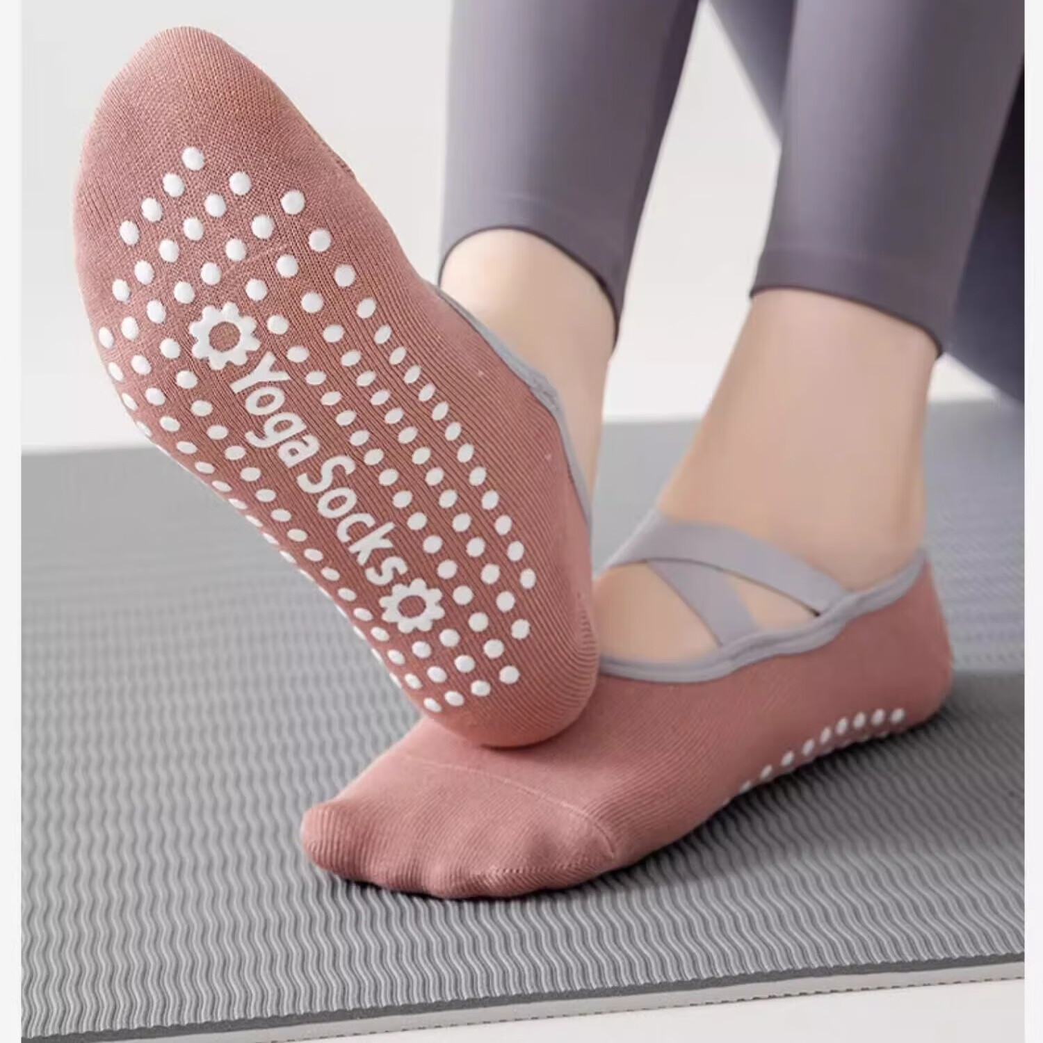Hunter Pilates non-slip socks cross-belt terry bottom women's thin adult indoor special sports fitness dance yoga socks pink