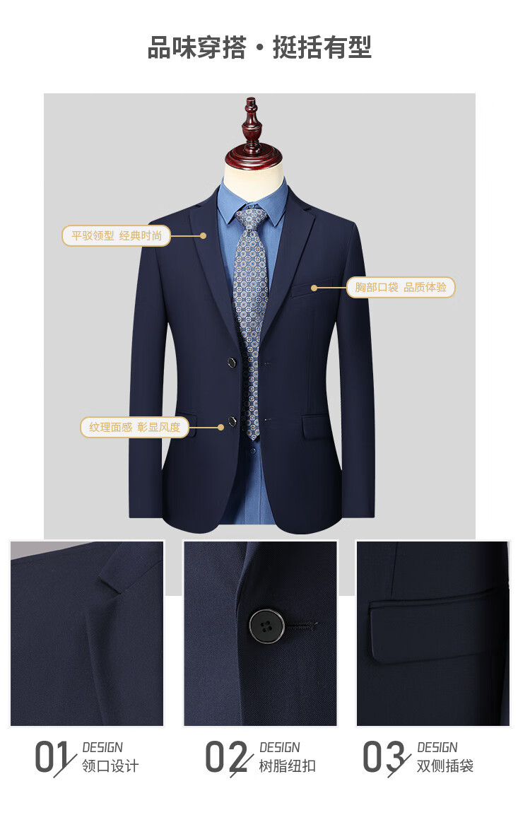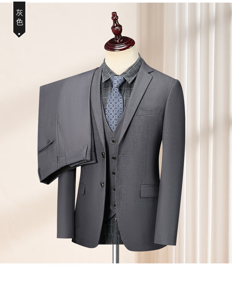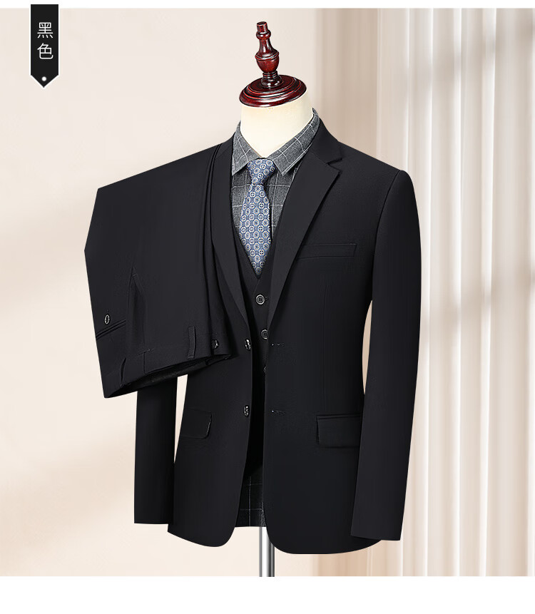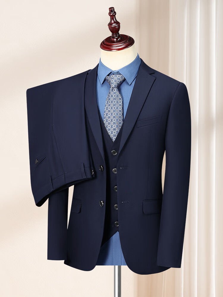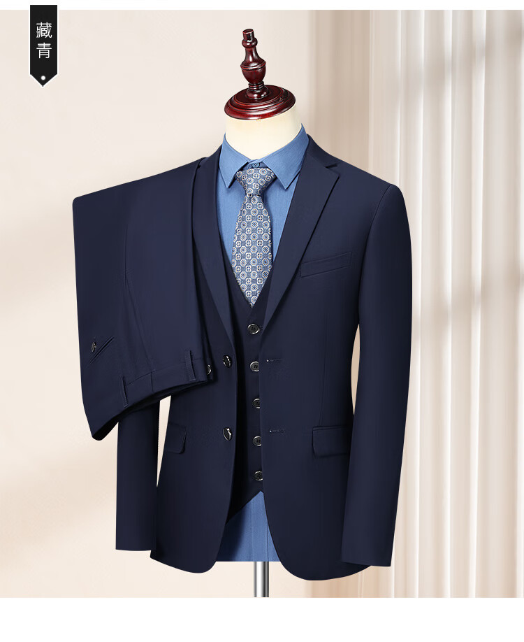 Pierre Cardin suit men's high-end customized business casual professional Korean version slim formal suit groom's wedding suit men's navy blue three-piece suit (suit + trousers + white shirt) XL size (plus 8 gifts)