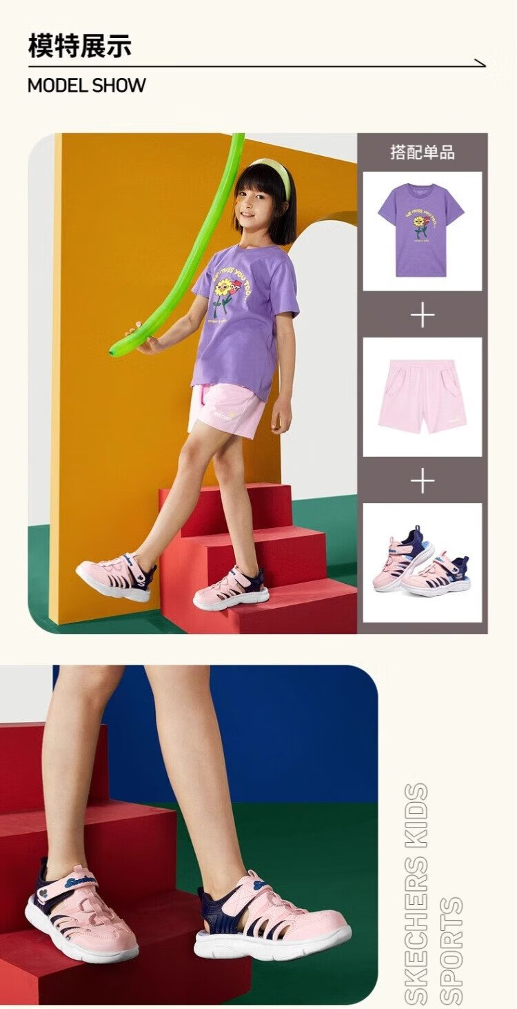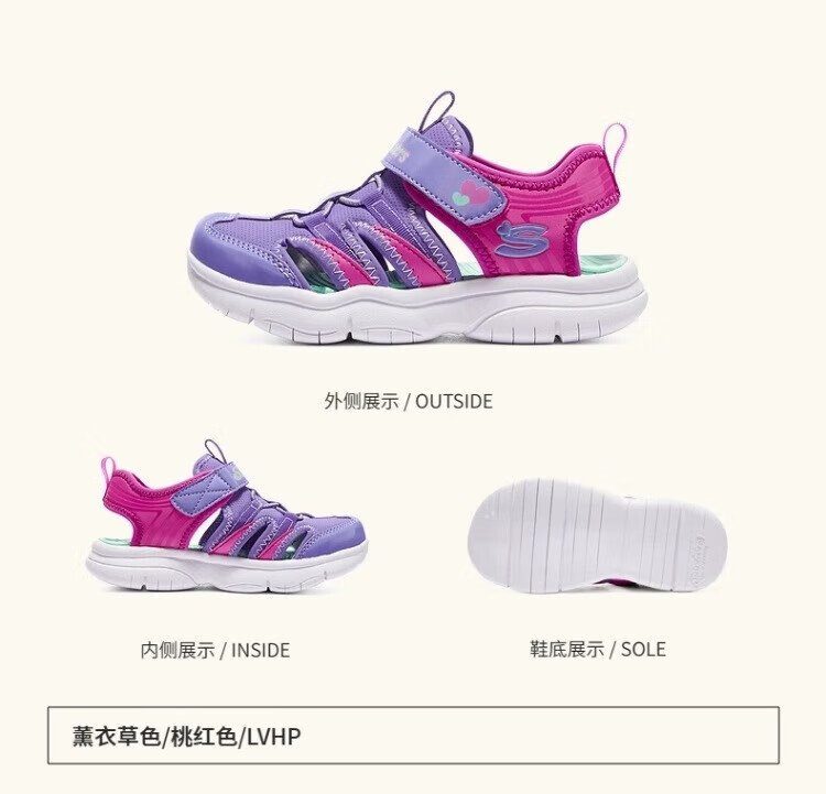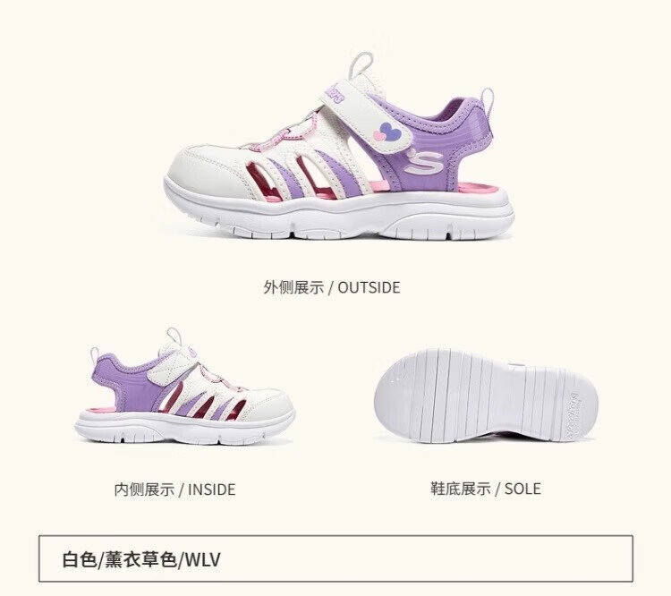 Skechers girls' toe-cap sandals 302969L white/lavender/WLV 33.5