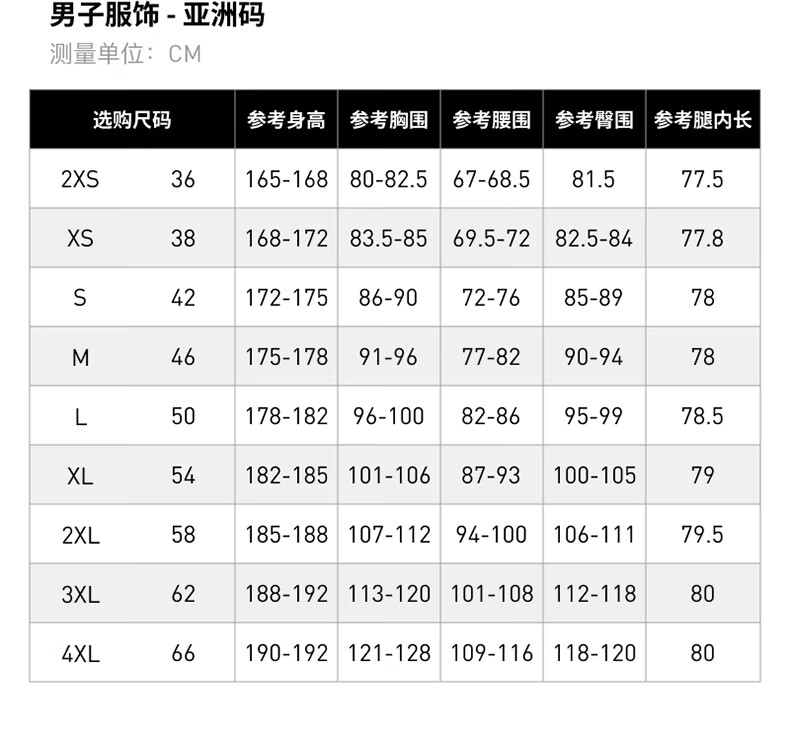 China (cm) 160-165/84-86 165-170 / 88-90 167-172 / 92-96 168-173 / 98-102 170-176 / 106-110
