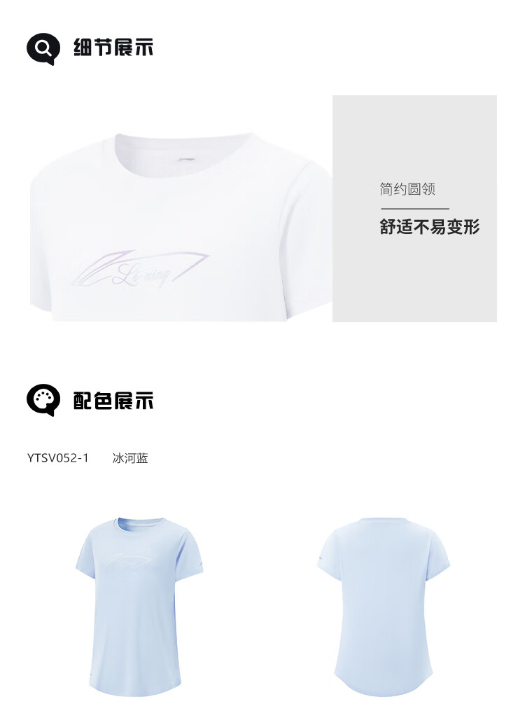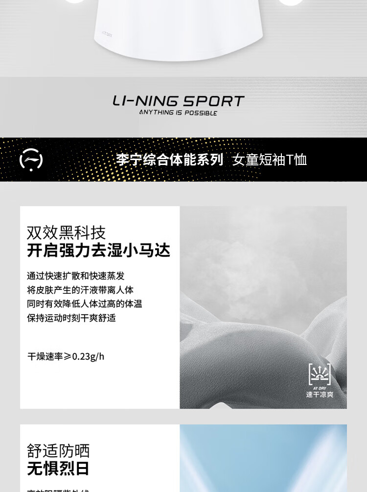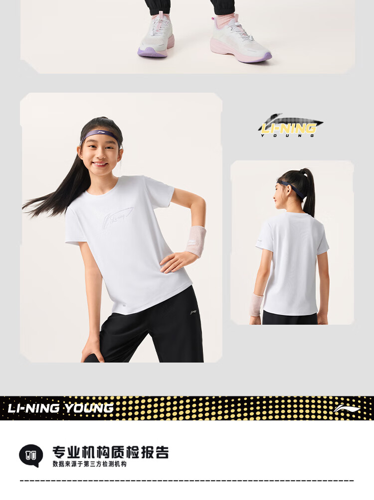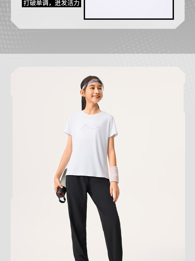 Li Ning children's T-shirt short-sleeved girls 25 summer new comprehensive fitness series quick-drying sun protection sports top Glacier Blue-1 150