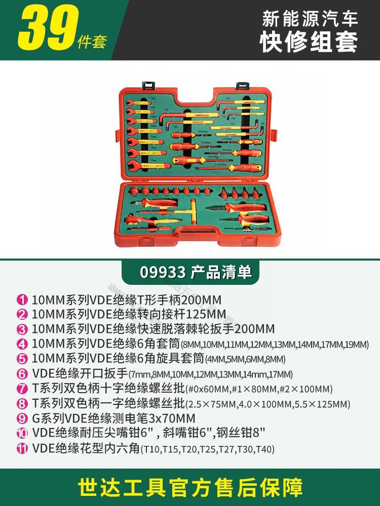 Sijie Insulated Car Repair Kit New Energy Electric Vehicle Special Sleeve VDE Certified Tool Box 09933/39 Pieces New Energy Vehicle Quick Repair Kit