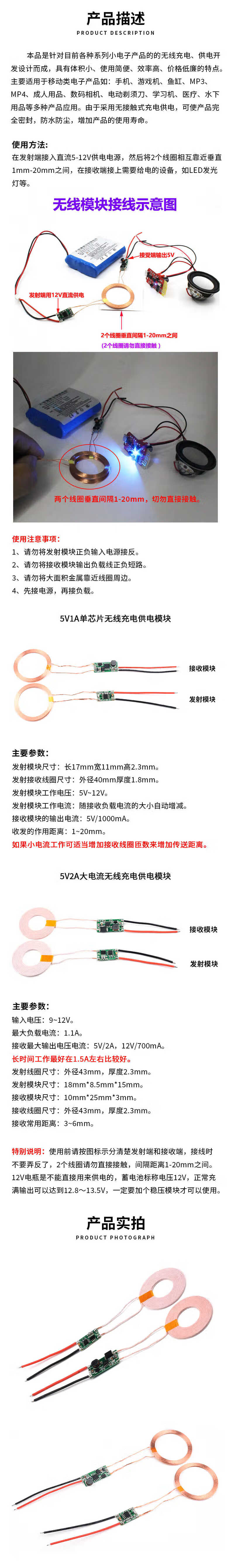 5V1A/5V2A wireless power supply module wireless charging transmitter and receiver circuit board 5w 10w high power 5V2A high current wireless charging module (receiver + transmitter)