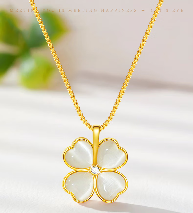 Lao Fengxiang Lucky Four-leaf Clover Silver Necklace for Girls High-end Clavicle Chain Birthday Wedding Anniversary Gift for Girlfriend and Wife Lucky You Four-leaf Clover Necklace-Brand Gift Box
