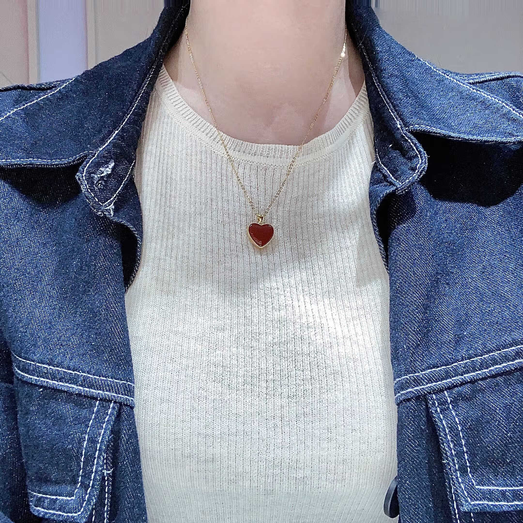 Youshu 18K gold pendant double-sided love red agate pendant au750 gold necklace women's clavicle chain women's 18k gold rose gold single pendant