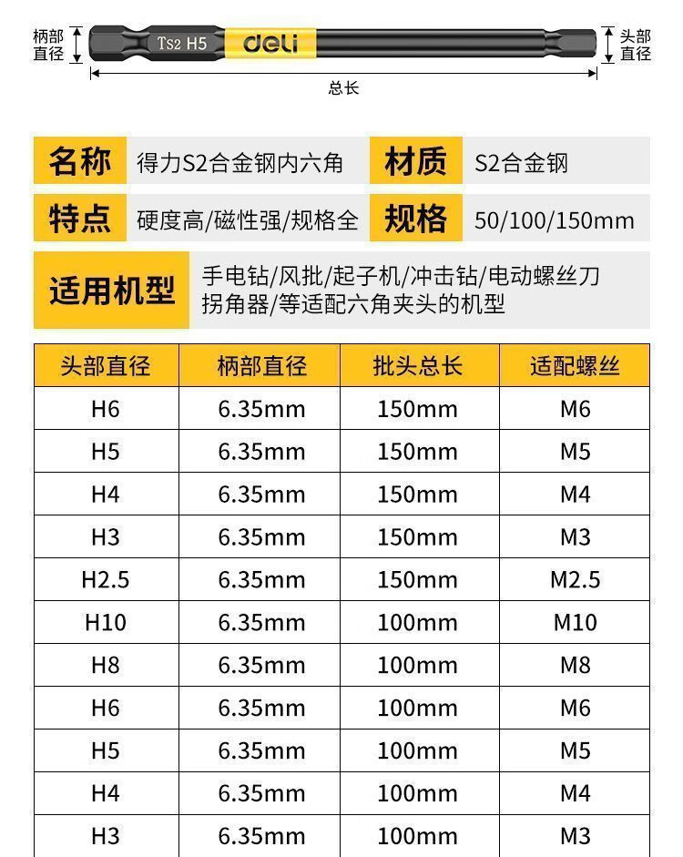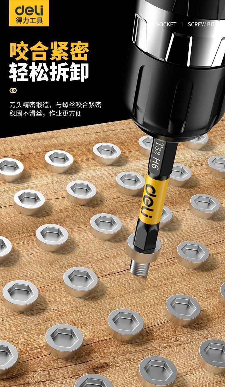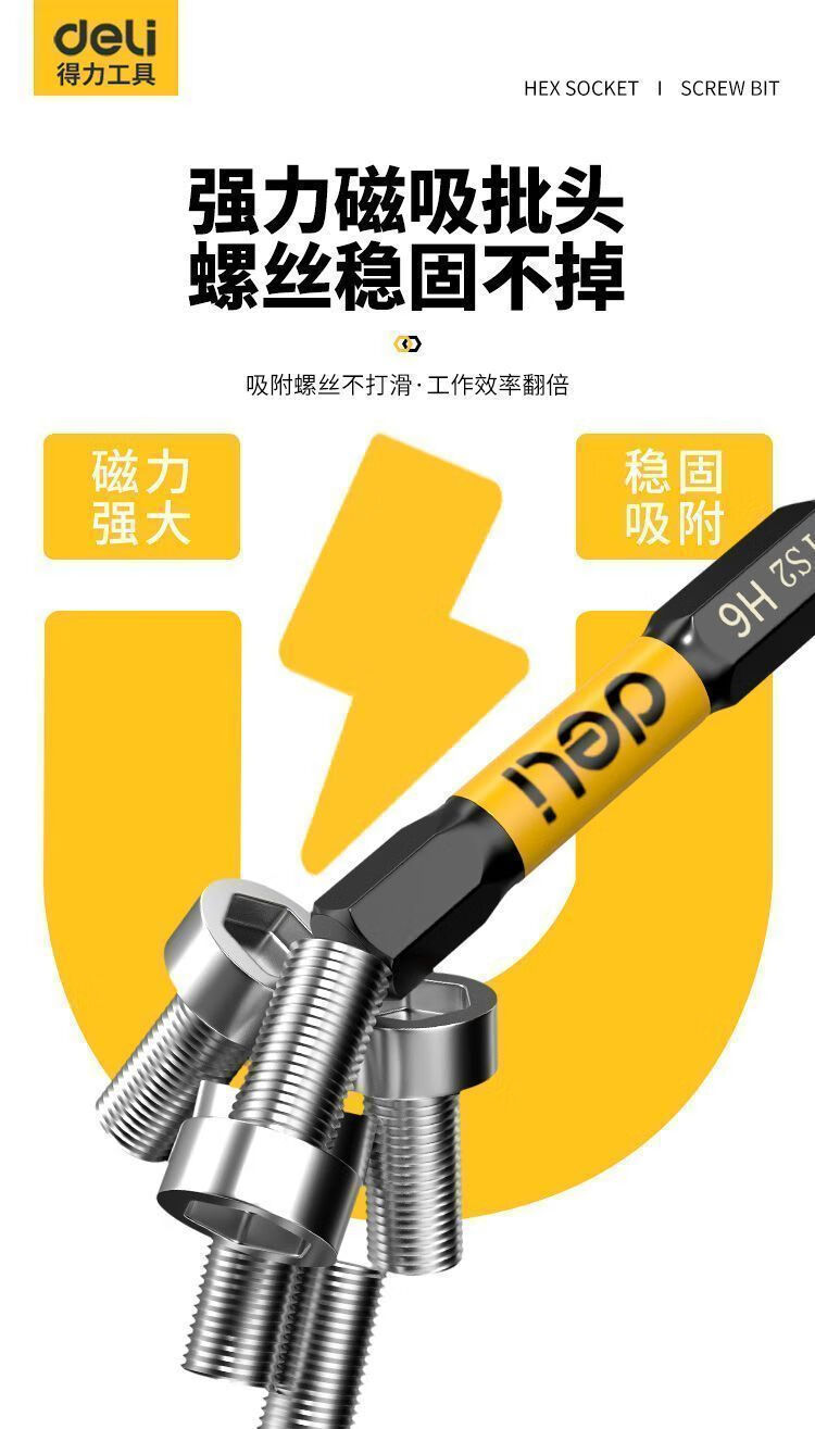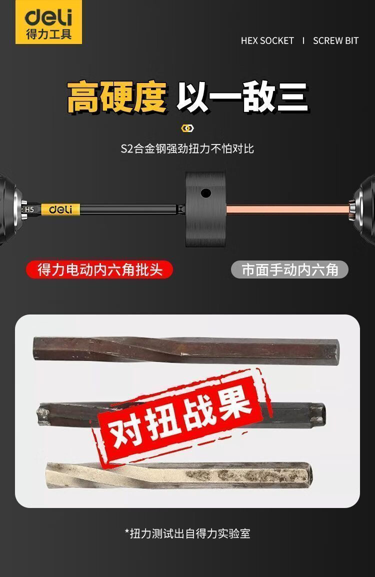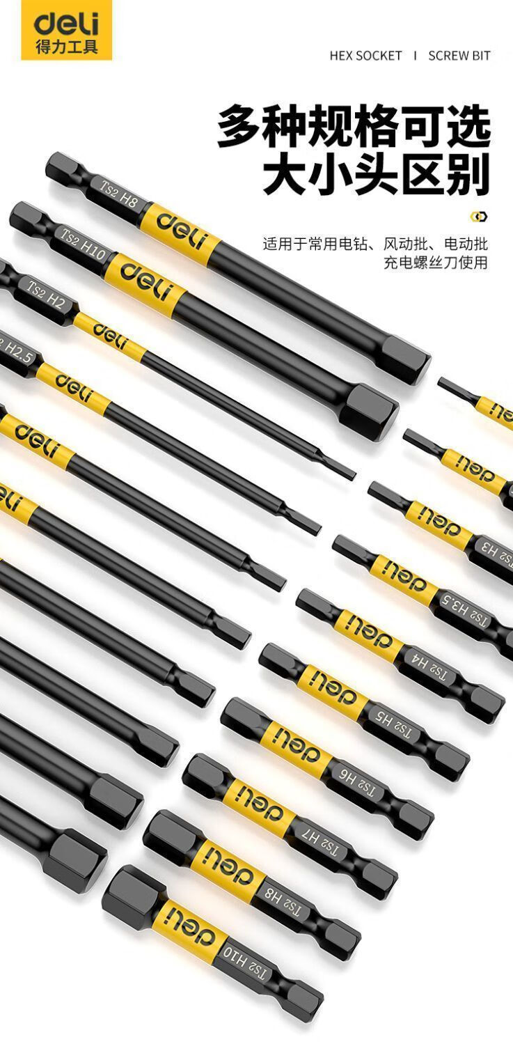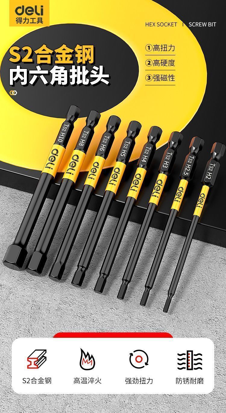 Deli inner hexagonal bit with pneumatic electric screwdriver set, special hexagonal super-hard wear-resistant industrial wind bit lengthened S2 100mm 8-piece set