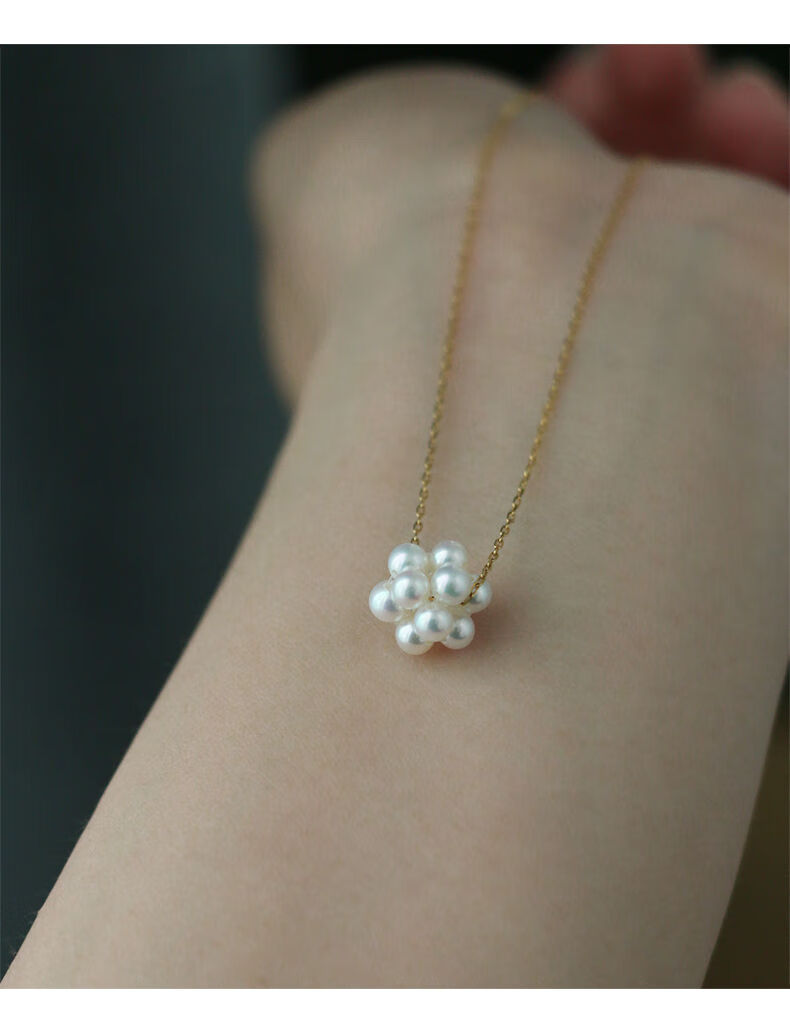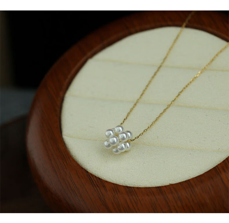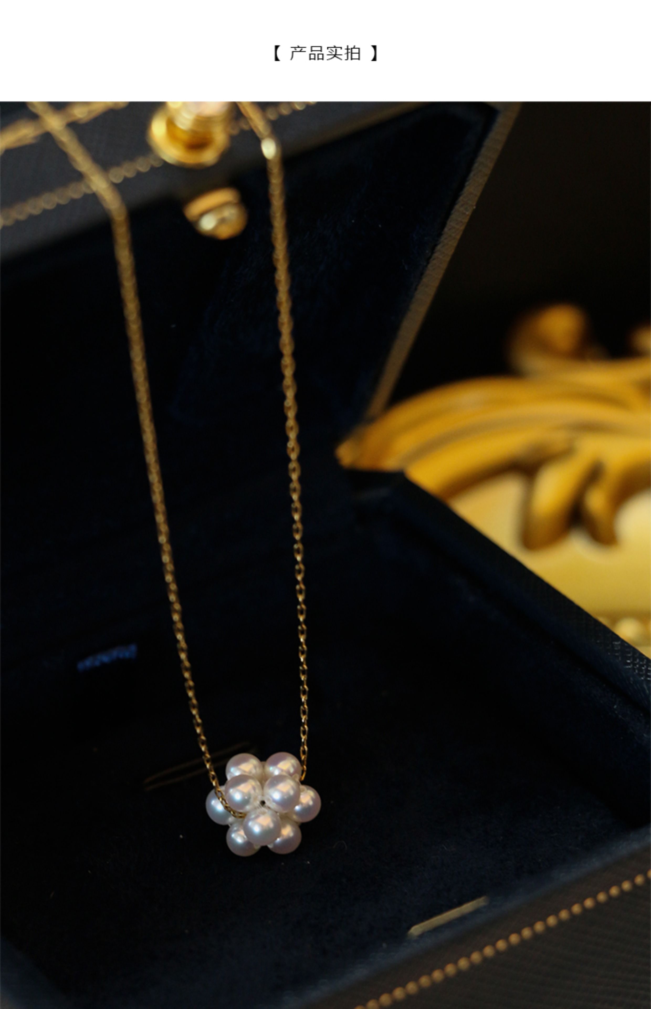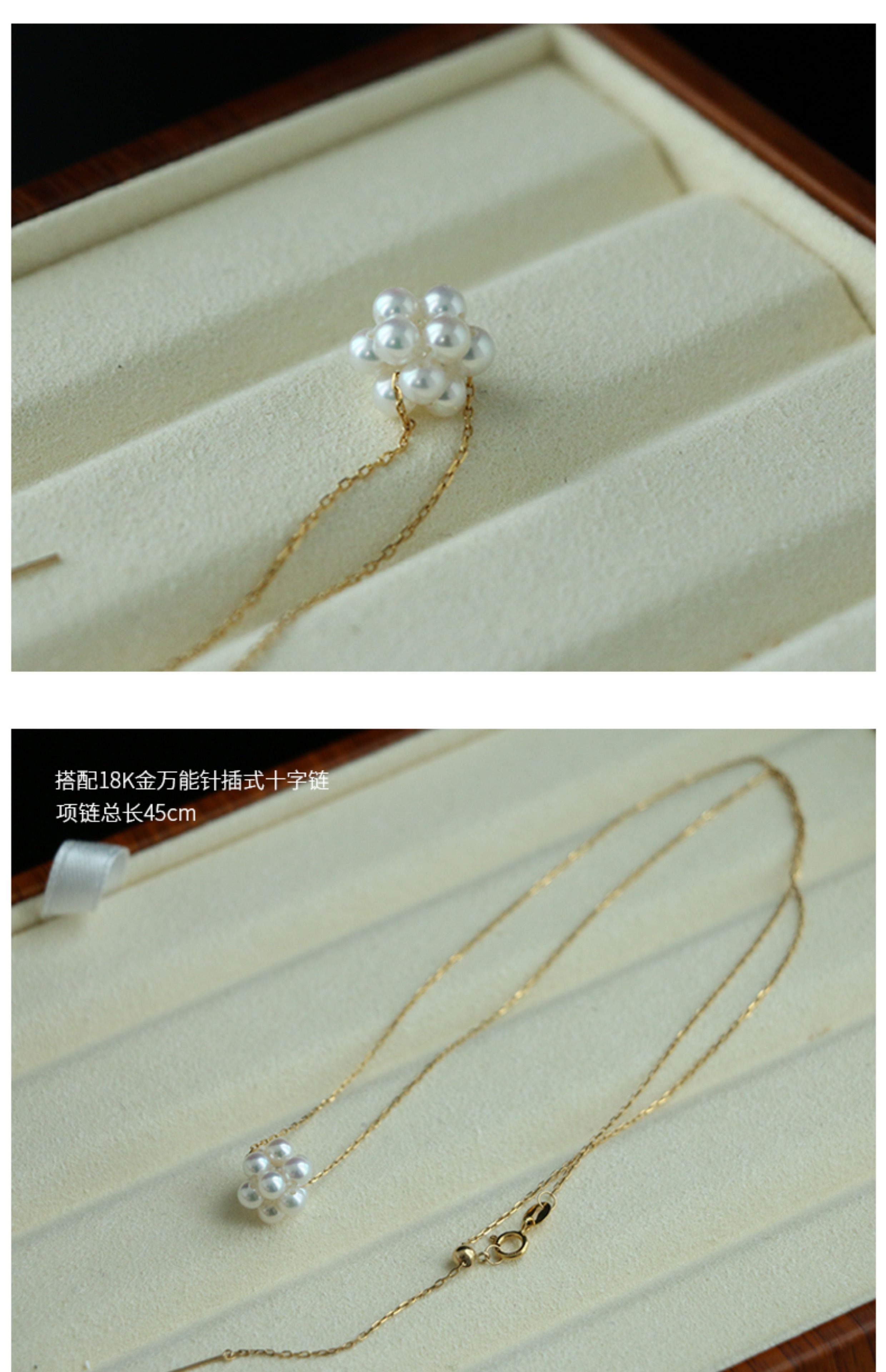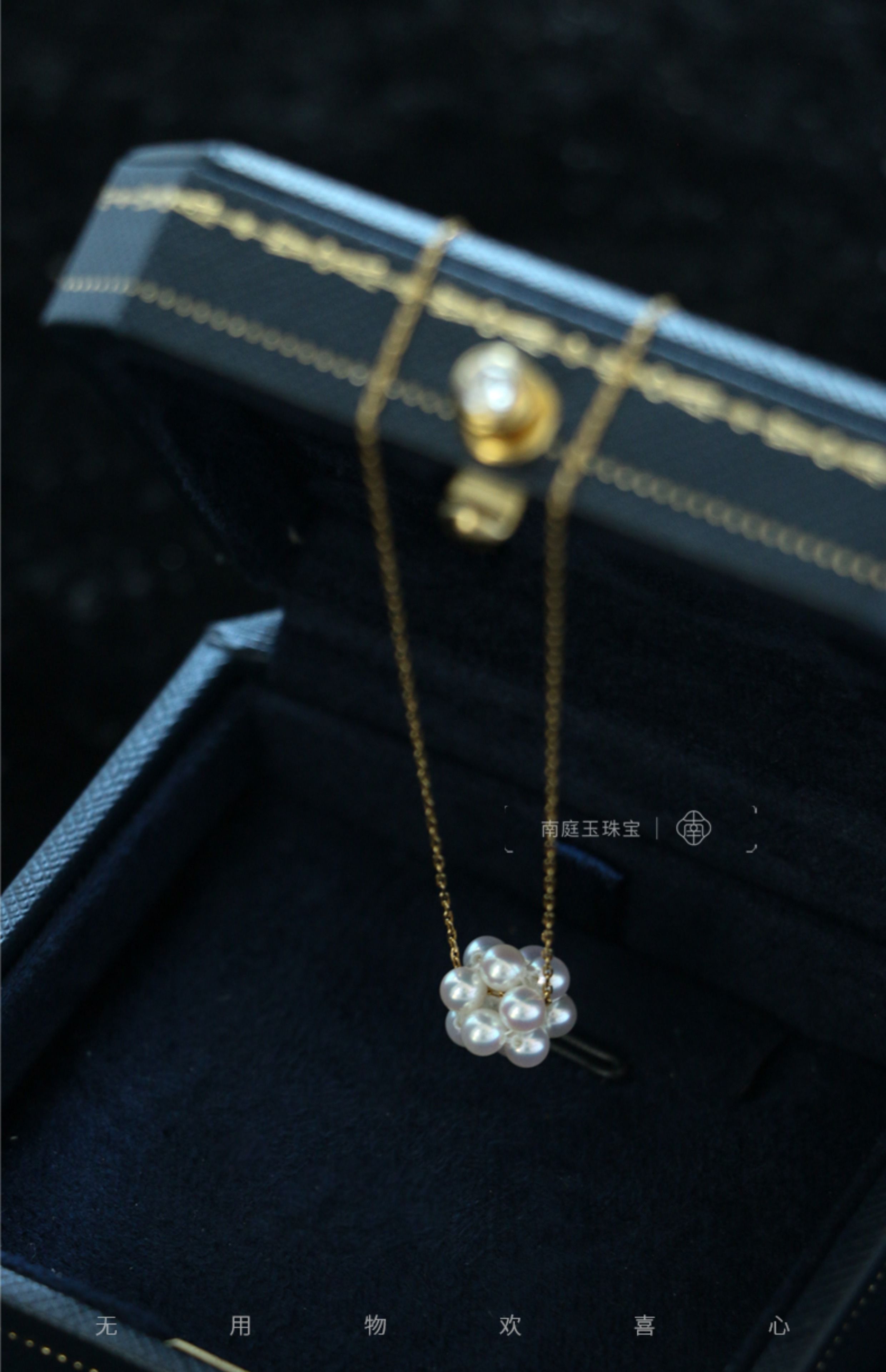 Fujiu Nanting Jade 18K Gold Aurora Freshwater Flower Ball Pendant Gentle and Exquisite Niche Clavicle Necklace Single Pearl Flower Ball (chain not included)