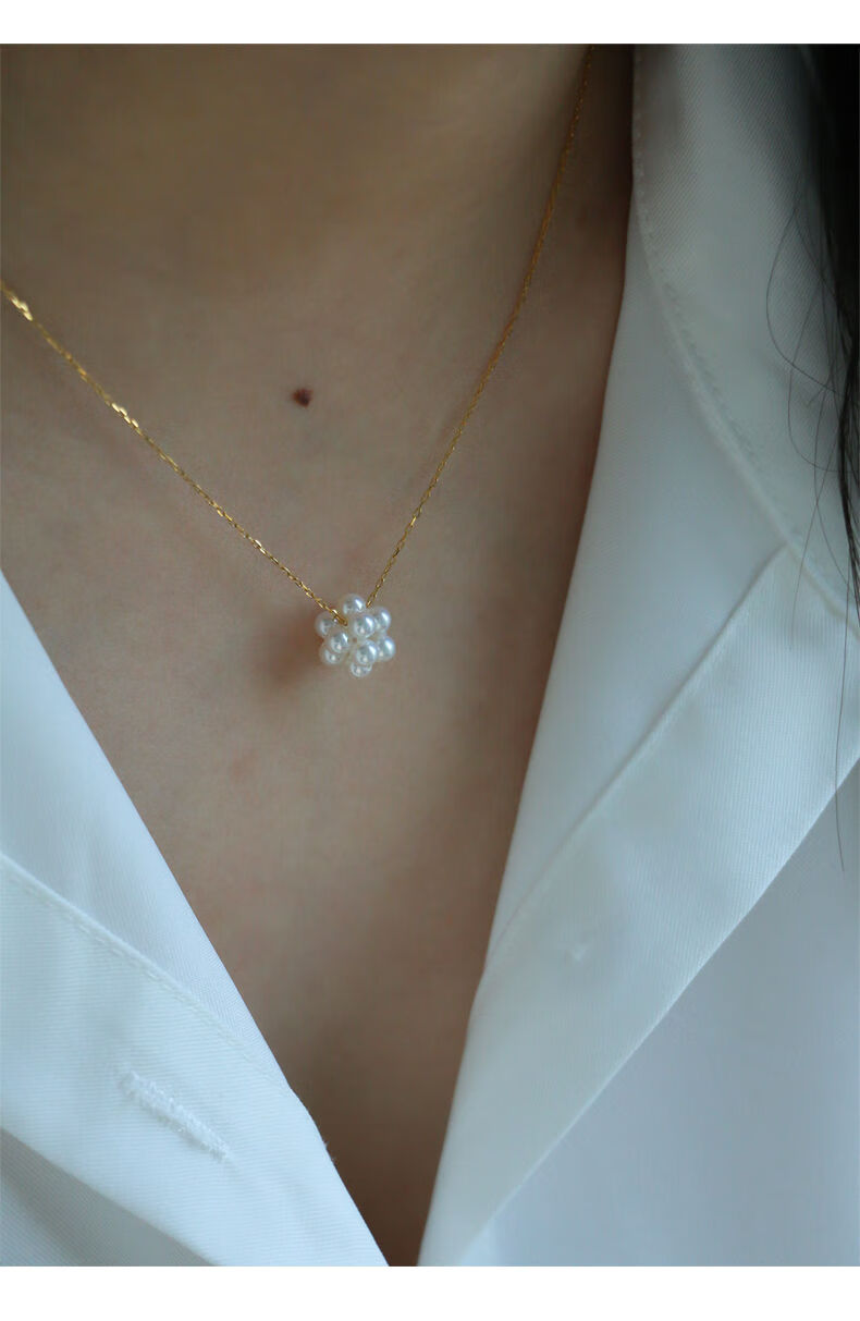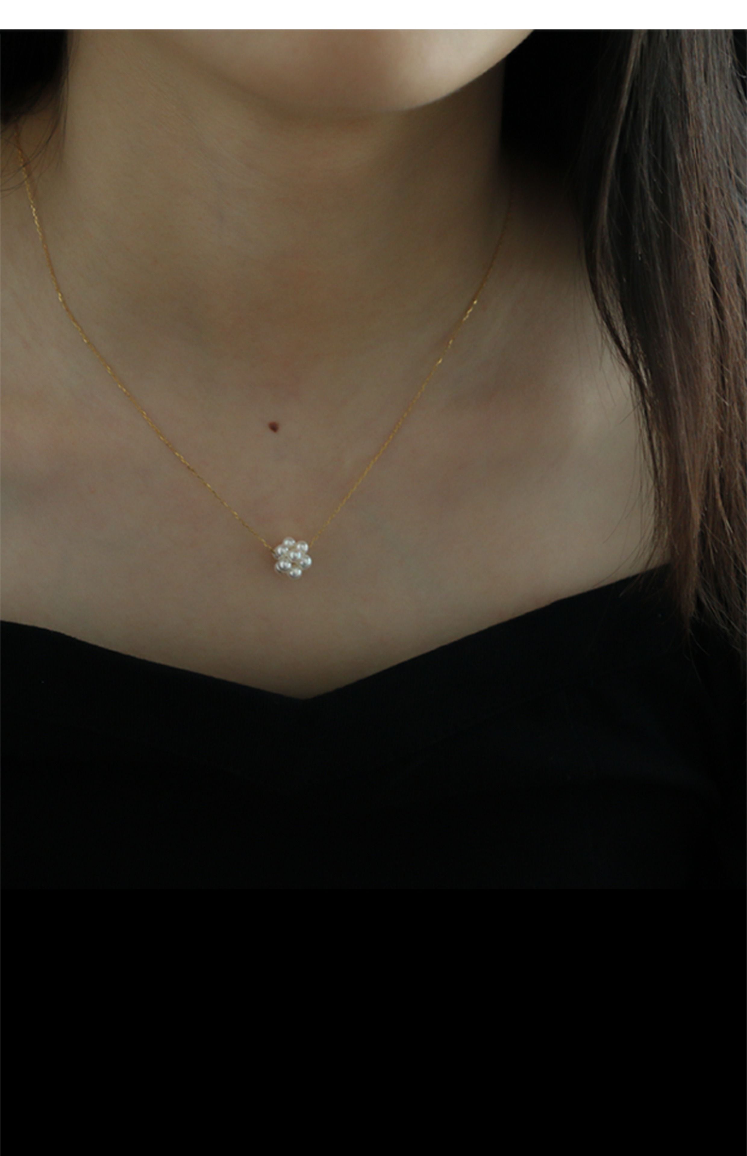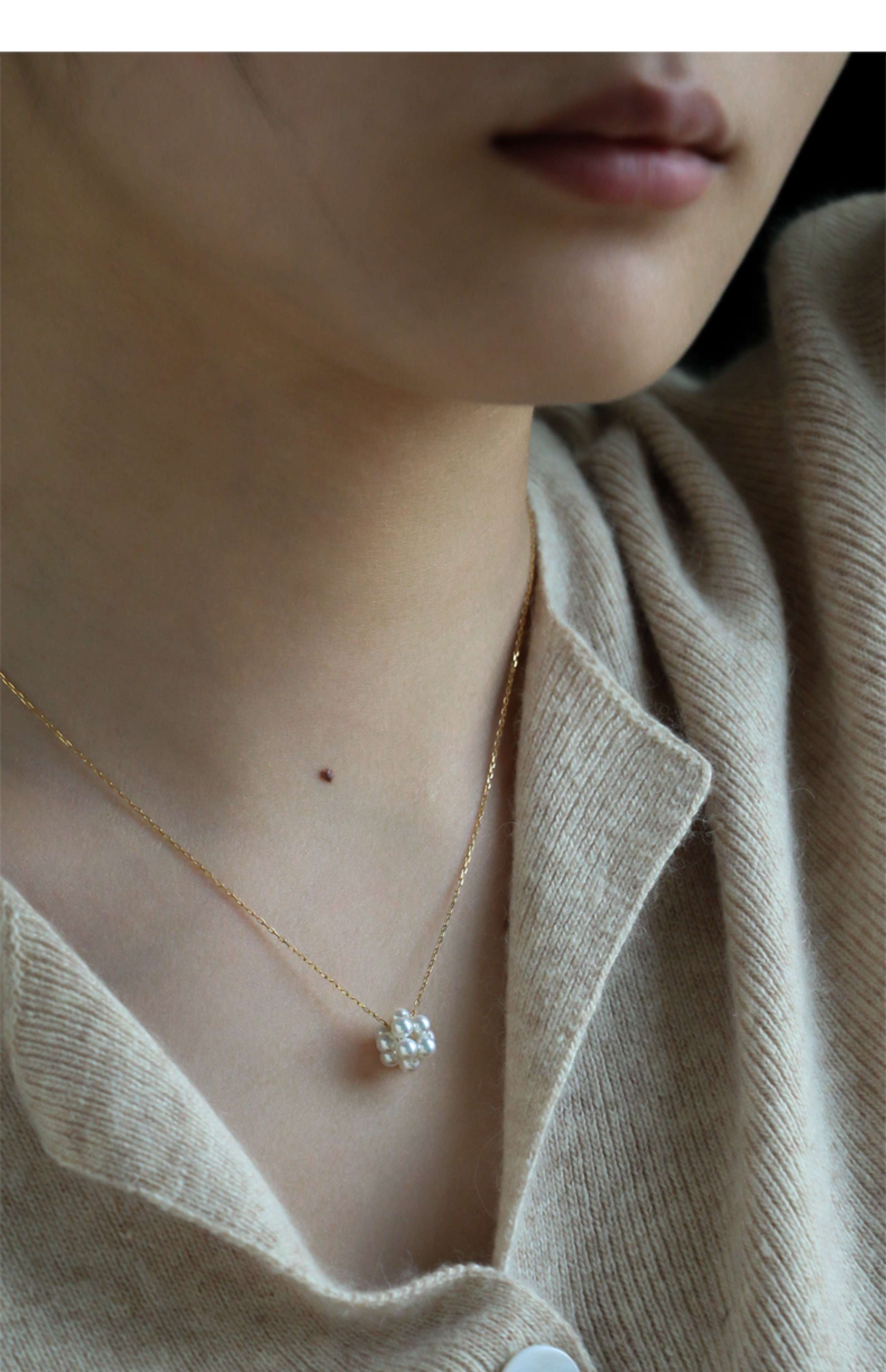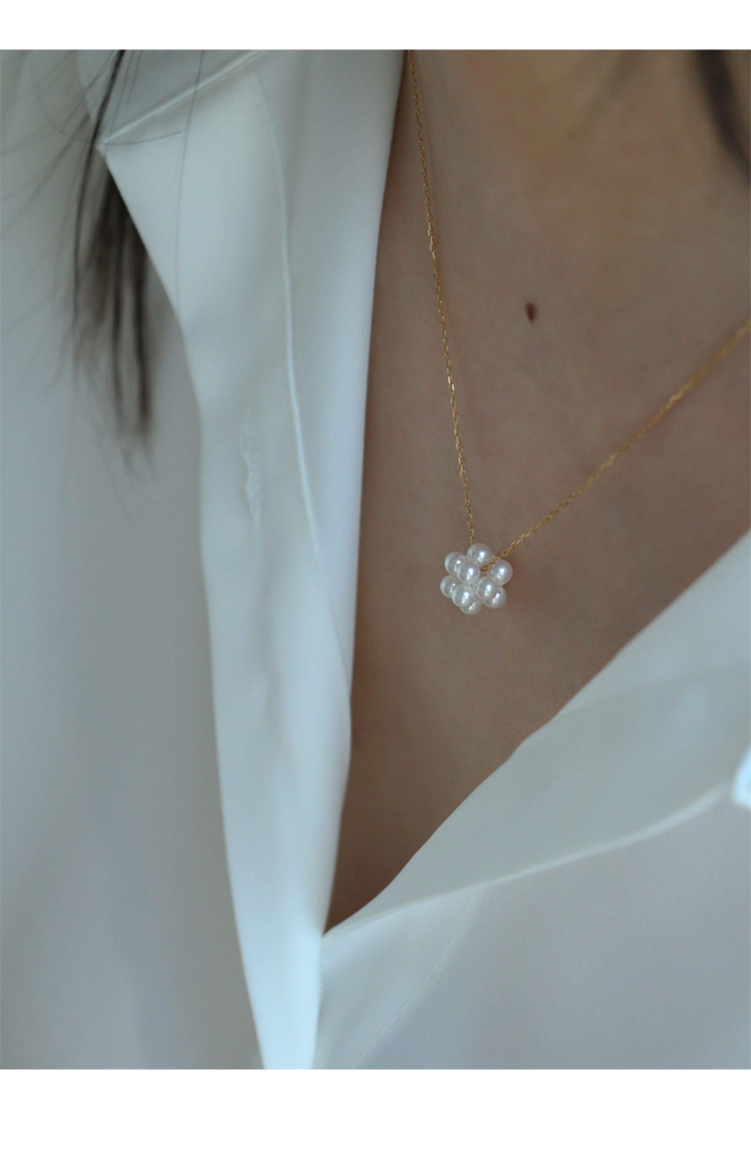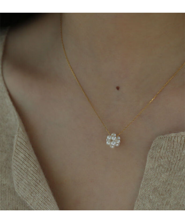 Fujiu Nanting Jade 18K Gold Aurora Freshwater Flower Ball Pendant Gentle and Exquisite Niche Clavicle Necklace Single Pearl Flower Ball (chain not included)