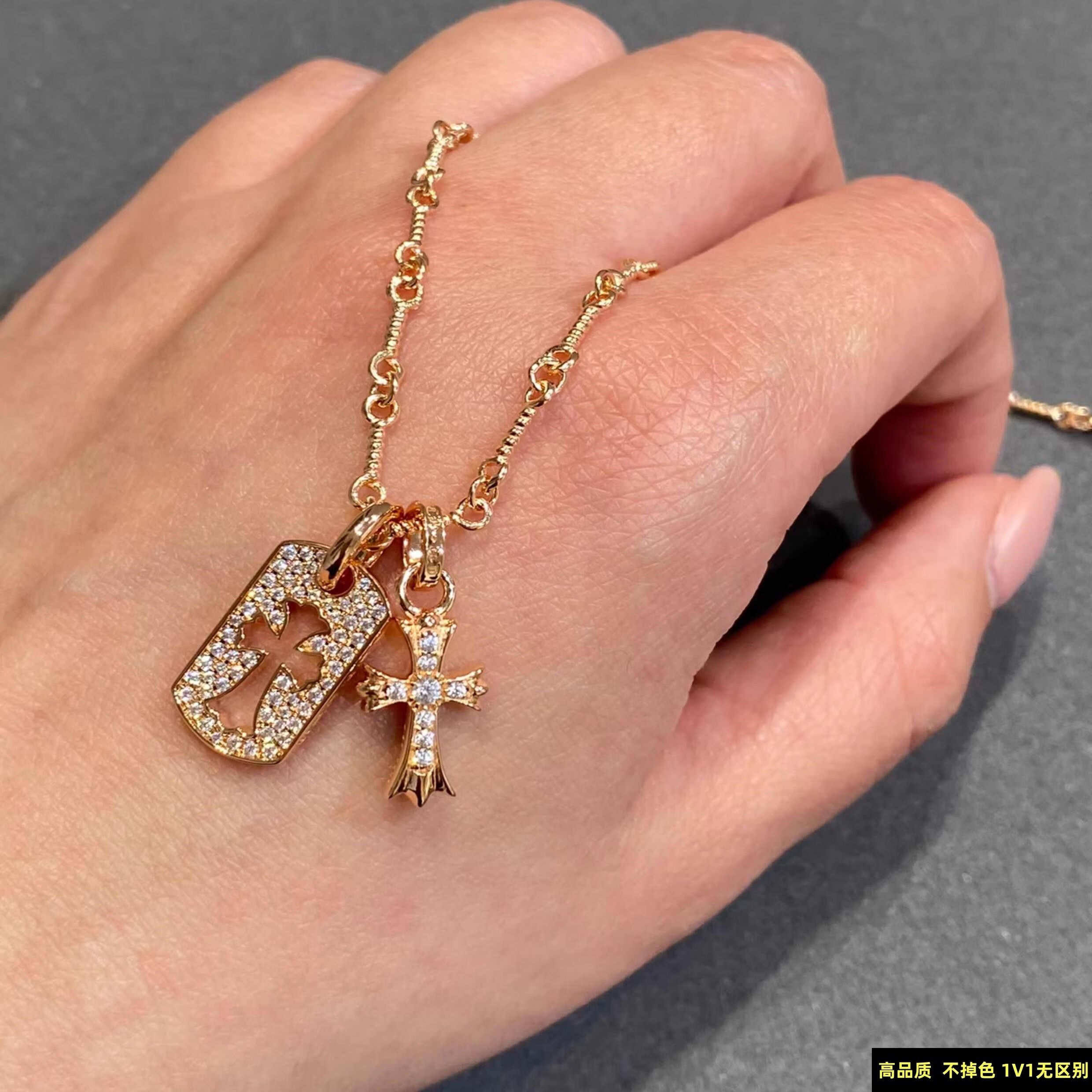 Tomikuro's hollow cross pendant full of diamonds necklace 925 sterling silver plated with 18K gold for men and women to wear light luxury high-end hollow cross full of diamond pendant (silver plated with 18k gold)