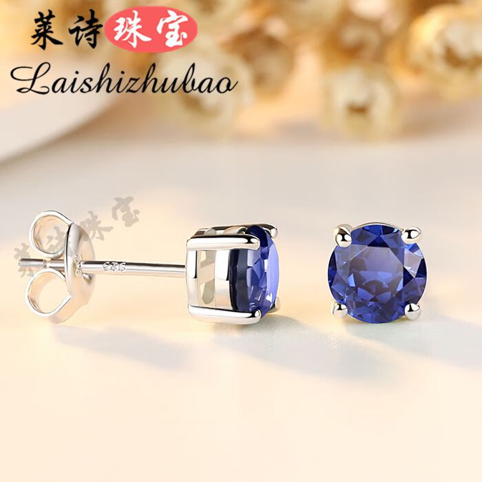 Pop sapphire earrings for women Japanese and Korean inlaid colored gemstone earrings sterling silver plated 18k gold fashion earrings tanzanite