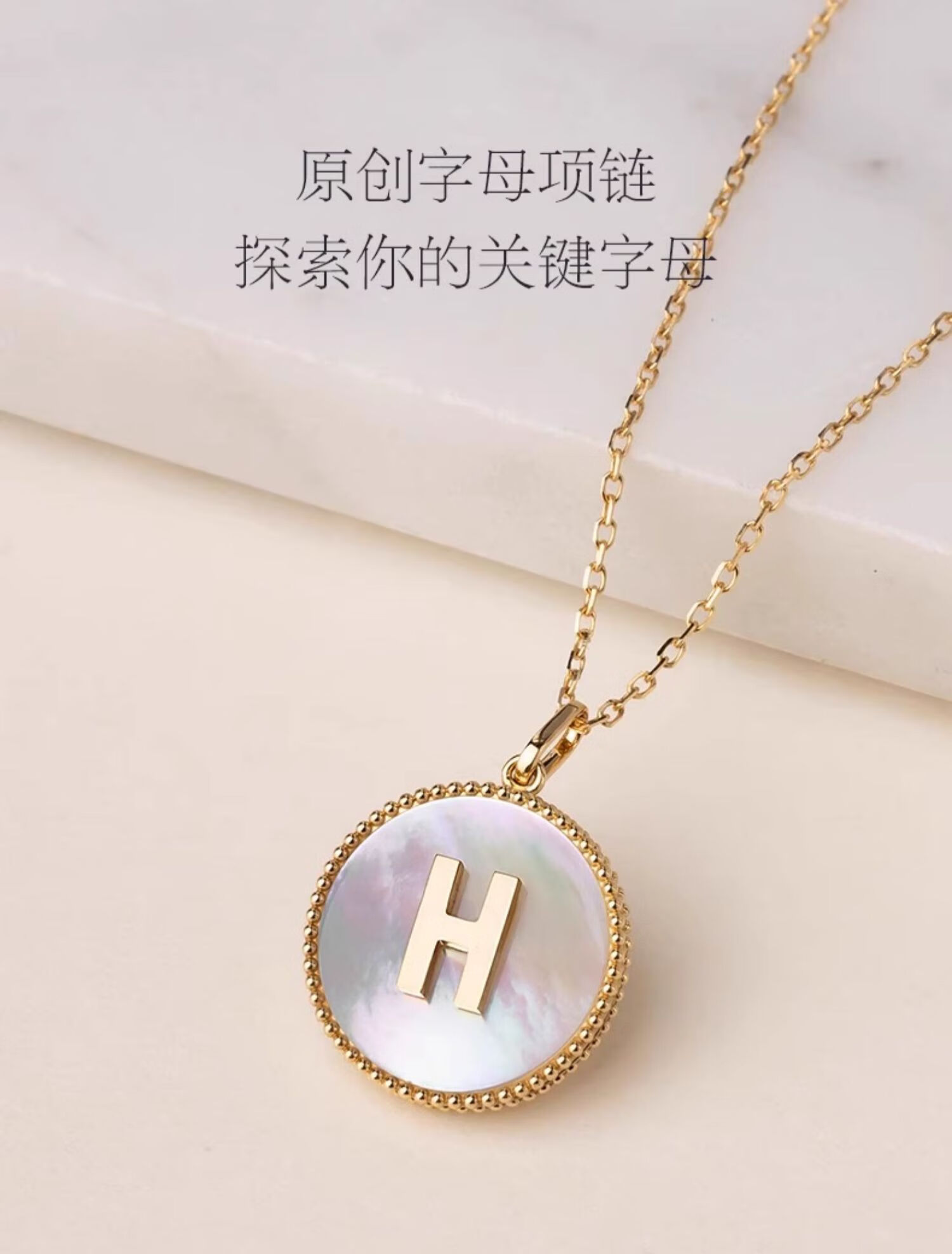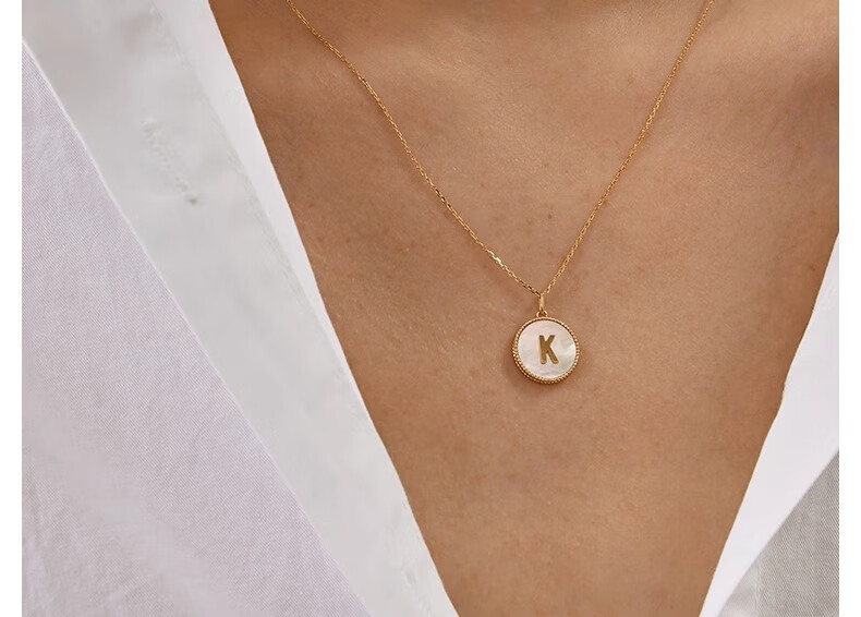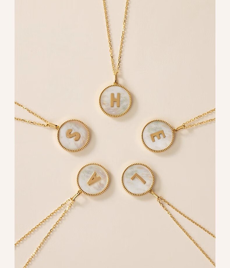 Fujiuma Junyan's same style s925 sterling silver plated 18K gold letter necklace women's mother-of-pearl neck necklace diamond pendant clavicle chain A