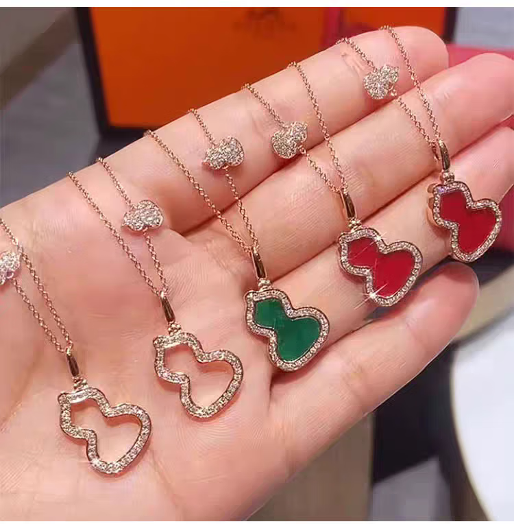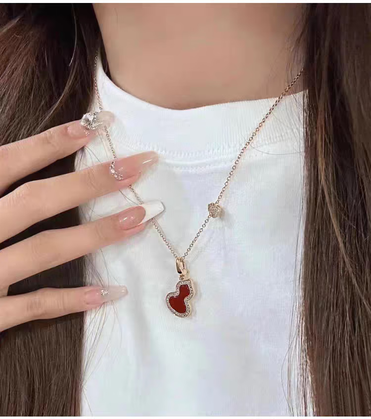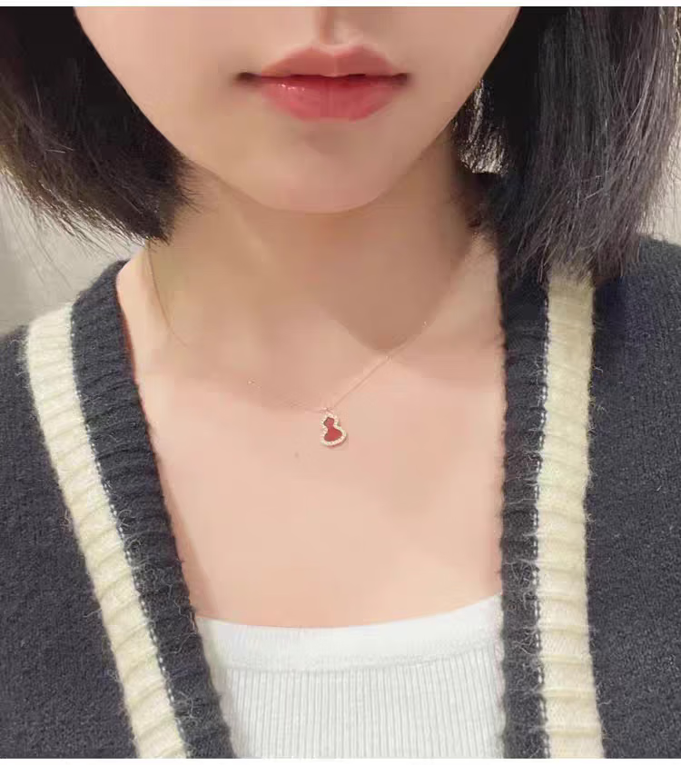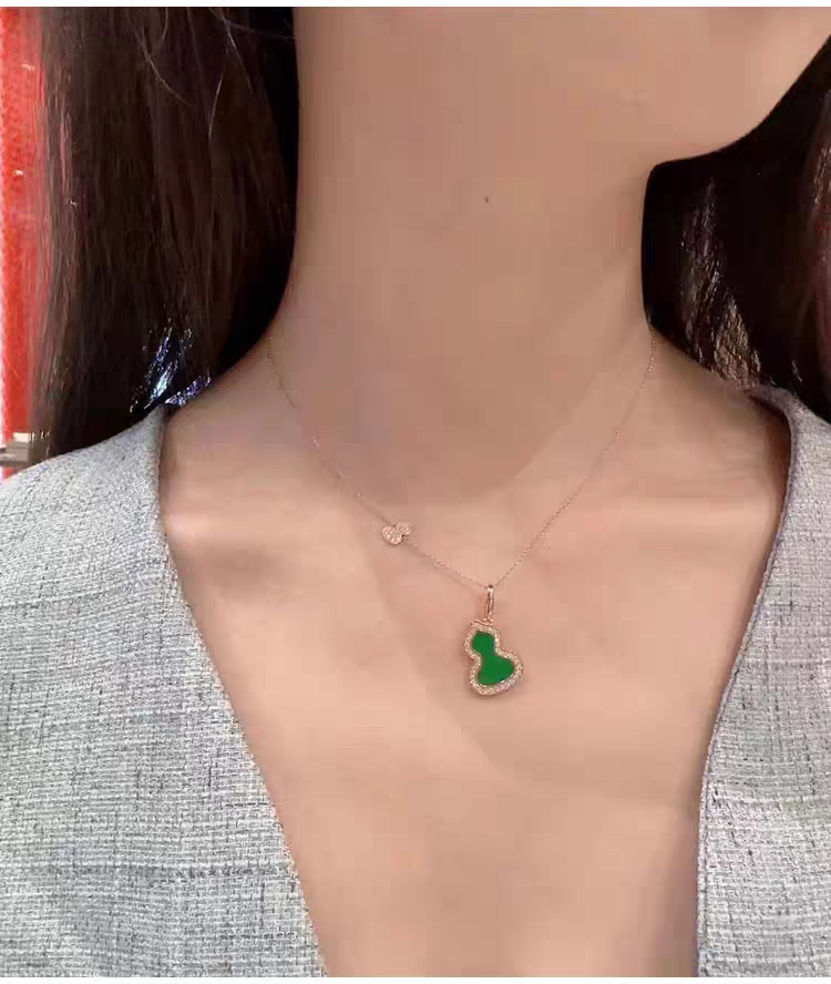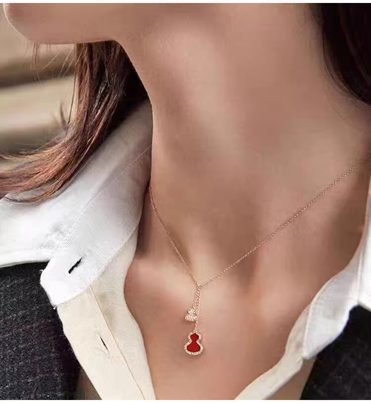 Rich star same style moissanite double gourd necklace for women 18k gold red agate white fritillary green agate pendant clavicle chain small rose gold green agate