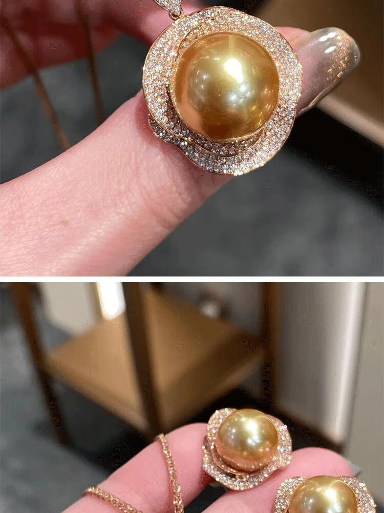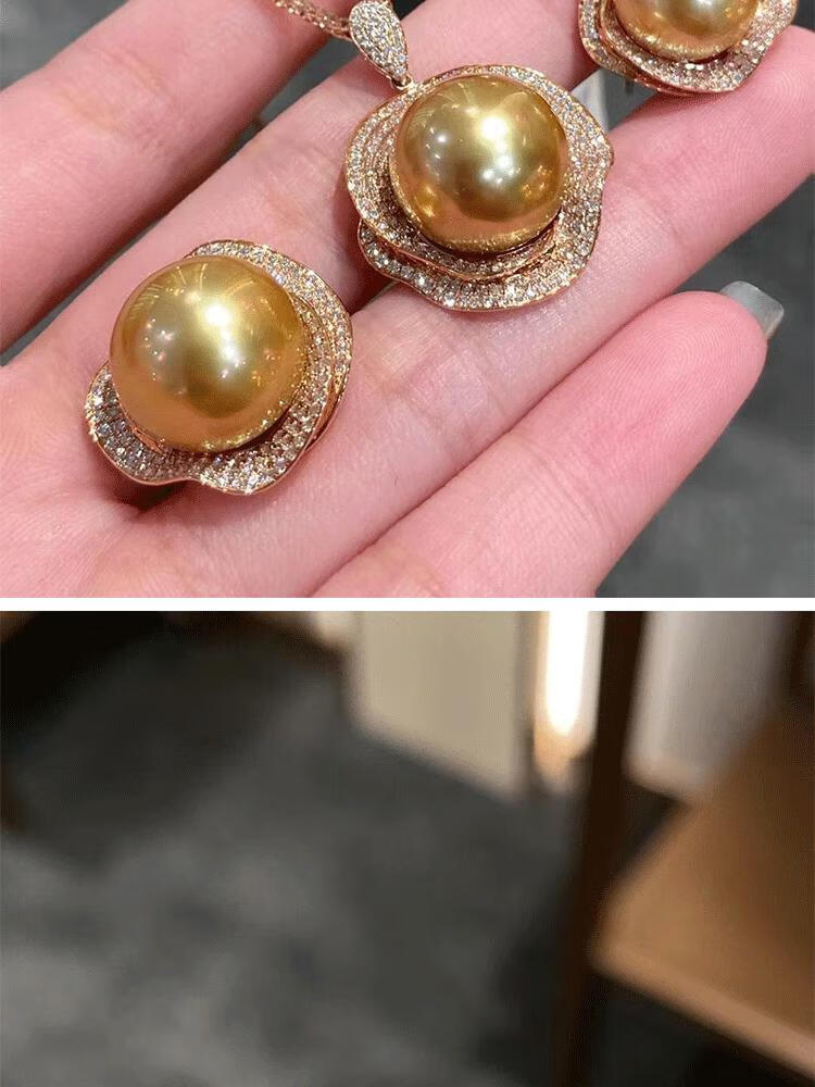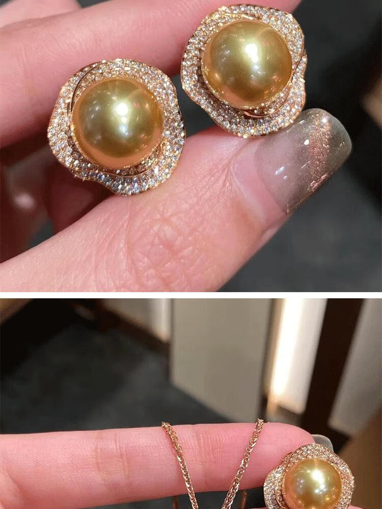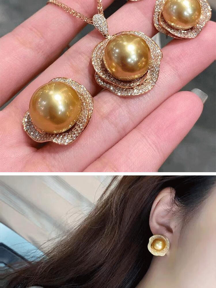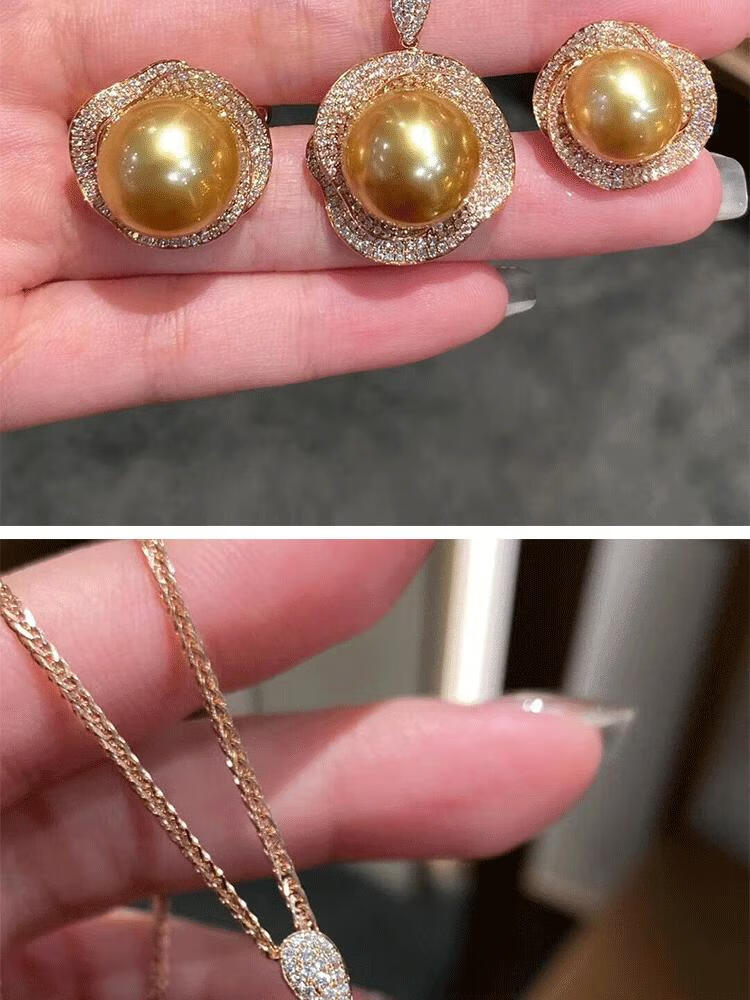 Fujiu Nanyang gold luxury full diamond earrings s925 18k gold plated luxury pendant thick gold necklace ring set for women gold pearl earrings